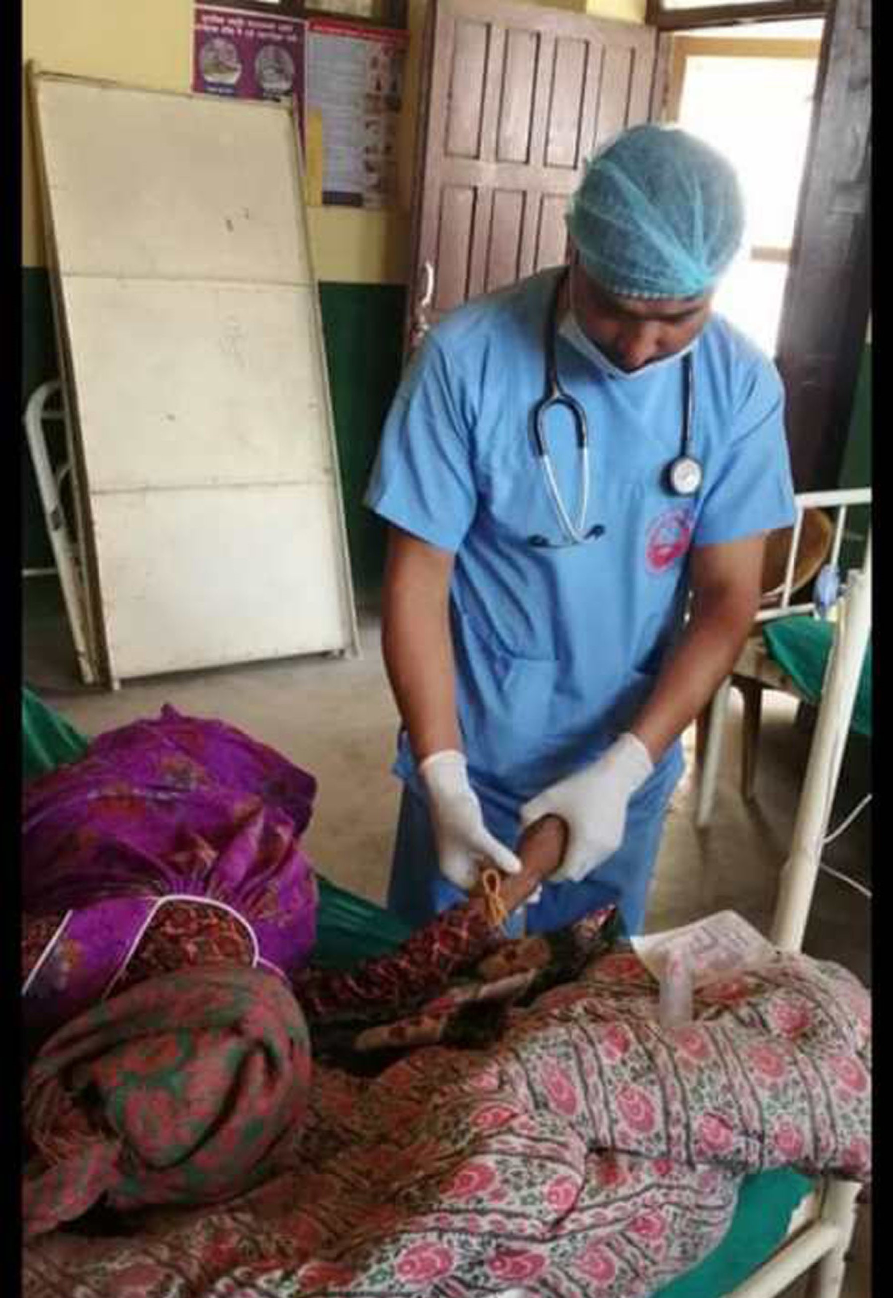 कर्णाली । ‘ढुङ्गा खोज्दा देवता मिल्यो’ भने झैँ खत्याड गाउँपालिका–१० मुगु निवासी २९ वर्षीया निर्मला चँदाराको जीवनमा एउटा त्यही संयोग जु¥यो । प्रसव सुत्केरी व्यथाले च्यापेपछि तीन दिनअघि हवाईजहाजबाट नेपालगञ्ज जान उनी बाजुराको कोल्टी विमानस्थल पुगिन् । खत्याडबाट कर्णाली स्वास्थ्य विज्ञान प्रतिष्ठान जुम्ला पुग्न सडक यातायातको सुविधा नभएकाले चँदारा कोल्टी पुग्नुको विकल्प थिएन । नेपालगञ्ज उड्नका लागि विमानस्थलमा पुगेकी उनलाई हवाईजहाज चढ्न त्यहाँका कर्मचारीले चिकित्सकको सिफारिस अनिवार्य चाहिने कुरा गरे । च्यापिरहेको पीडा सहन गर्दै उनी कोल्टी विमानस्थल नजिक रहेको बूढीनन्दा नगरपालिकाको प्राथमिक उपचार केन्द्र पुगिन् । त्यहाँको चिकित्सकसँग नेपालगञ्ज जानका लागि सिफारिस दिन अनुरोध गरिन् । संयोगवशः कर्णाली स्वास्थ्य विज्ञान प्रतिष्ठानबाट एनेस्थेसिया विशेषज्ञ डा.अर्जुनप्रसाद तिवारीको नेतृत्वमा बालरोग विशेषज्ञ डा नम्रता सिन्दान र स्त्रीरोग विशेष अनुभव प्राप्त डा दिलसाही रोकाको टोली केन्द्रमै पुगेको थियो । सिफारिस लिन आएकी चँदारालाई देख्नेबित्तिकै चिकित्सक टोलीले परिचयसहित उनको समस्याबारे जानकारी लियो । चिकित्सक टोलीले सिफारिस लिन आएकी चँदाराको प्रारम्भिक अवस्था बुझ्नाका साथै केही बेरसम्मको संवादपछि उनलाई त्यही प्राथमिक स्वास्थ्य केन्द्रमा सुत्केरी गराउन सकिने कुरा राख्यो । सिफारिस लिएर जतिसक्दो छिटो नेपालगञ्जको फ्लाइट भेटाउने ध्याउन्नमा रहेकी चँदारालाई भने केही शङ्का र अलि अप्ठ्यारो लागिरहेको थियो । उनलाई विश्वस्त बनाउन चिकित्सक टोली सफल भयो । ‘केन्द्रमा उनलाई त्यतिबेला नै जाँचपड्ताल ग¥यौँ । बच्चा (ट्रान्सभर्सलाई) उल्टो अवस्थामा रहेछ’, डा.तिवारीले भनिन्, ‘आमा र बच्चा दुबैको ज्यान खतरामा भएकाले चँदारा र उनका आफन्तलाई राजी बनाएर तत्काल हामी शल्यक्रिया गर्ने निधोमा पुग्यौँ ।