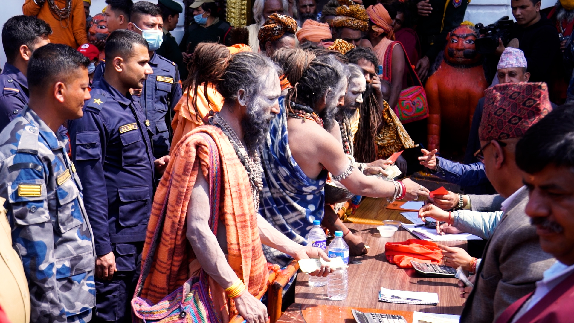 काठमाडौं । महाशिवरात्रिका अवसरमा पशुपतिनाथ मन्दिर आएका साधुसन्तलाई बिदाइ गरिएको छ । आइतबार पशुपति क्षेत्र विकास कोषले दक्षिणासहित विभिन्न ठाउँबाट पशुपतिनाथमा आएका साधुसन्तहरुको बिदाई गरेको हो । कोष र गुठी संस्थानले शिवरात्रीमा आएका साधुसन्तहरुलाई वर्षेनी दक्षिणासहित बिदाई गर्दै आइरहेको छ ।