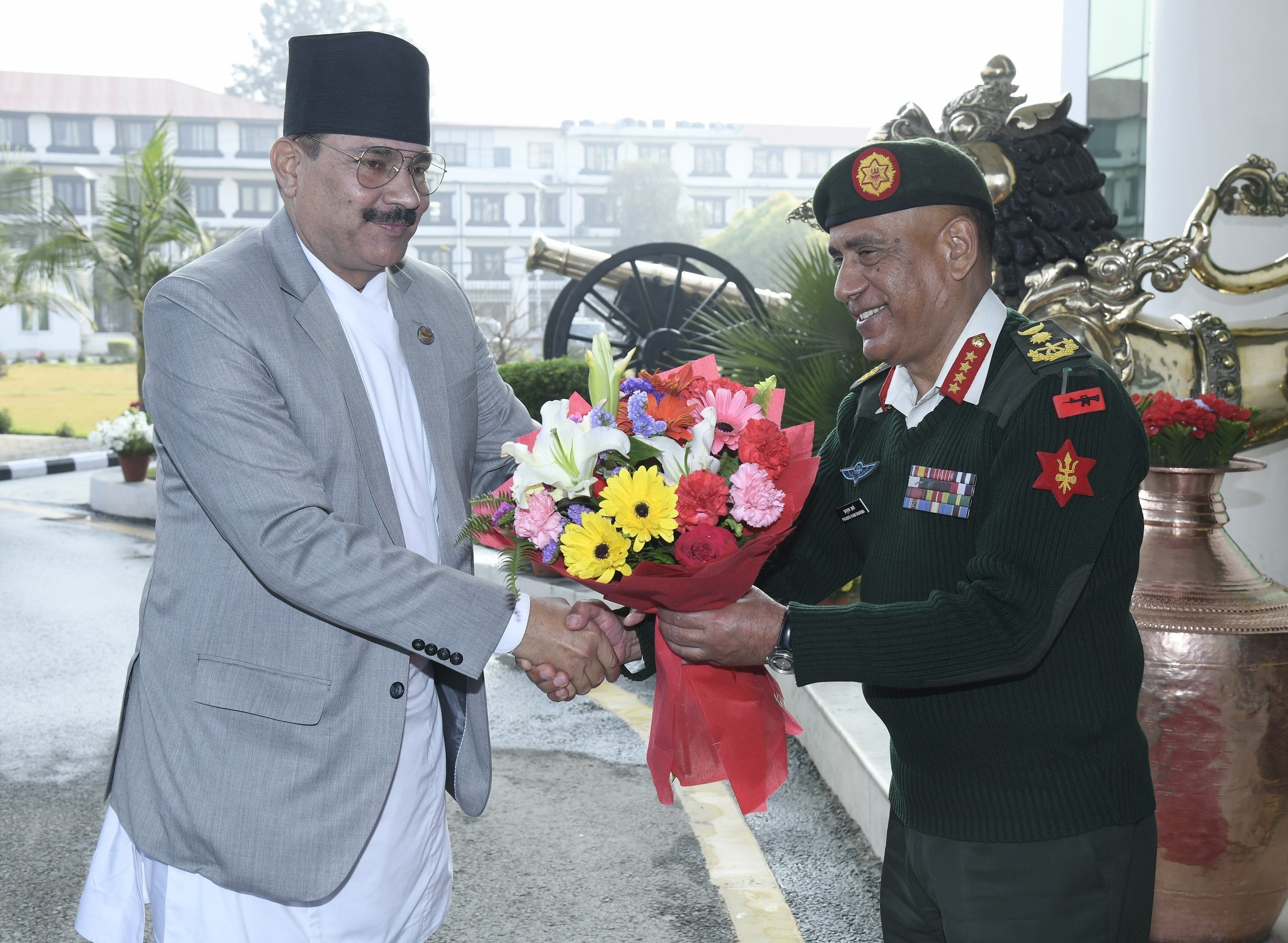 काठमाडौं । रक्षामन्त्री हरिप्रसाद उप्रेतीले राष्ट्रिय एकीकरण अभियान प्रारम्भदेखि नेपालको एकता, अखण्डता, संस्कृति, परम्परा जोगाइराख्न नेपाली सेनाले निर्वाह गर्दै आइरहेको भूमिका प्रसंशनीय रहेको बताएका छन् । सोमबार सैनिक मुख्यालय जङ्गी अड्डाको निरीक्षण गर्दै मन्त्री उप्रेतीले संवैधानिक दायित्व र समय क्रममा सरकारले सुम्पँदै आएको जिम्मेवारी अब्बल ढङ्गबाट पूरागरी सेना जनताको भरोसाको केन्द्रका रूपमा रहेको उल्लेख गरे । मन्त्री उप्रेतीले सेनाले राज्यका सबै विकट स्थानसम्म पुगेर सडक पूर्वाधार तयार गरी योगदान पु¥याउँदै आएको बताए । मन्त्री उप्रेतीसमक्ष सेनाको सङ्गठनात्मक स्वरूप, तैनाथी, स्वदेश र अन्तर्राष्ट्रिय क्षेत्रमा सञ्चालन गरिरहेका विविध गतिविधिबारे जानकारी गराइएको सैनिक जनसम्पर्क तथा सूचना निर्देशनालयले जनाएको छ । त्यस अवसरमा प्रधानसेनापति प्रभुराम शर्माले बदलिँदो अन्तर्राष्ट्रिय, क्षेत्रीय र राष्ट्रिय परिवेशबाट सिर्जित चुनौती सम्बोधन, समाधान र न्यूनीकरण गर्न क्षमता अभिवृद्धि आवश्यक बताएका थिए ।