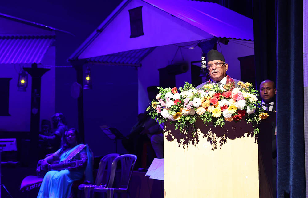 काठमाडौँ । प्रधानमन्त्री पुष्पकमल दाहाल प्रचण्डले संविधानले परिलक्षित गरेको समाजवादी राज्य निर्माणका निम्ति समाजवादी संस्कृतिको दिशाबोध अनिवार्य भएको बताएका छन् । शनिबार दिउँसो सांस्कृतिक संस्थान (राष्ट्रिय नाचघर) ले काठमाडौँमा आयोजना गरेको शुभारम्भ सांस्कृतिक साँझ २०८१ मा संक्षिप्त मन्तव्य राख्दै प्रधानमन्त्रीले उक्त कुरा बताएका हुन् । सम्बोधनमा प्रधानमन्त्रीले भने, “नेपाली जनताको त्याग र बलिदानको संविधानले समाजवादउन्मुख राज्य निर्माणको सङकल्प गरेको छ। तसर्थ, समाजवादको आधार तयार पार्नका निम्ति सांस्कृतिक रूपान्तरण र समाजवादी संस्कृतिको दिशाबोध आधारभूत शर्त हो। त्यसका निम्ति समाजवादी संस्कृति निर्माणका पक्षमा सम्पूर्ण वामपन्थी, देशभक्त एवं प्रगतिशील समुदायले योगदान गर्न सक्नुपर्दछ।” सो अवसरमा प्रधानमन्त्रीले संस्थानद्वारा आयोजित सांस्कृतिक साँझले छुट्टै उर्जा र प्रेरणा दिएको बताए । प्रधानमन्त्री प्रचण्डले भने, “यस कार्यक्रममा प्रस्तुत भएका प्रस्तुतिहरूले मलाई छुट्टै उर्जा र प्रेरणा प्रदान भएको छ, कार्यक्रममा विभिन्न भाषाभाषी, सांस्कृतिक विविधता, प्रदेशगत सांस्कृतिक प्रस्तुति, देशभक्तिपूर्ण भावनाले ओतप्रोत प्रस्तुतिले देशको राष्ट्रिय एकता र सांस्कृतिक विविधताको आत्मसातीकरण र प्रवर्धनमा महत्वपूर्ण प्रेरणा प्रदान गरेको मैले ठानेको छु।” सो अवसरमा प्रधानमन्त्रीले नयाँ वर्ष २०८१ सम्पूर्ण नेपालीका निम्ति उर्जा र आत्मविश्वासको वर्ष हुने विश्वास व्यक्त गर्दै सम्पूर्ण नेपालीहरूमा शुभकामना व्यक्त गरे ।