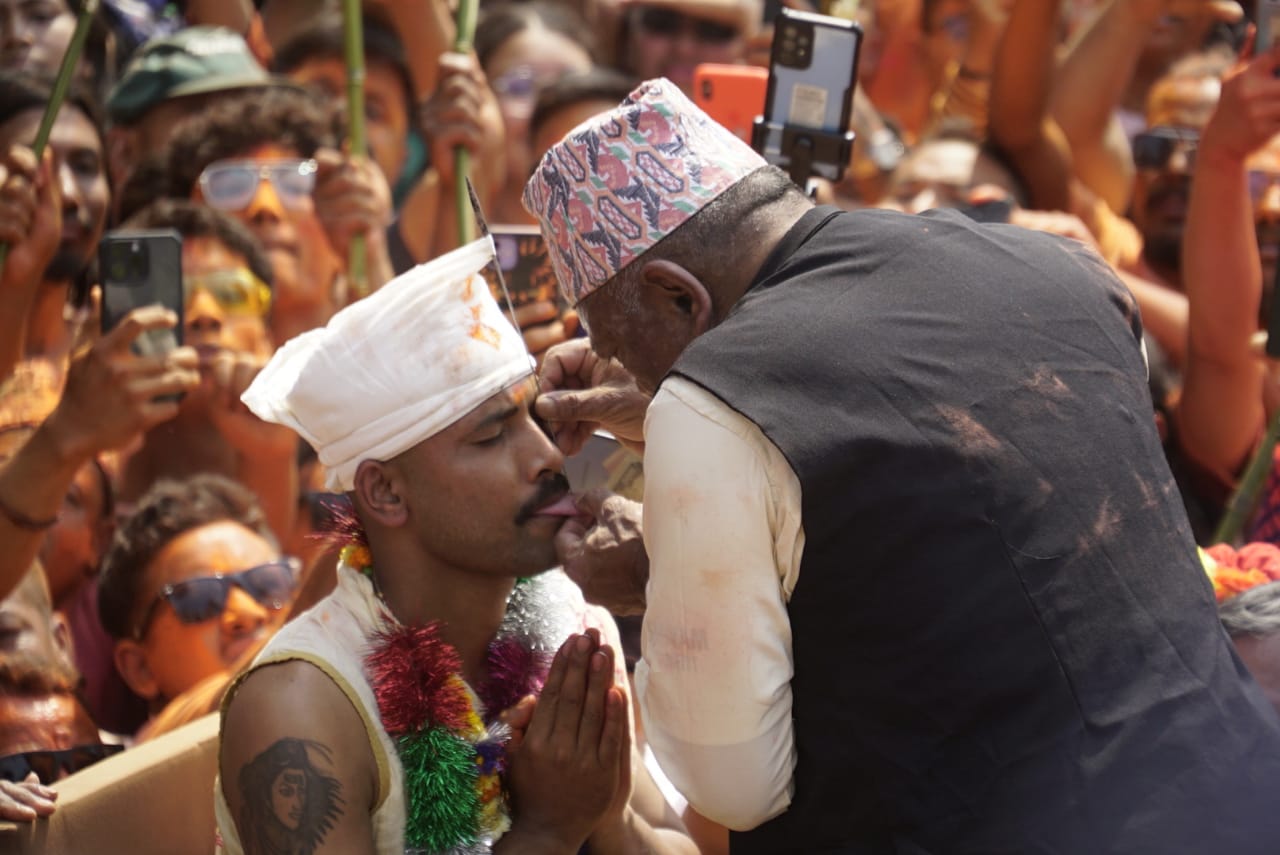 काठमाडौँ । सुजन बाग श्रेष्ठले दोस्रो पटक जिब्रो छेडेका छन् । बिस्काः जात्राको अवसरमा २८ बर्षिय सुजनले आइतबार जिब्रो छेडेका हुन् । उनले अघिल्लो वर्ष पनि जिब्रो छेडेका थिए ।