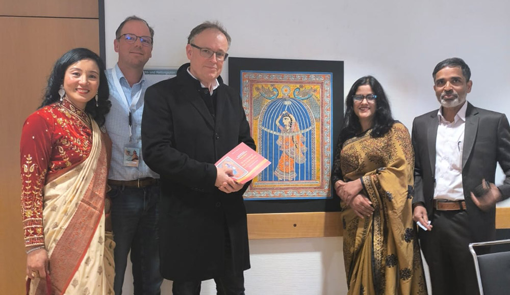 काठमाडौं । मिथिला चित्रकार रन्जु यादवको एकल चित्रकला प्रदर्शनी जर्मनीको फ्रयान्कफर्ट सहरमा शनिबार सम्पन्न भएको छ । आफ्नो बहुदेशीय एकल चित्रकला प्रदर्शनीका लागि राष्ट्रिय ललितकला पुरस्कार विजेता यादव अहिले ३३ दिवसीय युरोप कला यात्रामा रहेकी छन् । उनले युरोपका जम्मा चार वटा देशको भ्रमण गर्नेछिन भने तीन देशमा एकल चित्रकला प्रदर्शनी गर्ने कार्यक्रम छ । नेपाली समाज जर्मनीले फ्र्यान्कफर्टमा आयोजित नेपाल डेको अवसरमा एकल चित्रकला प्रदर्शनी आयोजना गर्न चित्रकार यादवलाई नेपालबाट आमन्त्रण गरेको थियो । नेपाली समाजले प्रत्येक वर्ष अप्रिल २० तारिखमा नेपाल डे मनाउँदै आएको छ । त्यस अवसरमा रन्जु यादवका २४ वटा चित्रहरु प्रदर्शनीमा राखिएको थियो । कार्यक्रममा चित्रकार यादवले नेपालमा मिथिला कलाको विकास, आफ्नो कला यात्रा र समाज रुपान्तरणमा आफ्ना चित्रहरुको प्रभावबारे कार्यपत्र प्रस्तुत गरेकी थिइन् । जर्मनीका लागि नेपाली राजदूत रामकाजी खड्काले चित्रकार यादवको चित्रकला प्रदर्शनीले नेपाली कला संस्कृतिको जर्मनीमा प्रवद्र्धन हुने र यसले फ्र्यान्कफर्टजस्तो अन्तर्राष्ट्रिय सहरमा नेपालको सांस्कृतिक कुटनीतिमा सघाउ पुग्ने विचार व्यक्त गरे । राजदूत खड्काले जर्मनीमा मिथिला चित्रकला प्रदर्शनी आयोजना गर्न भूमिका खेलेको नेपाली समाज र चित्रकार यादवमाथि आफूलाई गर्व लागेको बताए । नेपाली समाजका अध्यक्ष शिव अधिकारीका अनुसार जर्मनीका विभिन्न सहरबाट आएका करिब दुई सय पचास जना नेपाली र जर्मन नागरिकहरु कार्यक्रममा सहभागी थिए भने उनीहरुले चित्रकार यादवको एकल चित्रकला प्रदर्शनीलाई गम्भीरतापूर्वक अवलोकन गरेका थिए । अध्यक्ष अधिकारीले नेपाली समाजले फ्रयान्कफर्टमा नेपाल डे आयोजना गरेर नेपालबारे जर्मनीमा प्रचारप्रसार गर्नुका साथै दुई देशका नागरिकहरुलाई जोड्ने काम गरेको बताए । त्यस अवसरमा उनले राजदूत खड्का, चित्रकार यादव, फ्रयान्कफर्ट सहरको मेयर कार्यालयका प्रमुखलगायतका विशिष्ट व्यक्तिहरुलाई उनीहरुको गरिमामय उपस्थितिका लागि धन्यवाद दिए । नेपाल डेको अवसरमा नेपाल, युक्रेन र भियतनामका कलाकारहरुले गीत, संगीत र नृत्य प्रस्तुत गरेका थिए । एक जना बलिउड कलाकारले एउटा नेपाली गीतमाथि आफ्नो प्रस्तुति दिएका थिए । त्यस अवसरमा जर्मनीमा बस्ने नेपाली बालबालिका लागि नेपाल चिनाउने कार्यक्रम राखिएको थियो भने सम्पूर्ण अतिथि र सहभागीलाई परम्परागत नेपाली खानाका परिकारहरु पस्किएको थियो ।