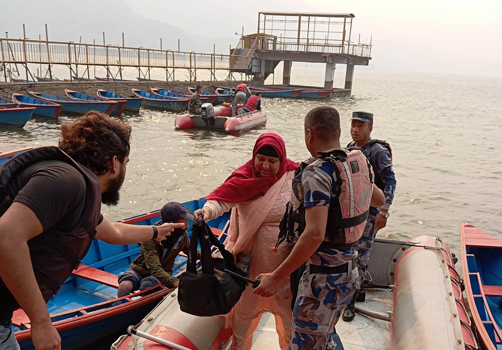 पोखरा । कास्की जिल्ला पोखरा महानगरपालिका–६ फेवातालमा मंगलबार दिउँसो डुंगा दुर्घटनामा परेका पाँच जनाको सकुशल उद्धार गरिएको छ । अचानक आएको हावाहुरीको कारण डबल प्याडल बोटमा बोटिङ् गरिरहेका ५ जना फेवाताल नजिकै रहेको माछा पालन केन्द्रको जालमा अड्किएका थिए । दुर्घटना लगत्तै नं. २४ कालिका गण कास्कीबाट फेवाताल रेस्क्यु वाच टावरमा तैनाथ विपद् व्यवस्थापन सहितको टोलीले उनीहरुको तत्कालै सकुशल उद्धार गरेको हो ।