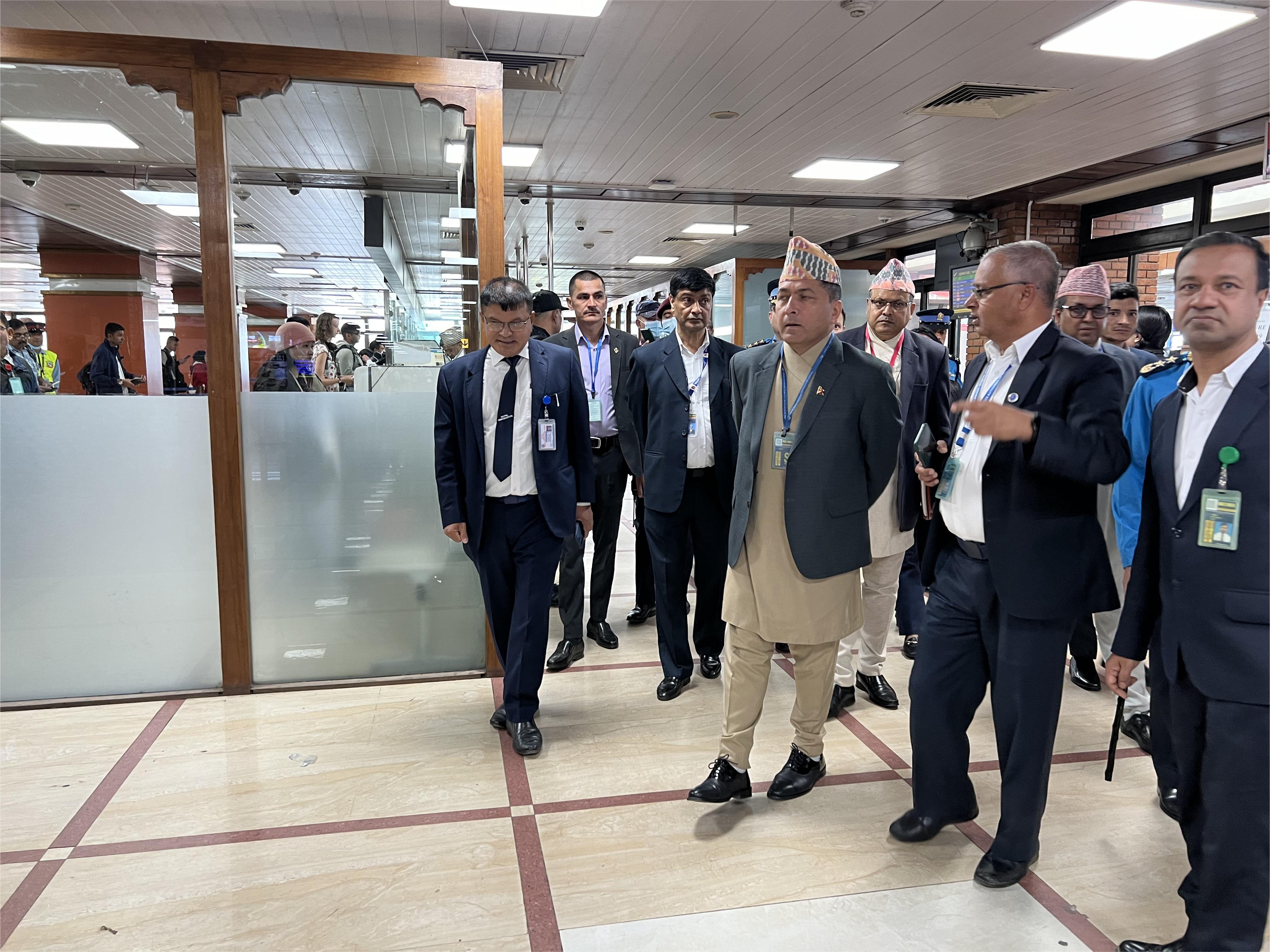 यात्रु आगमनदेखि कर्मचारी, सुरक्षाकर्मी तथा कार्यालय प्रमुखहरु बस्ने कार्यकक्षसम्मै अनुगमन गरेका गृहसचिव अर्यालले देखिएका स–साना समस्याहरु समाधान गर्न र सरसफाइमा ध्यान दिन सम्बन्धित कार्यालय प्रमुखहरुलाई निर्देशन दिए । नेपाल प्रहरी प्रमुख आइजीपी वसन्तबहादुर कुँवर र गृह मन्त्रालयका सहसचिव एवं सुरक्षा तथा समन्वय महाशाखा प्रमुख नारायणप्रसाद भट्टराईसहित अध्यागमन पुगेका गृहसचिव अर्यालले अध्यागमन विभागका महानिर्देशक कोषहरि निरौला, प्रमुख अध्यागमन अधिकृत नरबहादुर थापा, त्रिभुवन अन्तर्राष्ट्रिय विमानस्थल सुरक्षा प्रमुख एसएसपी कृष्णहरि शर्मा, त्रिभुवन अन्तर्राष्ट्रिय विमानस्थल नागरिक उड्डयन कार्यालयका हवाई सुरक्षा महाशाखा प्रमुख बच्चुराम श्रेष्ठ, विमानस्थल नागरिक उड्डयन कार्यालयका विजय ढुंगाना लगायतलाई आ–आफ्नो क्षेत्रबाट सेवा प्रवाहलाई चुस्त राख्न निर्देशन दिएका छन् । विमानस्थल सुरक्षा प्रमुख एसएसपी कृष्णहरि शर्माले न्यून स्रोतसाधन तथा जनशक्तिका बीच सेवाग्राहीको बढ्दो चाप व्यवस्थापन गरिहेको जानकारी गराए । हाल २८ वटा मेसिन सञ्चालनमा छन् । जसका लागि तीनवटा सिफ्टमा सञ्चालन गर्दा ८४ जना जनशक्ति आवश्यक पर्छ तर ६० जना प्रहरीले काम गरिरहेका छन् ।