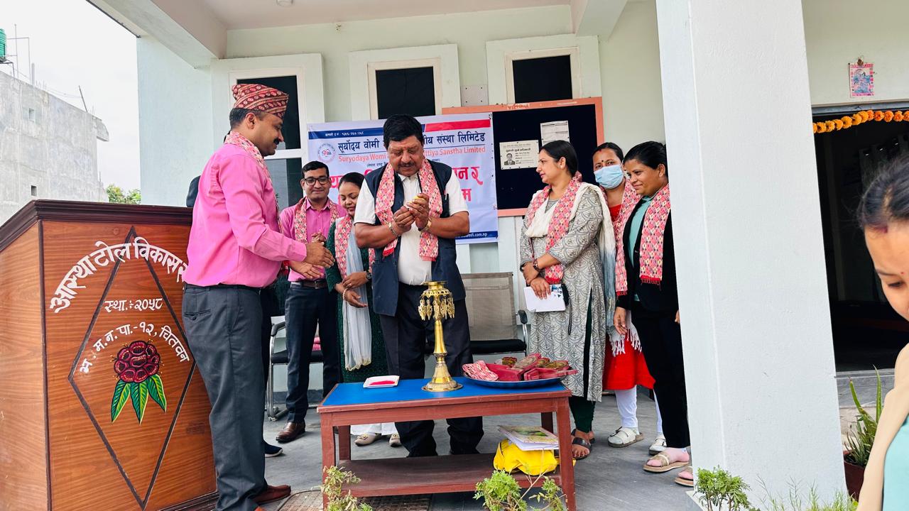 आफ्नै शाखा कार्यालय प्रङ्गणमा शुरु भएको उक्त तालिम भरतपुर महानगरपालिका वडा नं. १२ का वडाअध्यक्ष हरि पन्तले उद्घाटन गरेका थिए । अतिथिको रुपमा आस्था टोल बिकास समितिका कोषाध्यक्ष मंगला क्षेत्री राउत, सूर्योदय वोमी लघुवित्त वित्तीय संस्था लि. का स्टेशन कार्यालय भरतपुरमा कार्यरत बरिष्ठ अधिकृत भरत काफ्ले, अनुगमन अधिकृत दामोदर पौडेल, प्रशिक्षक सबिना बिश्वकर्मा र भरतपुर शाखाका प्रमुख अप्सरा उप्रेति रहेकी थिइन् भने कार्यक्रमलाई राकेश कुमार यादबले सहजिकरण गरेका थिए । शाखा प्रबन्धक उप्रेतिका अनुसार तालिममा ६२ जना भन्दा बढी महिला सहभागिता रहेका थिए । संस्थाबाट ऋण लिएका महिलाहरुलाई उद्यमी बनाएर आयआर्जन गरी स्वरोजगार बनाउने, व्यवसायिक रुपमा उद्योग संचालन गराउनका लागि यस्ता खालको तालिम प्रदान गरिएको प्रबन्धकले बताए ।