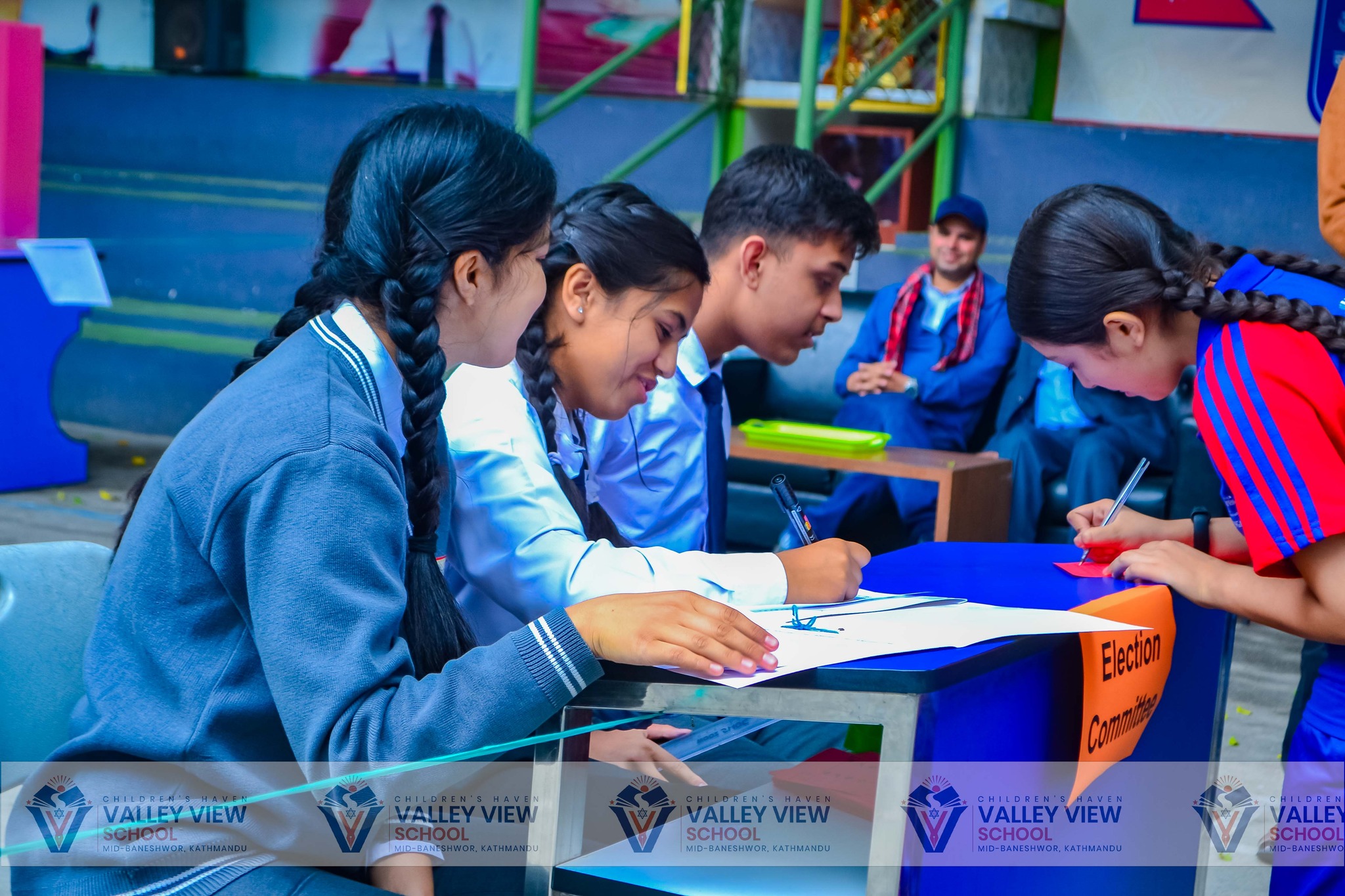 काठमाडौं, १ जेठ । मध्यबानेश्वरमा रहेको भ्याली भ्यु स्कुलले विद्यार्थी नेतृत्व चयनका लागि आमनिर्वाचनको झल्को दिने गरी प्रयोगात्मक अभ्यास गराएको छ। आआफ्नो सदनको लिडर चुन्न वास्तविक निर्वाचनको आभास हुने गरी आइतबार विद्यार्थीहरू निर्वाचनमा होमिएका थिए। आफ्नो सदनको कप्तान र उप-कप्तान छान्न विद्यार्थीले निर्वाचनका सबै प्रक्रिया अपनाएका थिए। उनीहरूले नामावली प्रकाशन, उम्मेदवारी दर्ता, मतदान चिह्न प्रदान, मौन अवधि, मतगणना, नतिजा घोषणा, शपथग्रहणलगायत प्रक्रिया अपनाएका थिए। विद्यालयले हरेक वर्ष विद्यालयभित्रका सदनहरूको नेतृत्व चयनमा यसरी नै निर्वाचन गराउँदै आएको छ। ४ देखि १० कक्षासम्म अध्ययनरत विद्यार्थीले हरेक वर्ष यस प्रकारको चुनावी अभ्यास गर्दै आएको विद्यालयका अतिरिक्त क्रियाकलाप संयोजक सन्तोष चापागाईं बताउँछन्। विद्यालयको मतदान प्रक्रियामा विद्यार्थीकै सक्रियता रहने गरेको र विद्यालय प्रशासनले सहयोग गर्ने गरेको विद्यालय संयोजक कृष्ण प्रसाद मैनालीले जानकारी गराए। मतदान कार्यक्रमका लागि विद्यालयका प्राचार्यलाई निर्वाचन आयुक्त नियुक्त गरी निर्वाचन आयोगसमेत गठन गरिएको थियो। यस्तो अभ्यासबाट विद्यार्थीले साँच्चै निर्वाचन कस्तो र कसरी हुन्छ? भनेर प्रत्यक्ष सिक्ने मौका पाउने प्राचार्य सुभाषचन्द्र भण्डारीको भनाइ छ। 'देशको नेतृत्व चयन गर्दा जुन प्रकारको चुनावी अभ्यास अपनाइन्छ, विद्यालयले गरेको अभ्यास चुनावमा पनि सोही प्रक्रिया अपनाइएको छ,' भण्डारीले भने। विद्यालयका चारवटा सदनका उम्मेदवारले मत माग्ने, आफ्ना अजेन्डा प्रस्तुत गर्ने, मौन अवधिको पालना गर्नेलगायत नियम पालना गरेका थिए। ‘यसप्रकारको अभ्यासले विद्यार्थीले निर्वाचन के हो र कसरी गरिन्छ भन्ने कुरा राम्ररी सिक्न पाउँछन्, अर्को उनीहरूले आ–आफ्नो विद्यालय सदनको नेतृत्व पनि छान्छन्,’ प्राचार्य भण्डारीले भने, ‘यसप्रकारको अभ्यासले प्रयोगात्मक ज्ञान, सिप अभिवृद्धि गर्न र बालविकासमा पनि यथेष्ट सहयोग गर्छ।’ मतदान प्रक्रियाबाट सदनका लागि कप्तान, उपकप्तानका लागि एक–एकजना विद्यार्थी निर्वाचित हुने व्यवस्था रहेको छ । अतिरिक्त क्रियाकलाप प्रयोगात्मक शिक्षाको बलियो आधार भएकाले विद्यालयले यस्ता खाले थुप्रै प्रयोगात्मक क्रियाकलाप गर्दै आएको भ्याली भ्यु स्कुलका माध्यमिक संयोजक दिपक मिश्रले प्रस्ट पारे। उनले विद्यार्थीहरूको चौतर्फी विकासमा विद्यालय सधैँ प्रतिबद्ध रहेको बताए।