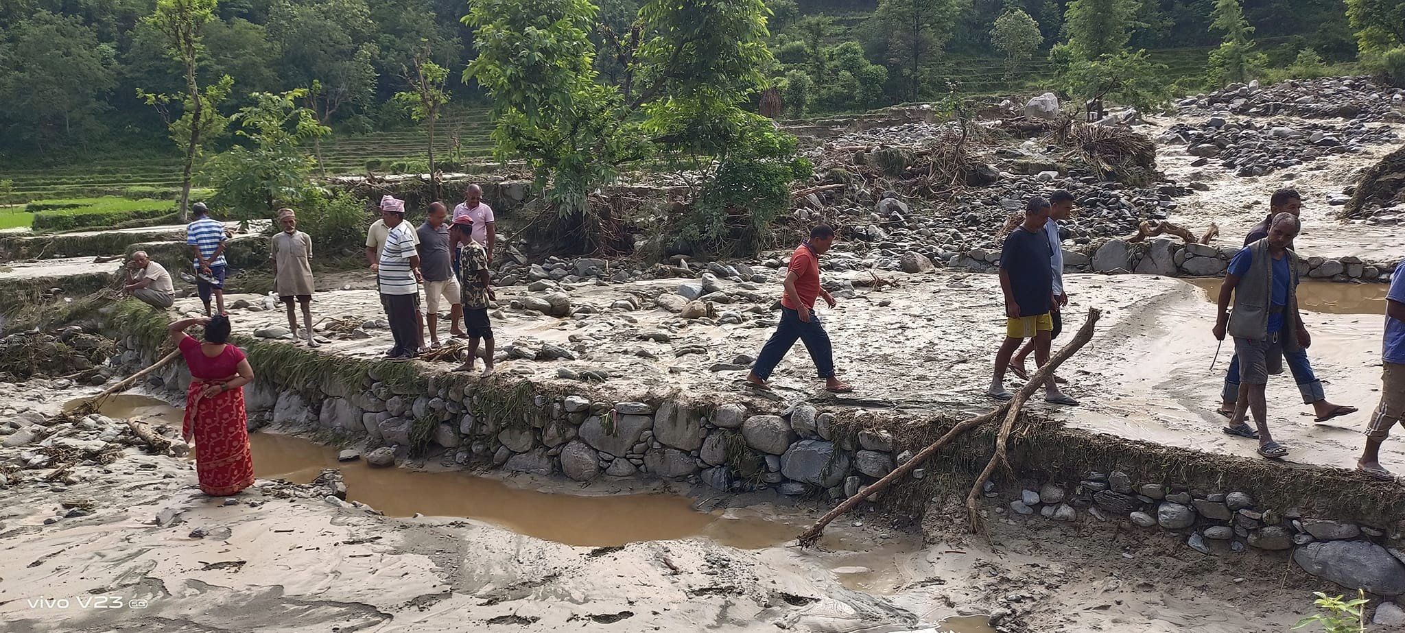 रामेछाप । रामेछापका विभिन्न खोलामा आएको बाढीले सयौँ रोपनी धान खेतमा क्षति पुर्याएको छ । मन्थली नगरपालिका–१ को रणजोर खोला, मन्थली–२ को कठजोर खोला लगायतमा आएको बाढीले किसानले धान लगाएको खेत बगाएर क्षति पुर्याएको छ । कठजोर खोलाले किनारका सयौँ रोपनी धान लगाएको खेत कटान र पुरेर क्षति पुर्याएको वडाध्यक्ष सुरेन्द्र कार्र्कीले जानकारी दिए । खोलाले एकै व्यक्तिको १० रोपनीसम्म खेतमा क्षति पुर्याएको उनले जानकारी दिए । खोलाको बाढीले एक जनाको घर र एकजनाको मतान सहितको खेत बगाएको उनले बताए । खोलामा बाढी आउने क्रम जारी रहेकोले अझै थप क्षति हुने जोखिम रहेको उनले जानकारी दिए । यसैगरी जिल्ला सदरमुकाम मन्थली भएर बग्ने रणजोर खोलाले पनि किसानले धान लगाएको खेत कटान गर्नुका साथै पुरेर क्षति पुर्याएको छ । खोलामा आएको बाढीले कुलाहरू समेत बगाएको कारण बाँकी खेतमा रोपाइँ गर्न र पानी लगाउन समस्या परेको स्थानीय किसान तीर्थ सुवेदीले जानकारी दिए । गएराति पनि रातभरि पानी परेकाले जिल्लाका अन्य स्थानमा पनि क्षति भएको अनुमान गरिएको छ । क्षतिको विवरण भने आइसकेको छैन ।