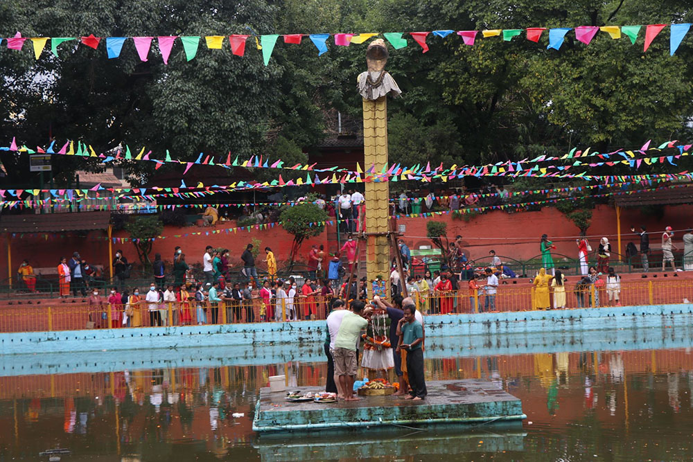 काठमाडौं । हिन्दु धर्मावलम्बीले आज नागको पूजा गरेर नागपञ्चमी मनाउँदै छन् । प्रत्येक वर्ष श्रावण शुक्ल पञ्चमीका दिन मनाइने नागपञ्चमी पर्व आज परम्पराअनुसार घरका मूलढोकामा नागको तस्बिर टाँसेर पूजार्चना गरी मनाइने गरिन्छ । नागको तस्बिर टाँस्दा वर्षभर घरमा नाग, सर्प र बिच्छीलगायत जीवले दुःख नदिने धार्मिक विश्वास रहँदै आएको छ। यस्तै नागको पूजा गर्दा अग्नी, मेघ र चट्याङको भयबाट बच्न सकिने धार्मिक विश्वाससमेत रहेको छ । नाग पूजाको प्रचलन वैदिक कालदेखि नै सुरु भएको मानिन्छ । वैदिक मान्यतानुसार नागलाई सर्पको राजा मानिने र नाग रिसाए भने पानीको अभाव हुने धार्मिक मान्यता रहेको छ । त्यसैले नागलाई खुशी पार्न पूजा गर्ने परम्परा छ । उदयकालको पञ्चमी तिथि भएकाले आज दिनभर नै घरघरमा नाग टाँस्न सकिने नेपाल पञ्चाङ्ग निर्णायक विकास समितिका कार्यकारी निर्देशक ज्योतिष पण्डित सूर्यप्रसाद ढुंगेलले बताए । काठमाडौंका नागपोखरी र टौदह, ललितपुरको धापाखेलस्थित नागदह, भक्तपुरको सिद्धपोखरीलगायत देशभरका नागदह, कुण्ड र नाग स्थानमा आज विशेष रुपमा पूजाआजा गरी नागको सम्मानका साथ गाईको दूध, अक्षता, दूबो, खीर र रोटीलगायत परिकार प्रसाद चढाउने गरिन्छ ।