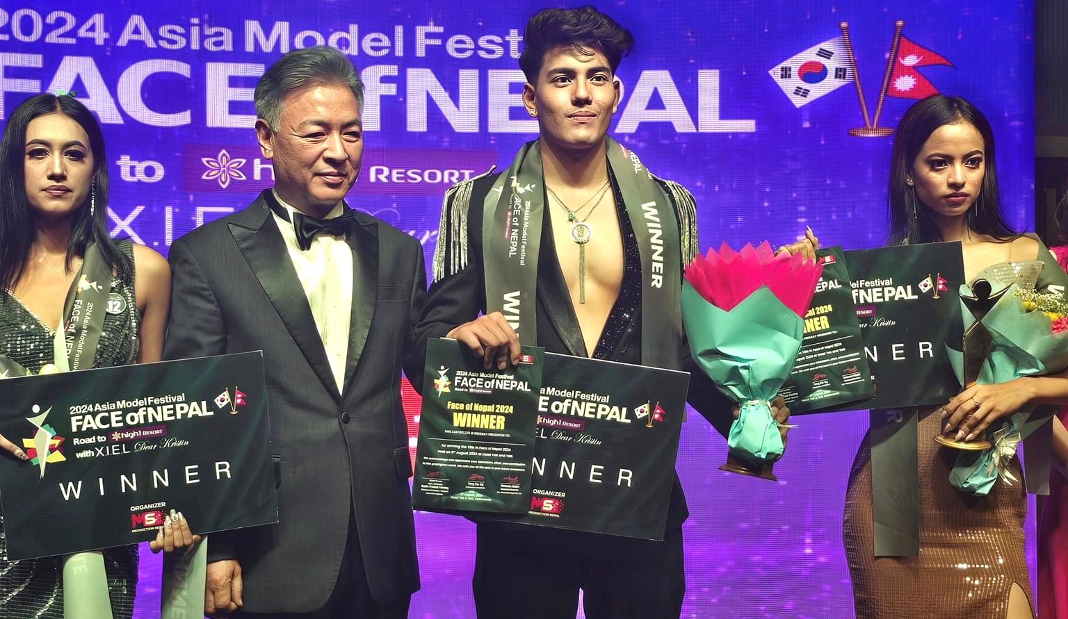 काठमाडौं । ललितपुर चांगाथलीका २० वर्षे युवक हिमाञ्चलराज केसीले एशिया मोडेल फेस्टिबलको लागि ‘फेस अफ नेपाल २०२४’ उपाधि जितेका छन् । ‘फेस अफ नेपाल २०२४’ टाइटल जितेसँगै हिमाञ्चलले आउँदो नोभेम्वरमा दक्षिण कोरियामा आयोजना हुने एशियाली मुलुकका मोडेलहरूबीच प्रतिष्पर्धा हुने फेस अफ एशिया अर्थात एशिया मोडेल प्रतियोगितामा नेपालको तर्फबाट भाग लिन पाउनेछन् । राजधानीको दरवारमार्गस्थित होटेल याक एण्ड यतीमा गत बिहीबार साँझ आयोजित फाइनल प्रतियोगितामा सहभागी अन्य ९ जना प्रतिष्पर्धिलाई पाखा लगाएर हिमाञ्चलले सो उपाधि जितेका हुन् । यसअघि उनी उत्कृष्ट १० मा छनौट भएका थिए । प्रतियोगितामा आर्यन सोनी चौधरीले जज च्वाइस जितेका छन् भने फेस अफ नेपालको महिलातर्फको टाइटल सिम्रन चन्द ठकुरी र टिना परियारले जितिन् । ‘फेस अफ नेपाल २०२४’ मुख्य उपाधिको साथै हिमाञ्चलले देश विदेशबाट सर्वाधिक मतको उपाधि र उत्कृष्ट शारिरीक सुगठन गरी तीनवटा उपाधि जितेका छन् । महालक्ष्मी नगरपालिका वडा नं ७ चांगाथलीका व्यवसायी एवम् समाजसेवी राजकुमार र गृहणिी सविता केसीका छोरा हिमाञ्चलराज राजधानीको कमलपोखरीस्थित इस्लिङ्गटन कलेजमा बिबिए चौथो सेमेष्टरमा अध्ययन गर्दैछन् । ६ फिट १ इन्च अग्ला हिमाञ्चलले बर्जर पेण्टस्लगायत विभिन्न व्यवसायिक विज्ञापनहरूमा मोडेलको रुपमा खेलिसकेका छन् ।