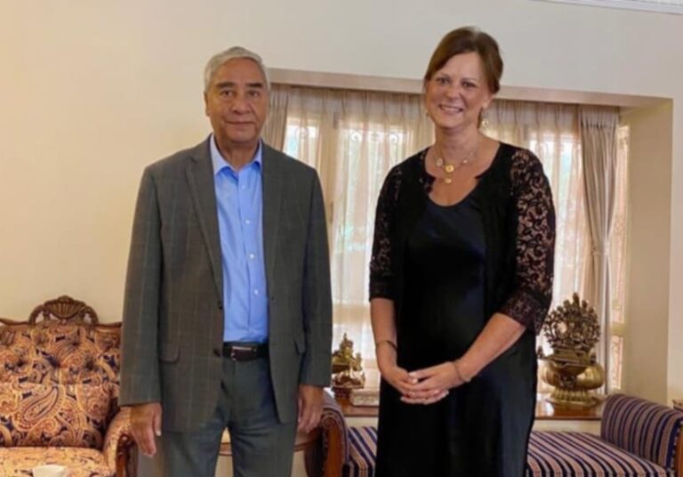 काठमाडौं । नेपालका लागि अष्ट्रेलियाकी राजदूत फेलिसिटी भोल्कले नेपाली कांग्रेसका सभापति तथा पूर्व प्रधानमन्त्री शेरबहादुर देउवासँग विदाई भेटवार्ता गरेकी छिन् । नेपालमा आफ्नो कार्यकाल सकाएर स्वदेश फर्किनुअघि राजदूत भोल्कले विभिन्न दलका नेताहरु र सरकारका उच्च पदस्थहरुसँग विदाई भेटवार्ता गरिरहेकी छिन् । सोही सिलसिलामा उनले आज कांग्रेस सभापति देउवासँग पनि विदाई भेटवार्ता गरेकी हुन् । सो क्रममा उनले देउवाको प्रधानमन्त्रीत्व कार्यकालको पनि सम्झना गरेकी छिन् । उनले नेपाल–अष्ट्रेलिया सम्बन्ध पछिल्लो समय झनै बलियो बनेको दाबी गरेकी छिन् । दुई देशबीच जनस्तरमा पनि सम्बन्ध सुमधुर भैरहेको उनको भनाई छ ।