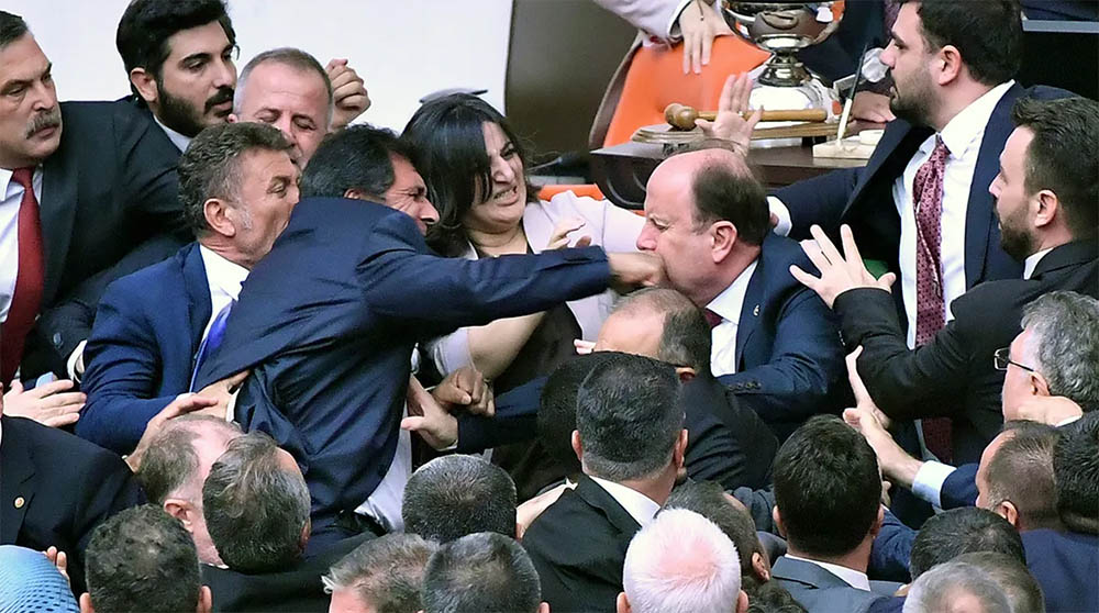 काठमाडौँ । टर्कीको संसदमा भीषण झडप भएको छ । संसद्को भिडियोमा सांसदहरूले एकअर्कालाई लात र मुक्का प्रहार गरेको देखिएका छन् । यो झगडा करिब ३० मिनेटसम्म चलेको थियो । जसमा तीन विपक्षी सांसद घाइते भएका छन् । एक विपक्षी सांसदले टर्कीका राष्ट्रपति एर्दोगानको पार्टीलाई आतंकवादी संगठन भनेपछि संसदमा झडप भएको थियो । त्यसपछि एर्दोगनको एकेपी पार्टीका एक नेताले विपक्षी नेता अहमद सिकमाथि हमला गरेका थिए । झगडा चर्किएपछि र सांसदहरूले एकअर्कालाई मुक्का प्रहार गर्न थालेका थिए । यो घटनासँग जोडिएको भिडियो सामाजिक सञ्जालमा भाइरल भइरहेको छ । शुक्रबार टर्कीको संसदमा विशेष सत्रको बैठक बसेको थियो । यसमा सांसद केन अटलेको चर्चा चलिरहेको थियो । अटालेले सन् २०१३ मा एर्दोगान सरकारको विरोध गरेका थिए, जसमा धेरै हिंसा भएको थियो। यसपछि अटाले पक्राउ परेका थिए । अटाले सन् २०१३ देखि जेलमा छन् । उनलाई सन् २०२२ मा १८ वर्षको जेल सजाय सुनाइएको थियो । गत मे महिनामा भएको निर्वाचनमा अटाले विजयी भएका थिए । उनी वामपन्थी टीआईपी पार्टीबाट सांसद बने । यसपछि एर्दोगनको पार्टीले अटालेको संसदको सदस्यता खारेज गर्ने विधेयक ल्यायो । यो निर्णयलाई अदालतमा पुनरावेदन गरिएको थियो । अगस्ट १ मा, टर्कीको सर्वोच्च अदालतको निर्णय आयो जसमा संसदको निर्णयलाई उल्टाइएको थियो । अटाले फेरि सांसद बने । अदालतले उनको सांसदको रूपमा सबै अधिकारहरू पुनर्स्थापित गर्यो । अदालतले अटलेलाई जेलबाट रिहा गर्न पनि आदेश दिएको छ । वास्तवमा अटाले जेलमा रहेका कारण आफ्नो क्षेत्रमा काम गर्न नसकेको भन्दै अदालतमा निवेदन दिएका थिए । उनी आफ्नो संसदको कार्यकाल पूरा गरेपछि फेरि जेल जानेछन् । उनको मागलाई अदालतले स्वीकार गरेको छ । अदालतको यो निर्णयमाथि संसदमा बहस चलिरहेको थियो । अटालेको आफ्नै पार्टीका नेता अहमद सिकले भाषण दिइरहेका थिए । उनको भनाइले संसदमा हंगामा सुरु भयो । झडपका कारण संसदको बैठक अवरुद्ध भयो । तीन घन्टाभन्दा बढीको ब्रेकपछि बैठक पुनः सुरु भएको थियो । एर्दोगानको पार्टी विरुद्धको बयानका लागि स्पिकरले विपक्षी दलका नेता सिकलाई हप्काए । सभामुखले सिकमाथि आक्रमण गर्ने नेताहरुलाई पनि गाली गरे । झगडामा संलग्न दुवै सांसदलाई प्रतिबन्ध लगाउन भनिएको छ । मुख्य विपक्षी पार्टी सीएचपीका प्रमुख ओज्गुर ओजेलले हिंसाको निन्दा गरेका छन् । संसदमा यो सबै भइरहेको देख्दा आफूलाई लाज लागेको उनले बताए ।