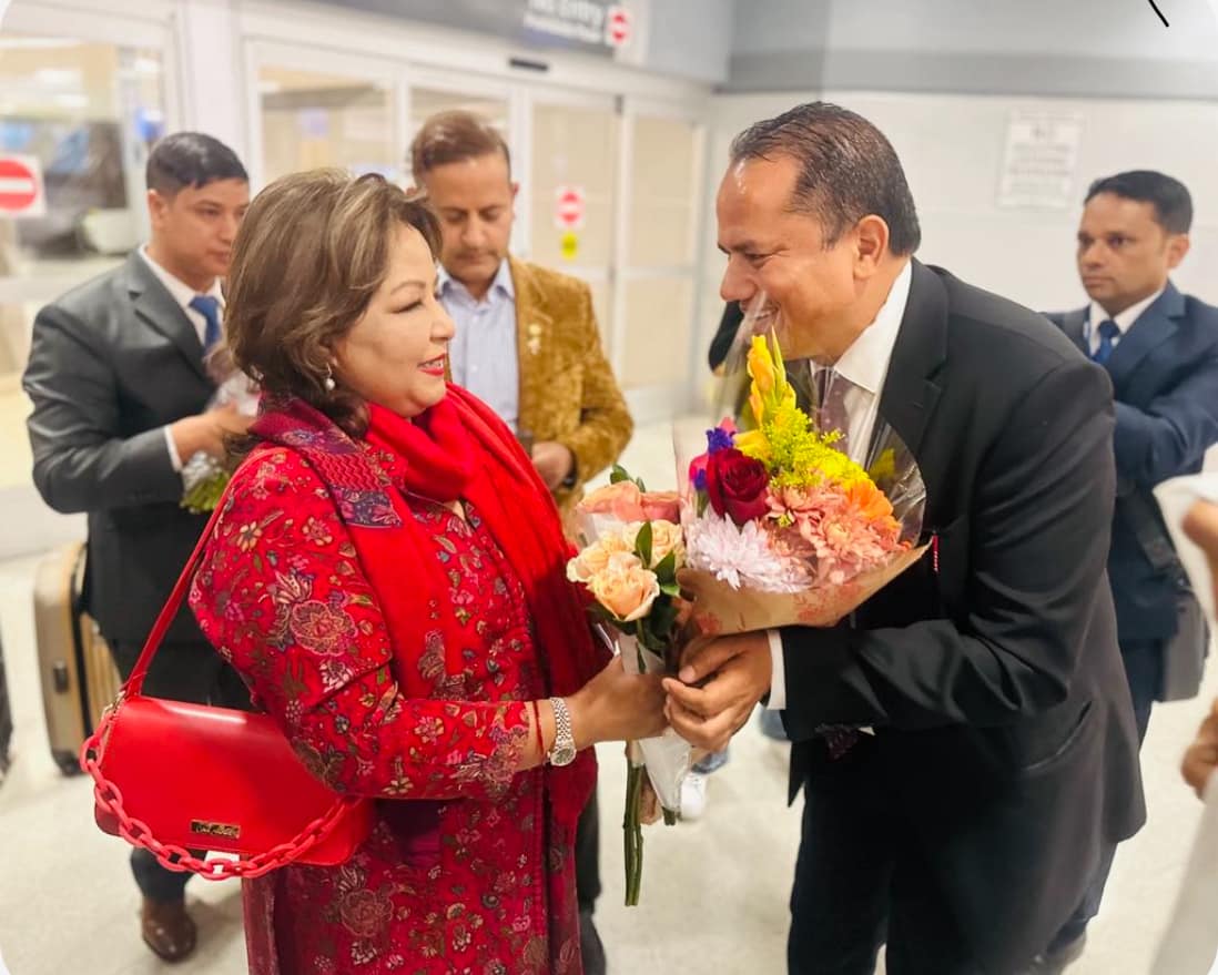 न्यूयोर्क । परराष्ट्रमन्त्री डा. आरजु राणा अमेरिका पुगेकी छन् । संयुक्त राष्ट्र संघको महासभामा भाग लिन शनिबार दिउँसो क्यानडा हुँदै अमेरिकाको न्यूयोर्क पुगेकी परराष्ट्रमन्त्री डा. राणालाई नेपाली जनसम्पर्क समितिको संयोजनमा स्वागत गरेकाे छ । जनसम्पर्क समिति अमेरिकाका सभापति आनन्द बिष्टको नेतृत्वमा गएको समितिका पदाधिकारी, केन्द्रीय सदस्य र पार्टीका विभिन्न तहका कार्यकर्ताले न्यूयोर्कको जोन एफ केनेडी अन्तर्राष्ट्रिय विमानस्थल परिसरमा स्वागत गरेका थिए । नेपाली कांग्रेसकी केन्द्रीय सदस्यसमेत रहेकी मन्त्री राणाको स्वागतका लागि हाल अमेरिकामै रहेका कांग्रेस केन्द्रीय सदस्य डाक्टर रणबहादुर रावल पनि विमानस्थल पुगेका थिए। यसैगरी मन्त्री राणाको स्वागतका लागि संयक्त राष्ट्र संघको नेपाल मिसनका स्थायी प्रतिनिधि लोकबहादुर थापा, अमेरिकाका लागि कार्यवाहक नेपाली राजदूत कुमार खरेल, न्यूयोर्कस्थित वाणिज्यदूत चक्रबहादुर सुवेदी, अमेरिकाका विभिन्न राज्यका नेपाली अवैतनिक वाणिज्य दूत, विभिन्न राजनीतिक दल र संघसंस्थाका प्रतिनिधि पनि विमानस्थल पुगेका थिए । जनसम्पर्क समितिका सभापति बिष्टले परराष्ट्रमन्त्री राणालाई सामूहिक रुपमा अमेरिकामा रहेका राजनीतिक दलका प्रवासी संगठन, सामाजिक संघ संस्था, नेपाली दूतावास र न्यूयोर्कस्थित युएनको स्थायी नियोगका तर्फबाट स्वागत गरिएको बताए । उनले अमेरिकामा नेपालीहरुले भोग्दै आएका समस्या समाधानका लागि कुटनीतिक पहल गरिदिन नेपालीका तर्फबाट परराष्ट्र मन्त्री राणासँग आग्रह गरिएको जानकारी दिए । यसैबीच नेपाली कांग्रेसका पूर्वआमन्त्रित केन्द्रीय सदस्यसमेत रहेका विष्टले भोली आइतबार साँझ न्यूयोर्कमा प्रधानमन्त्री केपी ओली र परराष्ट्रमन्त्री डाक्टर राणाको स्वागत तथा सम्मानमा कार्यक्रम आयोजना गर्न लागिएको जानकारी दिए । नेपाली महावाणिज्य दूतावास न्यूयोर्क, नेपाली जनसम्पर्क समिति, अमेरिका, प्रवासी नेपाली मन्च, आदिवासी जनजाति महासंघ, मधेशी एसोसिएशन, एनआरएन न्यूयोर्क च्याप्टरलगायतका संघ संस्थाको संयुक्त आयोजनामा कार्यक्रम हुने विष्टले बताए।