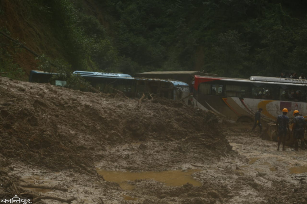 मलेखु । धादिङ र काठमाडौँको सिमाना नजिकै धुनिबेसी नगरपालिका–९ झ्याप्ले खोलाको पहिरो पन्छाएर पुनः खोजी गरिएको छ । तीन वटा सवारी साधनमा ३५ जनाको शव फेला परेको पहिरोमा अरू पनि थप सवारी साधन पुरिएको हुनसक्ने आशंकामा सडकको कुना र सडक तलतिर थुप्रिएको पहिरो पन्छ्याएर पुनः खोजी गरिएको हो । झन्डै दुई सय मिटर माथिबाट डाँडै भासिएर झरेको पहिरोको गेग्य्रानले सडकको कुना भागमा र सडकको तलतिर ठूलो थुप्रो लागेको थियो । दुईवटा माइक्रोबस र एक ठूलो बस पुरिएको अवस्थामा फेला परेको स्थानमा एउटा कार पनि पुरिएको भन्ने आशंका रहेकाले पहिरोले थुप्रिएको माटोसमेत पुनः पन्छाएर खोजी गरिएको र पहिरोमा कुनै पनि सवारी साधन फेला नपरेको जिल्ला प्रहरी कार्यालयका प्रहरी उपरीक्षक दीपेन्द्र शाहीले जानकारी दिए । निर्माणाधीन सडक आयोजनाको डोजर प्रयोग गरेर आज बिहान पहिरोको गेग्य्रान पन्छाएपछि अहिले झ्याप्ले खोला क्षेत्रमा दुईतर्फी सडक खुलाइएको छ । सवारी साधन चापकै कारण जोखिमपूर्ण स्थानहरुमा जाम हुन नदिन काठमाडौं भित्रिने र बाहिरिने सवारी साधनलाई आलोपालो गरी आउजाउ गराइएको छ । निरन्तरको वर्षासँगै शुक्रबार राति झ्याप्ले खोलामा पहिरो खसेको थियो । झ्याप्लेखोलामामा गोरखाबाट आएको एउटा बस, बुटवल र चितवनबाट आएका दुई वटा माइक्रोबस पुरिँदा ३५ जनाको मृत्यु भएको थियो ।