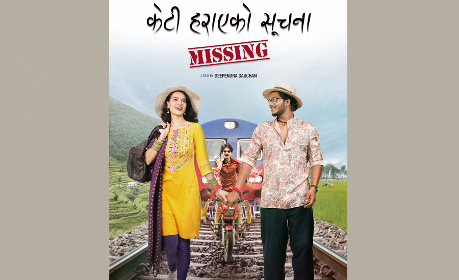 काठमाडौं । आगामी कार्तिक ३० गते रिलिज हुने फिल्म ‘मिसिङः केटी हराएको सूचना’को पोस्टर सार्वजनिक भएको छ । ट्री सिटी पिक्चर्स प्रस्तुतकर्ता रहेको फिल्म ट्री सिटी पिक्चर्स व्यानरमा निर्माण भएको हो । पोस्टरमा रेलको लिकमा फिल्मका नायक नाजिर हुसेन र नायिका सृष्टि श्रेष्ठलाई हात समाएर हिँडिरहेको देख्न सकिन्छ । कुर्ता सुरुवालमा सजिएकी सृष्टिले शीरमा ह्याट लगाएर कालो ब्याग बोकेकी छन् । उनले सेतो रंगको जुत्तासमेत लगाएकी छन् । त्यस्तै सर्ट र पेन्टको गेटअपमा देखिएका नाजिरले शीरमा ह्याट लगाएका छन् भने जुत्ता पनि सेतै रंगको छ । पृष्ठभूमिमा फिल्मका अर्का कलाकार दुरा सञ्जय गुप्ता रातो रंगको हिरो होण्डा मोटरसाइकलमा छन् । कालो चस्मा लगाएर काँधमा गाम्छा भिरेका सञ्जयले पान खाएको देख्न सकिन्छ । सञ्जयको पछाडि जनकपुर–जयनगर रुटमा चल्ने रेललाई राखिएको छ । कलाकार र रेलको पृष्ठभूमिमा पहाड र तराईको दृश्य छ । पोस्टर आशिस सापकोटाले डिजाइन गरेका हुन् ।