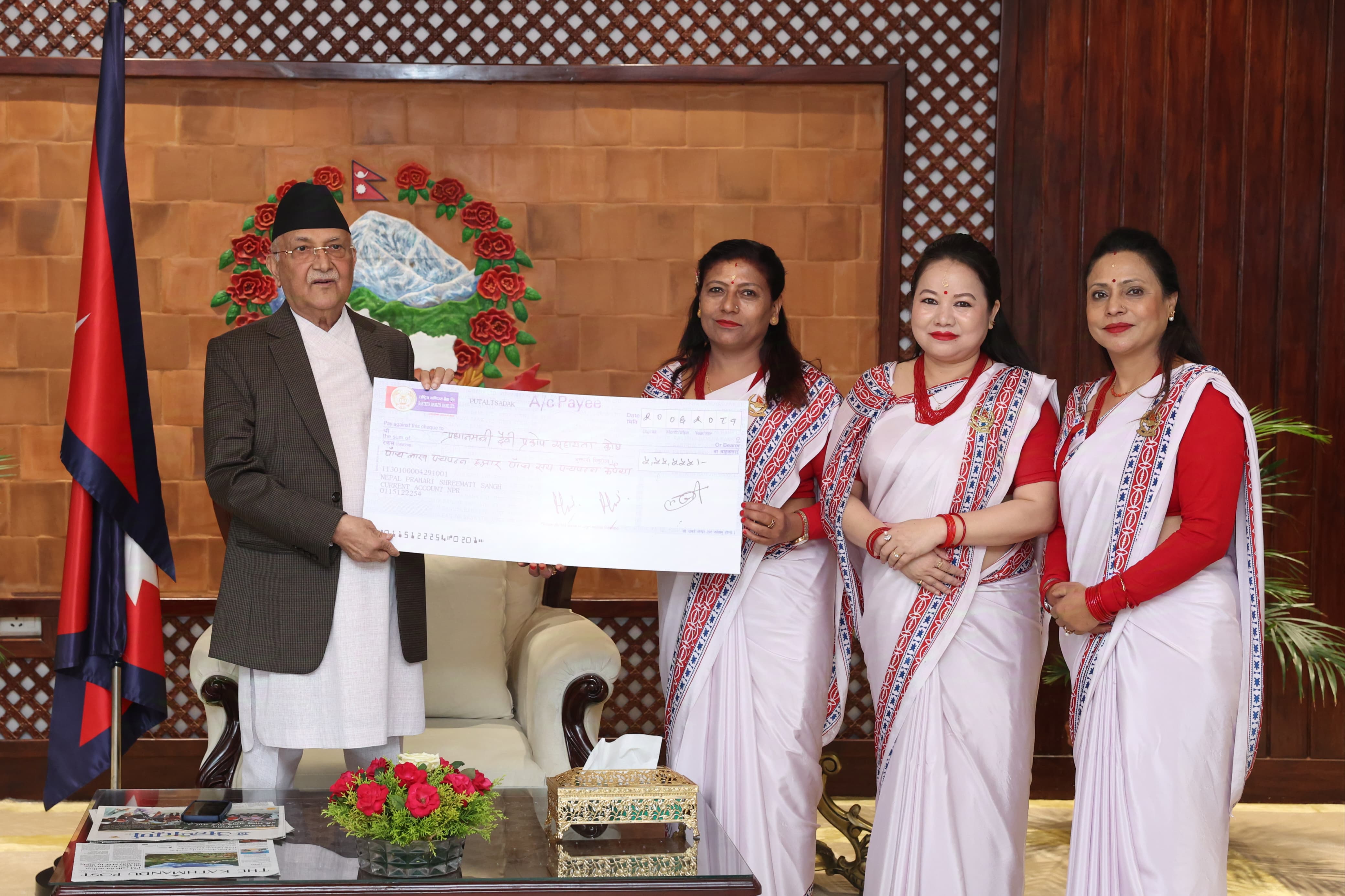 काठमाडौं । प्रधानमन्त्री केपी शर्मा ओलीलाई प्रधानमन्त्री दैवी प्रकोप राहत कोषका लागि कर्मचारी सञ्चय कोष र नेपाल प्रहरी श्रीमती संघले सहयोग रकम हस्तान्तरण गरेका छन् । मंगलबार कोषका प्रमुख प्रशासक जितेन्द्र धितालसहित संचालक सदस्यले प्रधानमन्त्री निवास बालुवाटारमा रु दुई करोडको चेक हस्तान्तरण गरेका हुन् । यसैगरी प्रहरी श्रीमती संघका अध्यक्ष लक्ष्मी कुवँरले रु पाँच लाख ५५ हजार पाँच सय ५५ को चेक हस्तान्तरण गर्नुभयो ।