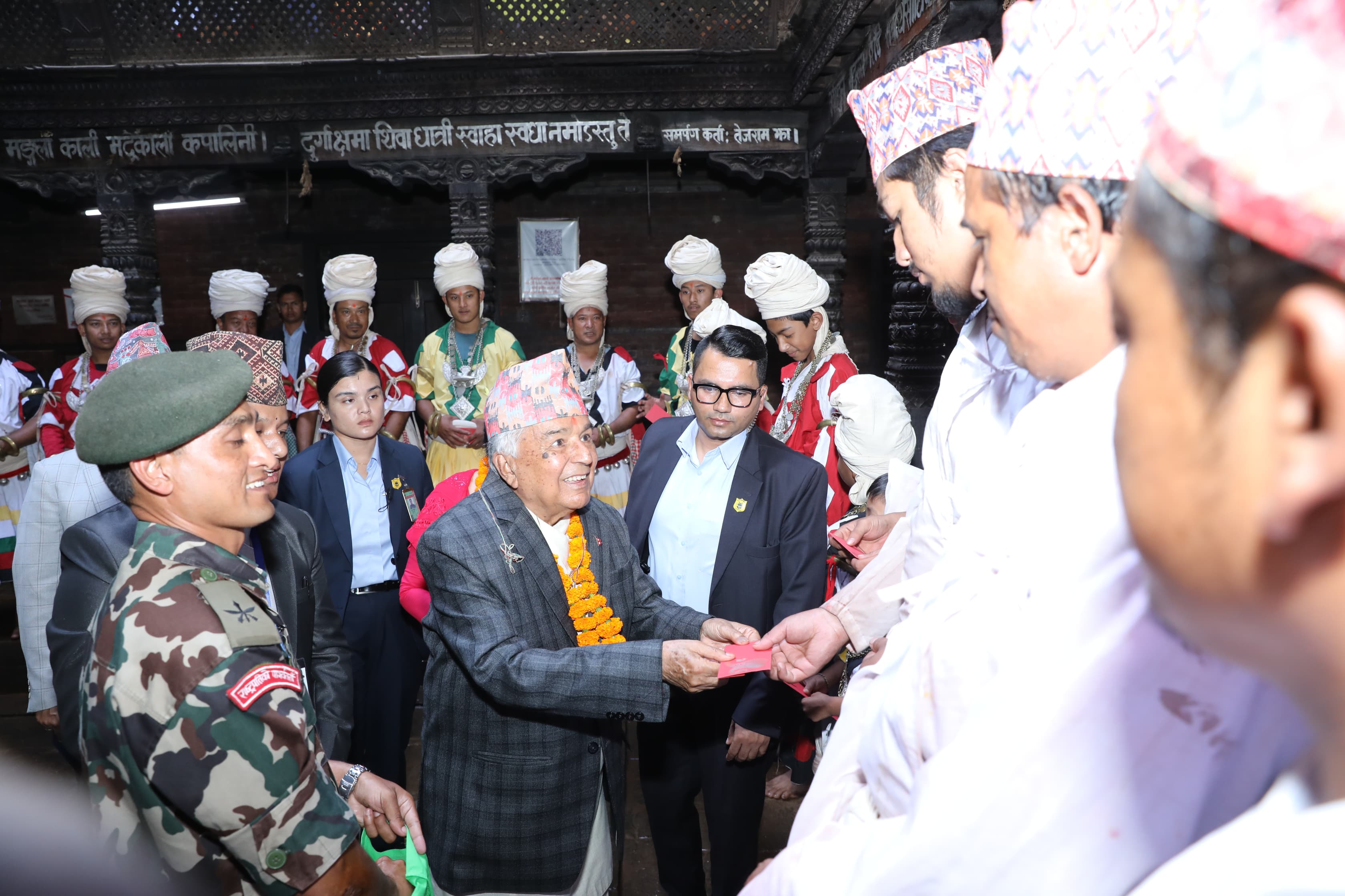 काठमाडौं । राष्ट्रपति रामचन्द्र पौडेलले प्रथम महिला सविता पौडेलसहित भक्तपुरस्थित् नवदुर्गा भगवतीको दर्शन तथा पूजा अर्चना गरेका छन् । बडादशैंको अन्तिम दिन अर्थात बुधबार आश्विन शुक्ल पूर्णिमाका दिन राष्ट्रपति पौडेलले त्यहाँ रहेको नवदुर्गा भगवतीको पूजा अर्चना गरेका हुन् । बडा दशैंको अन्तिम दिन राष्ट्र प्रमुखले भक्तपुरस्थित् नवदुर्गा भगवतीको पूजा अर्चना गर्ने प्रचलन छ । यसअघि राष्ट्रपति पौडेलले विभिन्न शक्तिपिठको दर्शन गरी पूजाअर्चना गरेका थिए ।