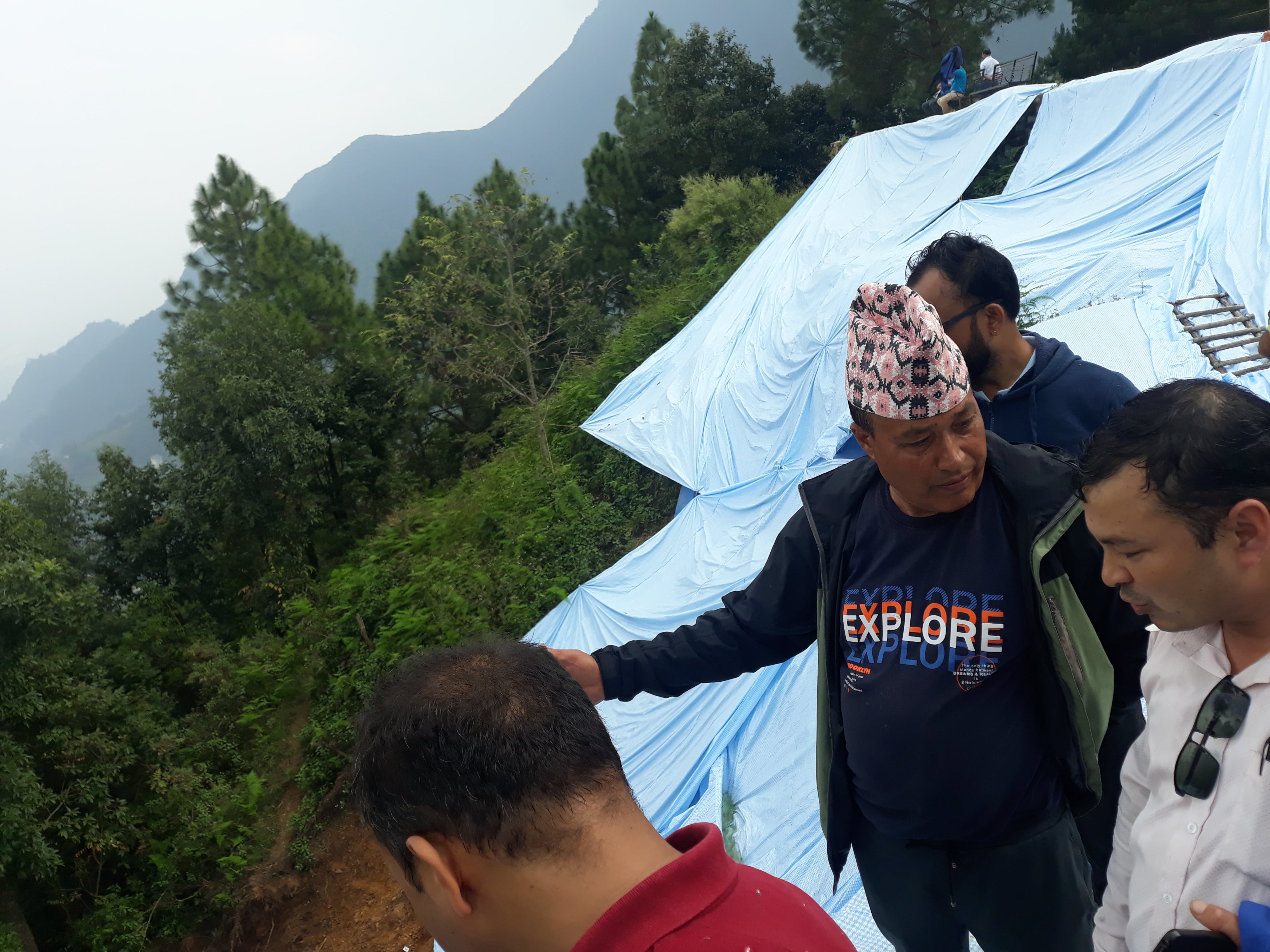 कीर्तिपुर (काठमाडौं) । भूगर्भविद्हरूले दुई सय घर जोखिममा पार्ने गरी कीर्तिपुर नगरपालिका ४ स्थित सान्डाँडाबाट थापागाउँतर्फ गएको पहिरोको अध्ययन थालेका छन् । भू प्रविधिविद् डा.प्रदीप पोखरेल र स्थानीय इन्जिनियरहरू तथा पहिरो पीडित, दिपेन्द्र विक्रम थापा तथा शान्तिवन विकास समितिका संयोजक देवेन्द्र महर्जनसहितको टोलीले शनिबार उक्त स्थानको स्थलगत अवलोकन गरी अध्ययनको थालनी गरेका हुन् । चन्द्रागिरी नगरपालिकाको ९ नम्बर वडासँगै सीमा जोडिने उक्त स्थानमा गत असोज १० र ११ गतेको अविरल वर्षालगत्तै झण्डै पाँच सय मिटर तलसम्म पहिरो गएको थियो । उक्त पहिरोमा सान्डाँडाको निर्माणाधीन शान्तिस्तुपाको सिँडी हुँदै थापागाउँको फेदीसम्म माटो बगेको थियो । प्रारम्भिक अवलोकनपछि डा.पोखरेलले अध्ययनका विविध पक्ष समावेश गरी प्रस्ताव तयार गर्ने र भू गर्भविद्लाई समेत समावेश गरी व्यवस्थित अध्ययन थालिने बताए । स्थानीय पीडितहरूले चन्द्रागिरी र कीर्तिपुर दुवै नगरपालिकासँग पहिरोबाट धनजनको क्षतिहुने जोखिम रहेकोले तत्काल रोकथामका लागि आवश्यक काम गर्न माग गरेका छन् । यसैगरी दीर्घकालीन रुपमा थापागाउँ मानव वसोबासका लागि ठीक भए नभएको र शान्ति स्तुपा निर्माणबाट त्यस स्थानको भूबनोटमा परेको असर बारे समेत विस्तृत अध्ययन गरिनुपर्ने माग राखेका छन् ।