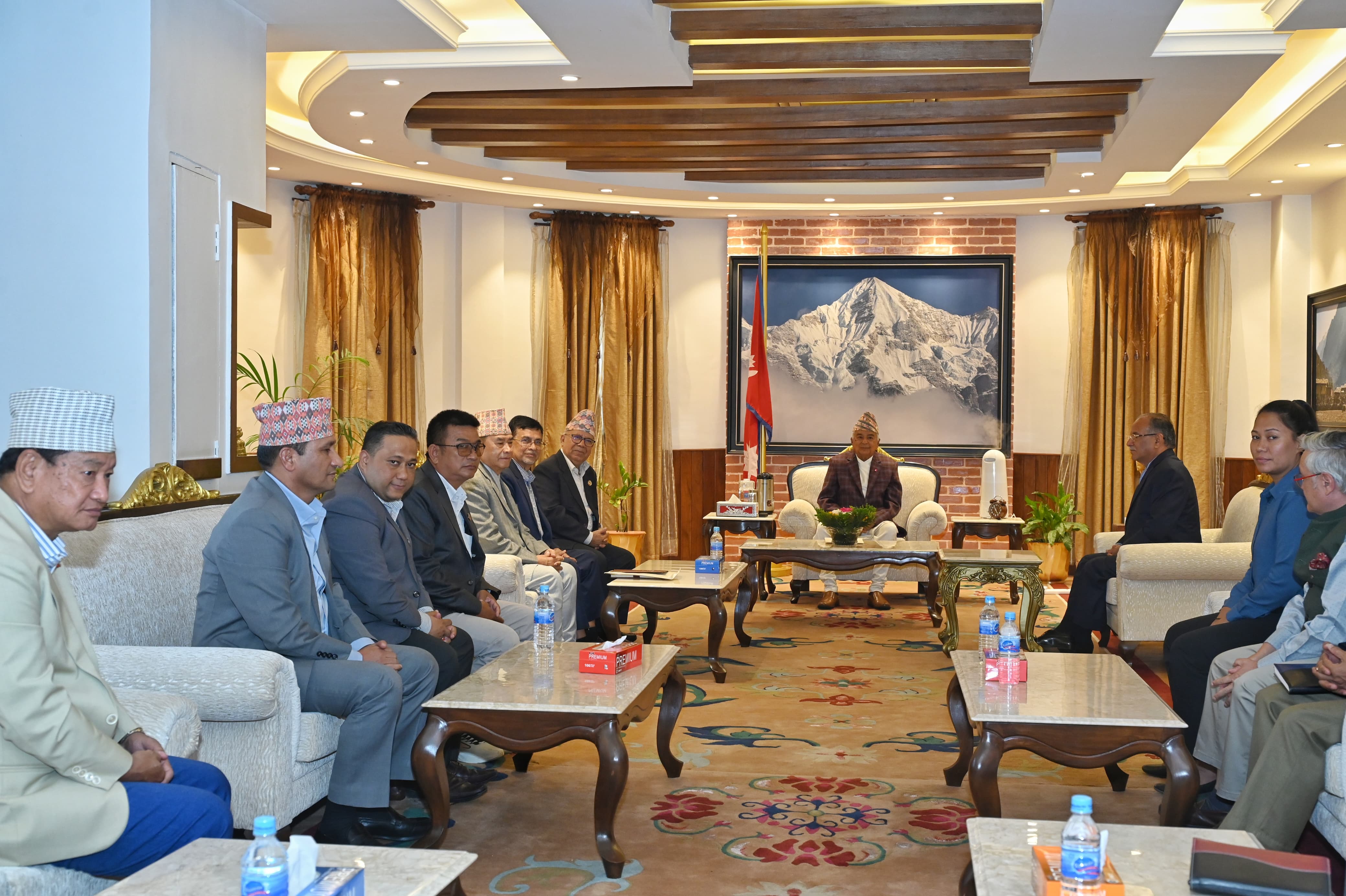 काठमाडौं । राष्ट्रपति रामचन्द्र पौडेलसँग संसदमा प्रतिपक्षमा रहेका दलका नेताहरूले भेट गरेका छन् । बुधबार राष्ट्रपति भवन शीतल निवासमा प्रमुख प्रतिपक्षी दलका नेता एवं नेकपा माओवादी केन्द्रका अध्यक्ष पुष्पकमल दाहाल प्रचण्डसहित प्रतिपक्षमा रहेको दलका नेताहरूले भेट गरेका हुन् । प्रतिपक्ष दलहरूले प्रधानमन्त्री केपी शर्मा ओलीलाई ज्ञापनपत्र बुझाएको सन्दर्भमा सरकारबाट भएका कमीकमजोरीहरूबारे राष्ट्रपतिलाई जानकारी दिनका लागि शीतलनिवासमा आएको जानकारी दिएका थिए । राष्ट्रपति पौडेलसँग प्रतिपक्ष दलका नेताहरूले वर्तमान परिस्थितीका बारे जानकारी दिनका लागि आफूहरू आएको बताउँदै लोकतन्त्र र संविधानको संरक्षकको भूमिका निर्वाह गर्न आग्रह गरेको राष्ट्रिपतिका प्रेस सल्लाहकार किरण पोखरेलले जानकारी दिए । उनिहरूले संविधानको मर्म विपरित र बहुलवादमा आधारित मर्म विपरितका कतिपय क्रियाकलाप हुन लागेको जिकिर गर्दै यसमा संविधानको संरक्षक र देशको अभिभावकका हैसियतमा भूमिका निर्वाह गर्न आग्रह गरेका थिए । सो असरमा राष्ट्रपति पौडेलले आफू संविधान, राष्ट्र र राष्ट्रिय एकताको प्रर्वद्धनप्रति प्रतिबद्ध रहेको बताउँदै संविधानले आफूलाई दिएको कर्तब्य र सिमा अनुसार अगाडि बढ्ने कुरामा विश्वस्त हुन आग्रह गरे । उनले भने, ‘संविधान मर्म र लोकतन्त्रको मर्मलाई हेरेर संविधानले निर्धारित राष्ट्रपतिको कतब्र्य र सिमालाई हेरेर मैले काम गर्ने कुरामा तपाईहरूलाई विश्वास दिलाउन चाहन्छु ।’ संसदमा प्रतिपक्षमा माओवादी केन्द्रसहित राष्ट्रिय स्वतन्त्र पार्टी, राष्ट्रिय प्रजातन्त्र पार्टी, नेकपा एकीकृत समाजवादी, र आम जनता पार्टी छन् । राष्ट्रपति पौडेलसँगको भेटमा नेकपा माओवादी केन्द्रका अध्यक्ष पुष्पकमल दाहाल प्रचण्ड, शक्ति बस्नेत, राष्ट्रिय स्वतन्त्र पार्टीबाट सांसदद्धय शिशिर खनाल र सुमना श्रेष्ठ, राष्ट्रिय प्रजातन्त्र पार्टीबाट नेता बुद्धिमान तामाङ र हेमजङ्ग गुरुङ, नेकपा (एकीकृत समाजवादी) बाट अध्यक्ष माधवकुमार नेपाल र वरिष्ठ उपाध्यक्ष राजेन्द्र प्रसाद पाण्डे र आम जनता पार्टीबाट नेता तिलक थापामगर सहभागि थिए ।