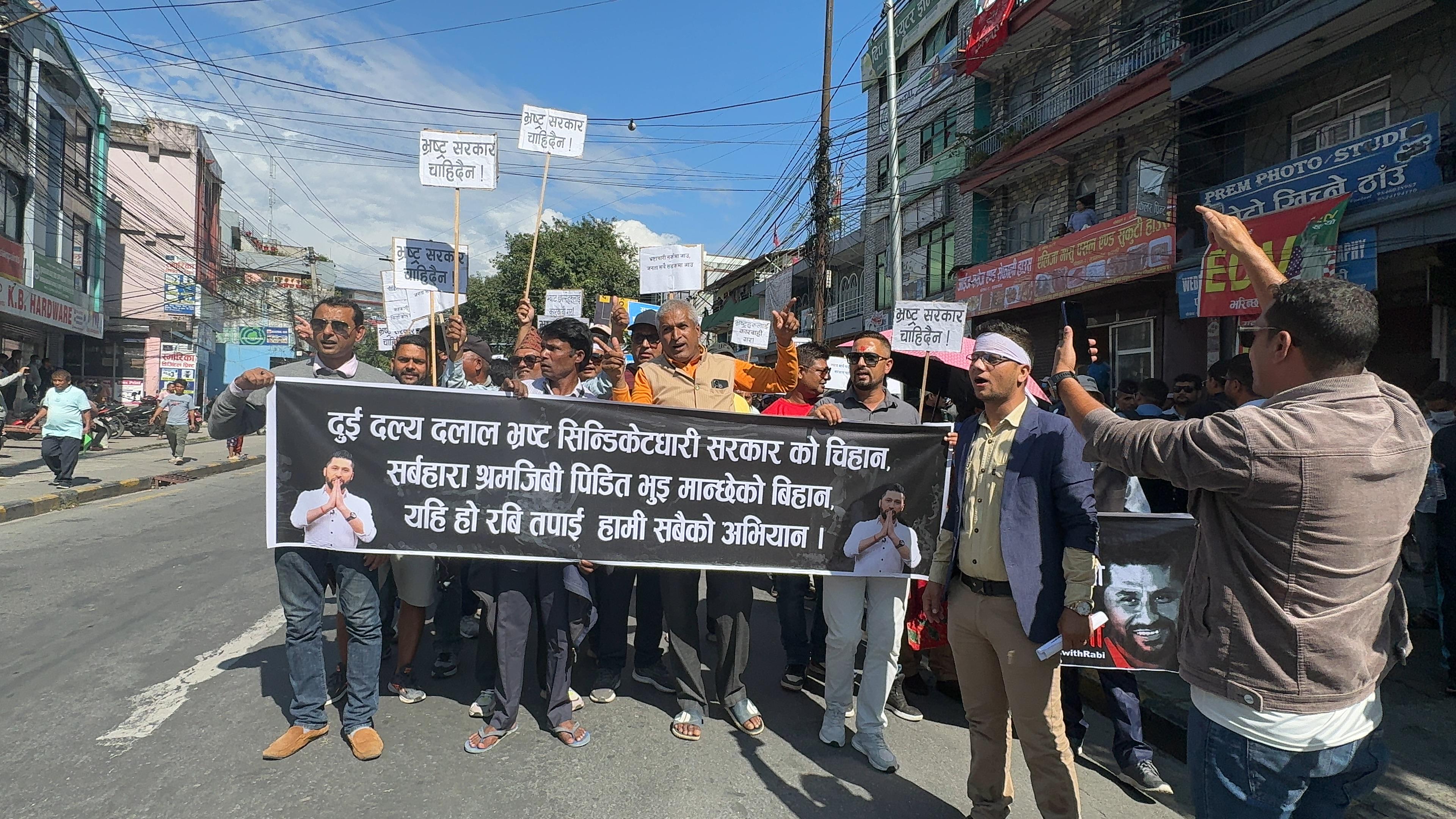 काठमाडौं । राष्ट्रिय स्वतन्त्र पार्टी (रास्वपा) ले शुक्रबारदेखि काठमाडौं केन्द्रित आन्दोलन गर्ने भएको छ । पूर्वगृहमन्त्री एवं पार्टी सभापति रवि लामिछाने पक्राउ परेपछि पोखरा केन्द्रित आन्दोलन गर्दै आएको रास्वपाले आजदेखि काठमाडौँमा आन्दोलन गर्न लागेको हो । लामिछानेमाथि अनुसन्धान प्रक्रिया चलिरहँदा सात दिनयता रास्वपाले पोखरा केन्द्रित विरोध प्रदर्शनका कार्यक्रम गर्दै आएकोमा शुक्रबारदेखि भने काठमाडौँमा प्रदर्शन गरिने प्रदेश सभापति राजन गौतमले जानकारी दिए । आज दिउँसो १ बजे काठमाडौंको माइतीघरमा प्रदर्शन गर्न लागिएको हो । पोखरामा रास्वपाले प्रदर्शन गरे पनि जनस्तरबाट समर्थन नदेखिएको टिप्पणी हुँदै आएको थियो । सहकारी ठगी प्रकरणमा अनुसन्धानका लागि गत शुक्रबार प्रहरीले लामिछानेलाई पक्राउ गरेको थियो । लगत्तै रास्वपाले पूर्वाग्रही ढंगले सभापतिलाई पक्राउ गरिएको भन्दै विरोध गर्दै आएको छ ।