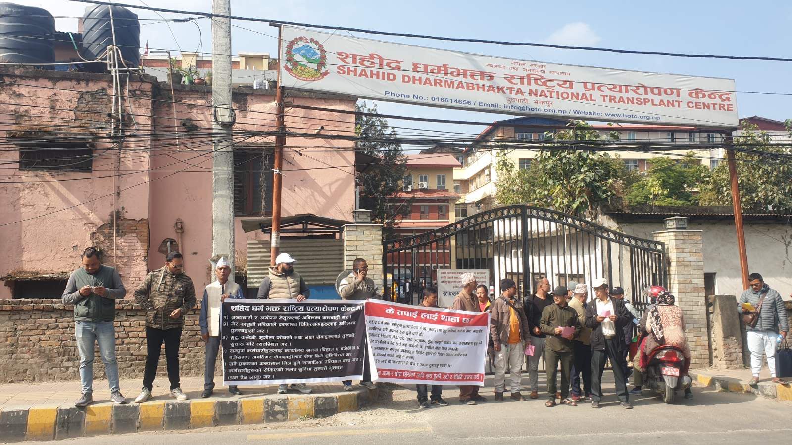 काठमाडौं । भक्तपुरको सहिद धर्मभक्त राष्ट्रिय प्रत्यारोपण केन्द्रमा भइरहेको वेतिथिविरुद्ध स्थानीयवासीले बिहीबार पनि प्रदर्शन जारी राखेका छन् । डेढ महिनादेखि भइरहेको आन्दोलन आइतबार पनि जारी छ । भक्तपुर नागरिक सरोकार समाज सेवा सुचारु संघर्ष समितिको अगुवाइमा जारी आन्दोलनमा अस्पतालभित्र भइरहेको अनियमितता र बेथिति तत्काल अन्त्य गर्न माग गरिएको छ । अस्पतालभित्र भइरहेको अनियमितता र बेथिति तत्काल अन्त्य गर्नुपर्ने, केन्द्रमा मुटु, कलेजो, मिर्गौला, फोक्सो तथा नसा सेवा तत्काल सुचारु गर्नुपर्ने, बिहान ९ बजेदेखि ४ बजेसम्म सेवा दिने वातावरण बनाउनुपर्ने, अस्पतालभित्र हुने सबै प्रकारका सामाजिक उत्पीडन अन्त्य हुनुपर्ने, कर्मचारीको रोकिएको तबभत्ता श्रम ऐनअनुसार भुक्तानी हुनुपर्ने र केन्द्रको नेतृत्वलाई कारबाही गर्नुपर्ने उनीहरूको माग छ । स्वास्थ्यमन्त्री प्रदीप पौडेल नै प्रत्यारोपण केन्द्रभित्र भइरहेका वेतिथिहरुको संरक्षणमा लागिपरेको उनीहरुको आरोप छ । प्रदर्शनमा उनीहरूले स्वास्थ्यमन्त्री पौडेलको चर्को विरोध गरेका छन् । मन्त्रीलाई भेटेर पटकपटक ज्ञापन पत्र बुझाए पनि मन्त्रीले नै भ्रष्टहरूलाई संरक्षण गरिरहेको बताए । केन्द्रमा रहेका बेथितिहरूका विषयमा मन्त्री पौडेललाई पटकपटक जानकारी गराए पनि विवादमा मुछिएका अस्पतालका कार्यकारी निर्देशक डा.पुकारचन्द्र श्रेष्ठलाई संरक्षण गरिएकोमा स्थानीय अगुवा राजेन्द्र पुरीले आपत्ति प्रकट गरे । अस्पतालको सेवा सुविधा रोक्ने, आफूखुसी डाक्टरहरू बर्खास्त गर्ने साथै अवैधानिकरूपमा मानव अंग प्रत्यारोपण गर्नेलाई मन्त्रीले संरक्षण गरेकोमा आफूहरू अचम्मित परेको उनले बताए । डा.श्रेष्ठलाई वर्खास्त नगरेसम्म आन्दोलन जारी राख्ने पुरीले बताए ।