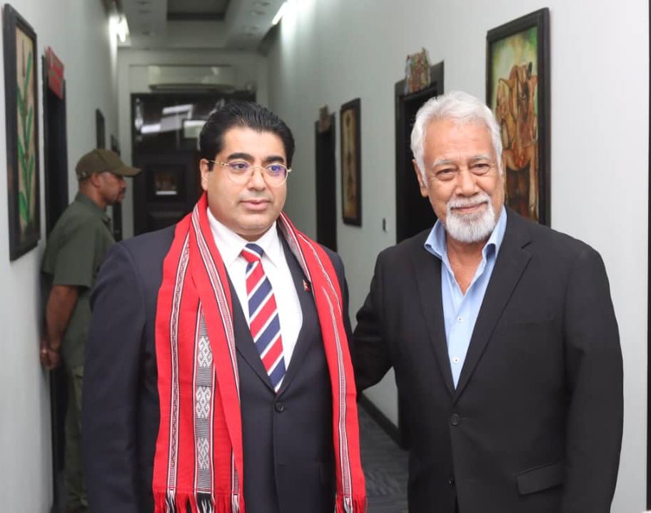 काठमाडौ । प्रतिनिधि सभाका सदस्य एवम् पूर्वमन्त्री एकनाथ ढकालले मित्र राष्ट्र प्रजातान्त्रिक गणतन्त्र इस्ट टिमोरका प्रधानमन्त्री क्षानना गुस्माओसँग शिष्टाचार भेट गरेका छन् । इस्ट टिमोरको प्रधानमन्त्री कार्यालयमा भएको भेटमा द्विपक्षीय हित र मित्रता अभिबृद्धि गर्ने बारे छलफल भएको ढकालको सचिबालयले जनाएको छ । सांसद ढकालले नेपालका प्रधानमन्त्री केपी शर्मा ओलीको तर्फबाट प्रधानमन्त्री गुस्माओलाई शुभकामना दिँदै उपयुक्त समयमा नेपालको मैत्रीपूर्ण भ्रमणको लागि समेत आग्रह गरेका छन् । प्रधानमन्त्री गुस्माओले नेपालसँगको मैत्रीपूर्ण सम्बन्धलाई थप उचाइमा पु¥याउने बताएका छन् । भेटमा आपसी सम्बन्ध तथा क्षेत्रीय स्तरमा शान्ति र सहकार्यको विस्तार गर्ने विषयमा पनि छलफल भएको थियो । प्रधानमन्त्री गुस्माओले सांसद ढकाललाई बिशेष अभिनन्दन समेत गरेका थिए । साथै सांसद ढकालले इस्ट टिमोरका पूर्व प्रधानमन्त्री मारी अल्कातिरी, निर्बाचन आयोगका अध्यक्ष डा. होसे ए दा कोस्टा बेलो पेरेइरा तथा इस्ट टिमोरका कार्डिनल विर्गीलियो डो कार्मो दा सिलवालगायत विशिष्ट व्यक्तित्वहरुसँग पनि शिष्टाचार भेट गरेका छन् । पूर्वमन्त्री समेत रहेका ढकाल इस्ट टिमोरको ३ दिने मैत्रीपूर्ण भ्रमणमा छन् । ढकाल प्रतिनिधिसभाको अन्तर्राष्ट्रिय सम्बन्ध तथा पर्यटन समिति सदस्य हुन् । नेपाल र इस्ट टिमोरबीच सन् २०२२ मा कुटनैतिक सम्बन्ध स्थापना भएको हो ।