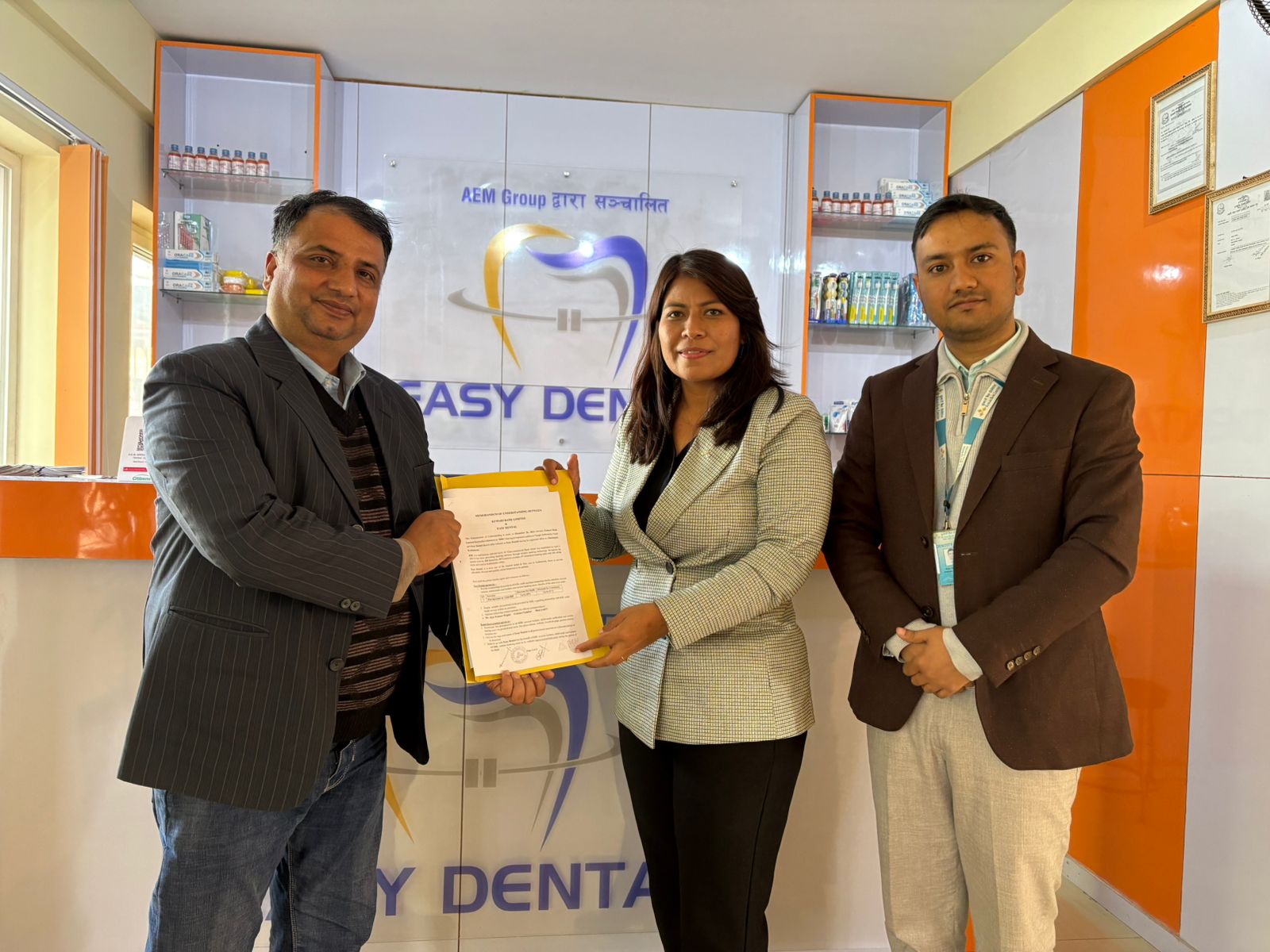 काठमाडौं । इजी डेन्टल र कुमारी बैंक लिमिटेडबीच नयाँ सम्झौता भएको छ । जसमा कुमारी बैंकका ग्राहकहरूलाई इजी डेन्टलमा विशेष छुट प्रदान गरिने छ । सम्झौताअनुसार, कुमारी बैंकका ग्राहकहरूले इजी डेन्टलमा ओपीडी दर्ता शुल्क, डाक्टर परामर्श शुल्क र आजीवन सदस्यता शुल्कमा शतप्रतिशत छुट पाउनेछन् । साथै, अन्य सेवा शुल्कहरूमा १५ प्रतिशत छुट पनि उपलब्ध हुनेछ । सम्झौतापत्रमा कुमारी बैंक लिमिटेडका बौद्ध शाखाका म्यानेजर अनुपमा श्रेष्ठ र इजी डेन्टलका निर्देशक अजय कुमार रेग्मीले हस्ताक्षर गरेका छन् । कुमारी बैंकले यस सुविधाबाट आफ्ना ग्राहकलाई उच्चतम गुणस्तरीय दन्त उपचार सेवा उपलब्ध गराउन विश्वास व्यक्त गरेको छ भने इजी डेन्टलले पनि कुमारी बैंकका ग्राहकलाई सहुलियत दरमा सेवा प्रदान गर्ने प्रतिबद्धता जनाउँदै आएको छ । इजी डेन्टल, काठमाडौँ महानगरपालिका वडा नम्बर ६, चाबहिल स्थित महांकाल खानेपानी संस्थान अगाडि अवस्थित छ । यहाँ बिरामीहरूको लागि आधुनिक उपचार कक्षहरू, नवीनतम उपचार प्रविधि, गुणस्तरीय स्टेरिलाइजेसन प्रोटोकलहरू, आरामदायक प्रतीक्षा क्षेत्रहरू, र लिफ्ट तथा पार्किङ सुविधाको व्यवस्था गरिएको छ । इजी डेन्टलले ३० वर्षको अनुभवसहित उच्चतम स्तरका दन्त उपचार सेवा प्रदान गर्दै आएको छ । कुमारी बैंक लिमिटेडले विगत २३ वर्षदेखि निरन्तर बैंकिङ सेवा दिँदै आएको छ । यसले देशभरका ३०२ शाखा सञ्जाल, ३१५ एटीएम, ५० एक्सटेन्सन काउन्टर र ५७ शाखा रहित बैंकिङ इकाईहरूमार्फत अत्याधुनिक तथा प्रभावकारी सेवाहरू प्रदान गर्दै आएको छ ।