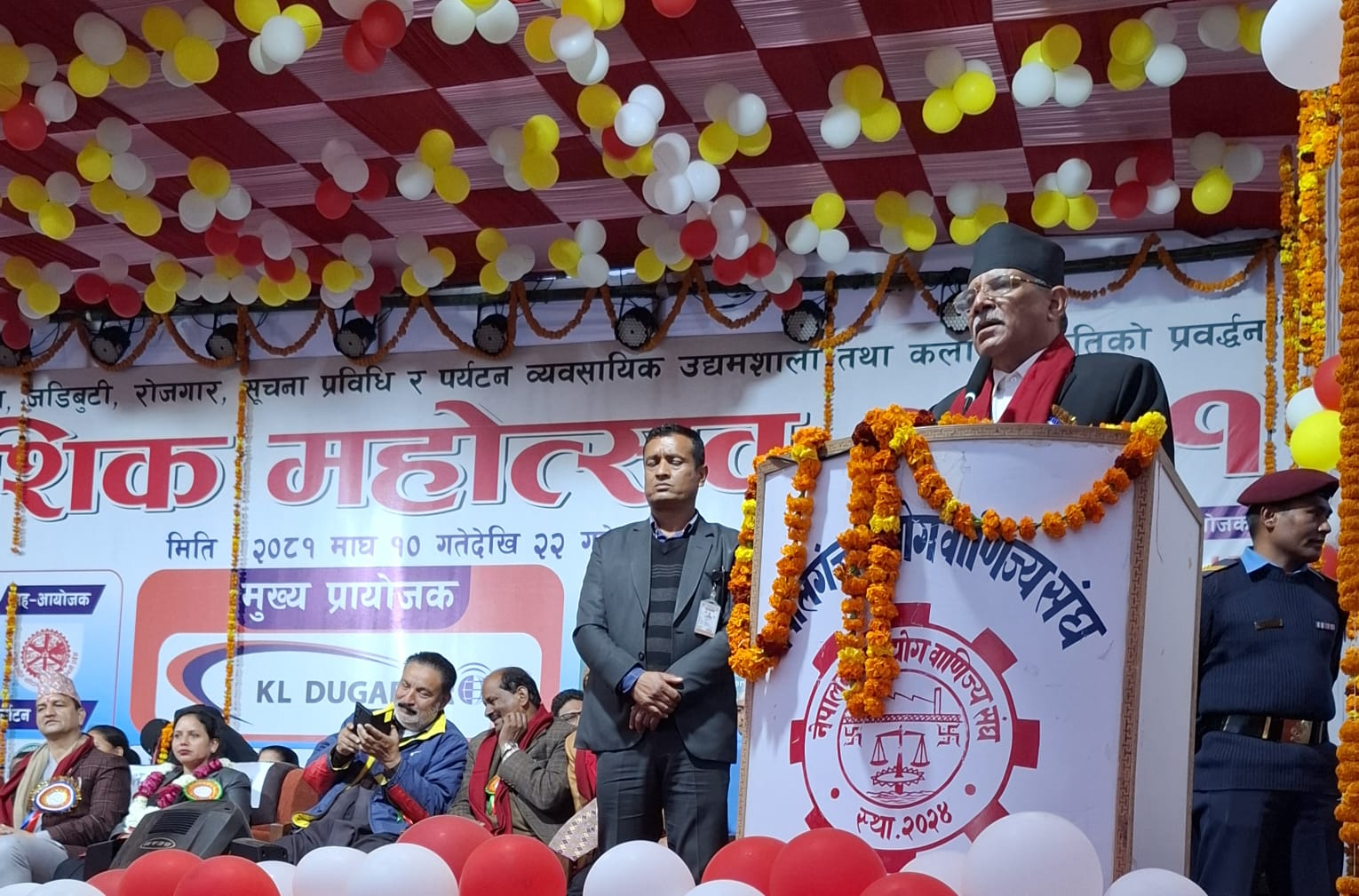 नेपालगन्ज । नेकपा माओवादी केन्द्रका अध्यक्ष पुष्पकमल दाहालले सबैले इमान्दारितापूर्वक मेहनत गरेमा नेपाललाई चाँडै आर्थिक रुपमा गतिशिल बनाउन सकिने बताएका छन् । नेपालगन्ज उद्योग वाणिज्य सङ्घको आयोजनामा सुरु भएको प्रादेशिक महोत्सव उद्घाटन गर्दै उनले यस्तो धारणा राखेका हुन् । नेपालमा केही पनि भएन, राजनीतिक परिवर्तनले आर्थिक क्षेत्रमा केही रुपान्तरण ल्याएन भन्ने भाष्य सही नभएको उल्लेख गर्दै अध्यक्ष प्रचण्डले गर्न संभव छ भन्ने सकारात्मक सोचसहित सबै मेहनतका साथ अघि बढ्ने हो भने नेपाललाई राजनीतिक र आर्थिक रुपमा गतिशिल बनाउन सकिने बताए । त्यस्तै आफूले प्रधानमन्त्रीको रुपमा चीन भ्रमण गर्दा एकैसाथ आठवटा नाका सञ्चालन गर्ने सहमति गरेको जानकारी दिँदै संयुक्त राष्ट्रसङ्घको महासभा, कोप २८ लगायतका अन्तर्राष्ट्रिय मञ्चमा गरिएका पहलबाट नेपालको आर्थिक कुटनीतिमा दीर्घकालीन महत्वका काम थालनी गरिएको बताए । नेपालगन्ज क्षेत्रको विकासमा आफूले अभिभावकत्व लिँदै आएको उल्लेख गर्दै अध्यक्ष प्रचण्डले अहिले महोत्सव भइरहेको स्थान रहेको दश बिघा जमिन उद्योग वाणिज्यलाई ५० वर्ष लिजमा मन्त्रिपरिषद् बैठकबाट निर्णय गराएको भए पनि अर्को सरकारले खोसेकोमा दुःख व्यक्त गरे । उनले यस क्षेत्रको आर्थिक विकासमा योगदान पुगोस भनेर नेपालगन्ज–गुलरिया सडक लगायतका विभिन्न परियोजना अघि बढाउन आफूले पहल गरेको उल्लेख गर्दै प्रादेशिक संरचनाले बाँके बर्दियालाई समस्या भएको भन्ने गुनासोप्रति ध्यानाकर्षण भएको बताए ।