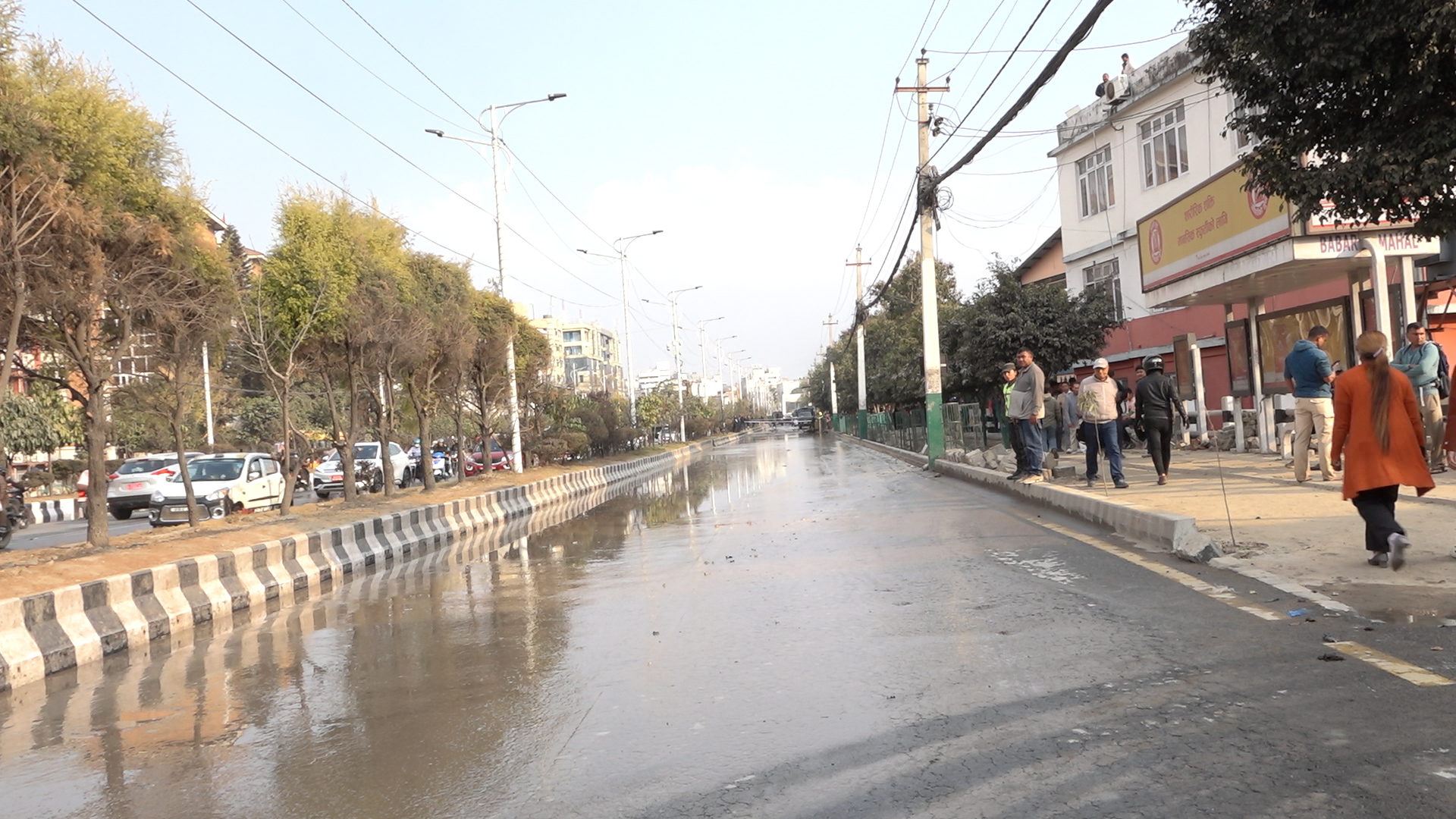 काठमाडौं । नेपाल विद्युत् प्राधिकरणको भूमिगत लाइन विस्तारका क्रममा बुधबार मेलम्ची खानेपानीको पाइपमा क्षति पुग्दा बबरमहल क्षेत्र जलमग्न भएको थियो । करिब चार घण्टासम्म मेलम्चीको खानेपानीको पाइप फुट्दा करिब ३० लाख लिटर पानी सडकमा बगेको छ । काठमाडौं उपत्यका खानेपानी लिमिटेड (केयुकेएल) का अनुसार करिब चार घण्टा पाइपबाट लगातार पानी बाहिर निस्केपछि बबरमहलको सडक, सरकारी कार्यालय र निजी घरहरु जगलमग्न भएको थियो । मेलम्चीबाट अहिले काठमाडौं उपत्यकामा दैनिक १७ करोड लिटर पानी ल्याइएको छ । केयुकेएलका प्रमुख कार्यकारी अधिकृत (सिइओ) अशोक पौडेलका अनुसार मेलम्चीबाट ल्याइएको पानी सुन्दीजलस्थित प्रशोधन केन्द्रबाट थोक वितरण प्रणालीमा पठाइएको ७५ किमि पाइप लाइनमा रहेको सवै पानी बबरमहल क्षेत्रमा बगेको थियो । करिव २४ देखि ३० लाख लिटर पानी खेर गएको पौडेलले जानकारी दिए । उनका अनुसार बिहीबार बेलुकासम्म क्षतिग्रस्त पाइप मर्मत गरेर पानी वितरण गर्ने तयारी गरिएको छ । प्राधिकरणले ठेक्कामार्फत काम गर्ने क्रममा तार विछ्याउने जमिन खन्ने क्रममा मेशिनले पाइप भेटेपछि पानी बाहिर निस्केको थियो । ग्रील गर्ने क्रममा २० इन्चको पाइपमा मेशिन अड्केको थियो । पानीले जिल्ला अदालत काठमाडौं अगाडि सडक र वन परिसरभित्र रहेका सरकारी कार्यालयहरूसमेत डुबानमा परेका थिए ।