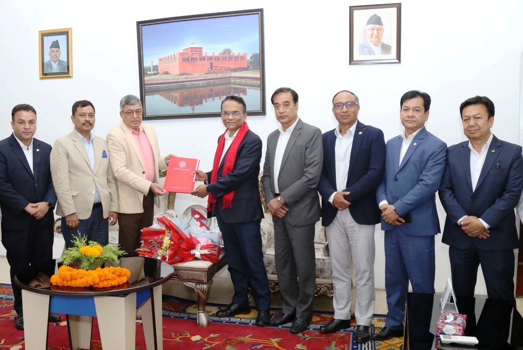 काठमाडौं । नेपाल चेम्बर अफ कमर्सले नवनियुक्त गभर्नर डा. विश्वनाथ पौडेललाई सफल कार्यकालकका लागि बधाई एवं शुभकामना व्यक्त गरेको छ । चेम्बरका कार्यबाहक अध्यक्ष दिपक कुमार मल्होत्रा सहितको पदाधिकारी टोलीले बालुवाटारस्थित नेपाल राष्ट्र बैंकको कार्यालयमा गएर डा. पौडेललाई बधाई एवं शुभकामना दिएको हो । चेम्बरद्वारा जारी विज्ञप्तिमा भनिएको छ, ‘वित्तीय, तथा आर्थिक क्षेत्रमा ज्ञाता एवं अनुभवी व्यक्तित्वका रुपमा यहाँले मुलुकको आर्थिक नीति निर्माण, वित्तीय सुशासन प्रवद्र्धनमा पुर्याउनु भएको योगदान उल्लेखनीय रहेको छ । राष्ट्र बैंकको गभर्नर पदमा तपाईंको नियुक्ती वित्तीय क्षेत्रमा दीर्घकालीन सुधार र स्थायित्व कायम गर्नेतर्फको एक महत्वपूर्ण कदमका रुपमा हामीले लिएका छौं । ’ मुलुकको समग्र आर्थिक विकास, मुद्रास्फीति नियन्त्रण, विदेशी मुद्रा सञ्चिति सुदृढीकरण, वित्तीय पहुँचको विस्तार तथा वित्तीय समावेशीताजस्ता राष्ट्रिय प्राथमिकता भएका विषयमा रणनीतिक योजना सहित काम गर्न समेत चेम्बरले नवनियुक्त गभर्नर डा. पौडेललाई सुझाव दिएको छ । चेम्बरका कार्यबाहक अध्यक्ष मल्होत्राले मुलुकको आर्थिक र वित्तीय प्रणालीलाई चलायमान बनाउन नवनियुक्त गभर्नर डा. पौडेलको भूमिका महत्वपुर्ण हुने बताए । उनले भने, ‘बजेट र मौद्रिक नीतिको प्रभावकारी समन्वयमार्फत अर्थतन्त्रलाई चलायमान बनाउन राष्ट्र बैंकको भूमिका अझ महत्वपूर्ण हुने विश्वास हामीले लिएका छौं ।’ अर्थतन्त्र चलायमान गराउने चुनौती कायमै रहेको सन्र्दभमा आगामी बजेट र मौद्रिक नीतिबीचको तालमेलमार्फत अर्थतन्त्रलाई निकासा दिनुपर्ने मल्होत्राले बताए । राष्ट्र बैंकले डिजिटल वित्तीय प्रणालीको प्रवद्र्धन, सूक्ष्म, साना तथा मझौला उद्यमहरुको वित्तीय पहुँचमा सुधार, तथा समावेशी वित्तीय नीतिको विकासमा अग्रगामी भूमिका निर्वाह गर्ने अपेक्षा रहेको चेम्बरले उल्लेख गरेको छ । नेपाल राष्ट्र बैंकको भूमिकालाई सुदृढीकरण गरी समन्वयकारी भूमिकामा केन्द्रिकृत गरिनुपर्ने कार्यबाहक अध्यक्ष मल्होत्राले बताए । करिव चार वर्षदेखि केन्द्रीय बैंकको संकुचित नीतिहरुका कारण लामो समय देखिको विद्यमान आर्थिक शिथिलताका कारण निजी क्षेत्रले ठूलो क्षति वेहोर्नुपरेको भन्दै चेम्बरले उद्यमी व्यवसायीहरुमा आत्मविश्वास वृद्धि गरेर संकुचित कर्जा प्रवाहलाई वृद्धि गराउनुपर्ने जोड दिएको छ । चालु पुँजी कर्जा निर्देशिकालाई खारेज गर्न समेत चेम्बरले माग गरेको छ ।