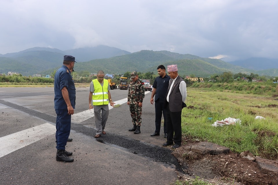 सुर्खेत । रनवेमा खाल्डो परेपछि मंगलबार देखि बन्द सुर्खेत विमानस्थल शनिबारदेखि नियमित सुचारु हुने भएको छ । विमानस्थलको रनवेमा खाल्डो परेपछि मर्मतका लागि विमान्स्थल चार दिनदेखि बन्द गरिएको थियो । शुक्रबार मर्मतको काम सकिए पछि शनिबारदेखि नियमित जहाड उडानका लागि विमानस्थल सुचारु गरिने सुर्खेत विमानस्थलका प्रमुख हिराजन काफ्लेले बताए । विमानस्थलको उत्तरतर्फको भागको रनवेमा पानीको मुल फुटेपछि विमानस्थल बन्द गरेर रनवे मर्मत थालिएको थियो । ‘पहिले देखिएको खाल्डो मर्मत गर्दा रनवेमै अर्को ठाउँमा पानीको मुल फुटेपछि थप दुई दिन विमानस्थल बन्द गर्नु पर्यो’ विमानस्थल प्रमूख काफ्लेले भने, ‘रनवे मर्मत सकिएसंगै शनिबारबार जहाज नियमित गरिने छ ।’ रनवेमा पानी निस्किएर भासिन थालेपछि भौगर्भिक अनुसन्धान गर्ने कार्यपनि अघि बढाइने उनले बताए । मंगलबारदेखि विमानस्थल बन्द हुँदा कर्णालीका नागरिक हवाई यात्रा प्रभावित भएको थियो । कर्णाली प्रदेशका मुख्यमन्त्री यामलाल कँडेलले विमानस्थलको निरिक्षण गरेका थिए । उनले विमानस्थलमा पानी निस्कनुको कारण खोज्न प्राविधिकहरुलाई भनेको बताए । ‘विमानस्थलमुनी पुरै पानी छ भन्ने आशंका प्राविधिकहरुको छ’ उनले भने, ‘यसका लागि आवश्यक अनुसन्धान गर्नु पर्ने जरुरी भएको छ ।’