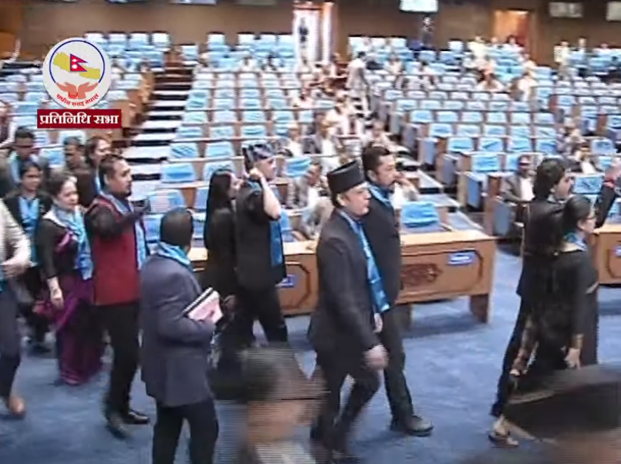 काठमाडौं । प्रतिनिधि सभाको बैठकमा राष्ट्रिय स्वतन्त्र पार्टी र राष्ट्रिय प्रजातन्त्र पार्टीले आफ्नो विरोध कायमै राख्दै बैठकबाट बाहिर निस्किएका छन् । शुक्रबार बैठक सुरु हुने वित्तिकै रास्वपा र राप्रपाले विरोध जनाएका थिए तर सभामुखले विरोधका बाबजुत बैठक अगाडि बढाएपनि उनीहरु बाहिर निस्किएका हुन् । भिजिट भिसा प्रकरणमा गृहमन्त्री रमेश लेखकको राजीनामाको माग र छानबिनका लागि संसदीय समिति वा न्यायिक आयोग गठन हुनुपर्ने माग गर्दै उनीहरूले लगातार विरोध गर्दै आएका छन् । रास्वपा र राप्रपाले जेठ १३ गतेदेखि प्रतिनिधिसभाको बैठक अवरुद्ध गर्दै आएका छन् । यद्यपि सभामुख घिमिरेले विरोधका बीच बैठकलाई अगाडि बढाइरहेका छन् ।