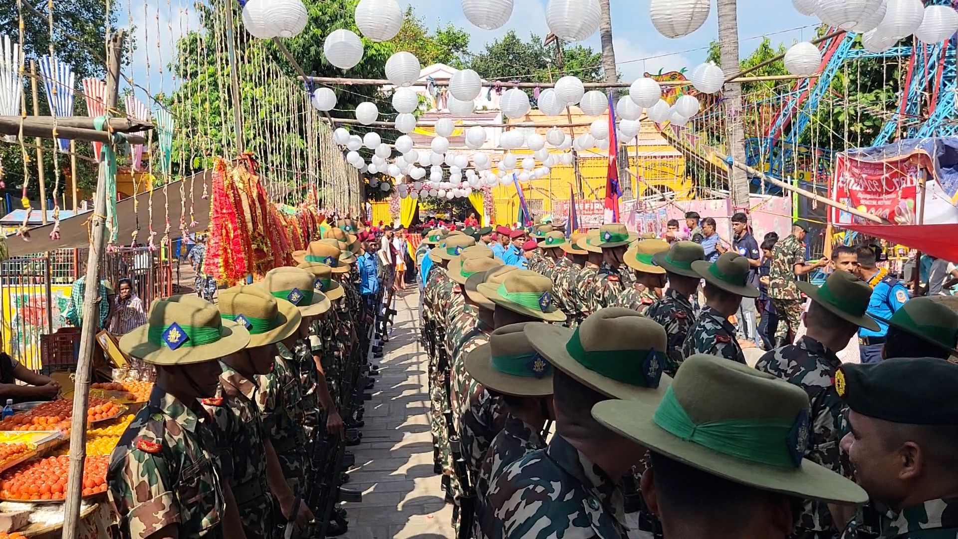 जनकपुर । जनकपुरधामसहित मिथिलाञ्चलका दुर्गा मन्दिरमा देवी दुर्गाको नवनिर्मित प्रतिमामा आज आँखा उघार्ने विधि सम्पन्न भएको छ । दशैंको बेला दुर्गा मन्दिरमा प्रतिमाको स्थापना गरिँदा आँखा बनाइएको हुँदैन । आँखा सप्तमीका दिन पूजा गरेपछि मात्र राखिन्छ । यो विधिका लागि षष्ठीका दिन (हिजो) बेल निमन्त्रण गरिएको थियो । सप्तमीका दिन बेल जोडीलाई स–सम्मान ल्याउन पालकी बोकेर गाजाबाजासहित सोही स्थानमा मुख्य पूजारीसहित श्रद्धालुभक्तजाहरु पुग्ने गर्छन । शिवपार्वती भनी विश्वास गरिएका दुवै बेललाई निमन्त्रण दिइएको हतियारबाट एकै पटकमा काटिन्छ र त्यसलाई पालकीमा राखी पूजा स्थलतिर लगिन्छ । पछि दुवैलाई प्रतिमा भएको स्थानमा राखी सोही बेलको पातको डाँठबाट दुर्गाको आँखा उघार्ने गरिन्छ, जसलाई पूर्ण आकारको दुर्गा जन्म भएको मानिन्छ । बेलतोडी भएसंगै राजदेवी मातालाई खोँईच भर्ने महिलाहरुले आज र भोली खोँईच भर्ने गर्छन् ।