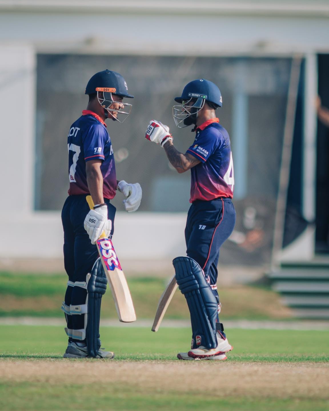 काठमाडौं । दुवईमा जारी आइसिसी क्रिकेट विश्व कप लिग टु अन्तर्गतको त्रिकोणात्मक सिरिजमा नेपालले अमेरिकालाई २७२ रनको लक्ष्य दिएको छ । शनिबार भएको खेलमा टस हारेर पहिले ब्याटिङ रोजेको नेपालले ४९.१ ओभरमा सबै विकेट गुमाउँदै २७१ रन जोडेको हो । नेपालका लागि अलराउण्डर दीपेन्द्रसिंह ऐरीले ७५ रनको अर्धशतकीय इनिङ खेले । ६७ बलमा उनले २ चौका र ३ छक्का प्रहार गरे । ऐरीले ४३ बलमा अर्धशतक पूरा गरेका थिए । त्यस्तै, उत्कृष्ट फिनिसिङ गर्ने क्रममा आठौं नम्बरमा आएका करण केसीले ३१ रनमै ४९ रन बनाए । उनी अर्धशतक बनाउनबाट एक रनले मात्रै चुके । सो क्रममा उनले २ चौका र ३ छक्का प्रहार गरेका थिए । त्यस्तै कुशल भुर्तेलले ४७, भीम सार्कीले ४३, कप्तान रोहित पौडेलले ३६ रन बनाए । अमेरिकाका लागि हर्मीत सिंहले १० ओभरमा ३३ रन दिएर ३ विकेट लिए । सौरभ नेत्रभल्कर र नोशथुस केन्जिगेले २–२ विकेट लिए भने जसदिप सिंह र शुभम रन्जानेले १–१ विकेट लिए । जारी शृंखलामा नेपालले खेलेका दुवै खेलमा हार बेहोरेको छ । पहिलो खेलमा नेपालले अमेरिकासँग १०६ रनको लज्जास्पद हार बेहोरेको थियो । त्यस्तै दोस्रो खेलमा बिहीबार यूएईसँग ५ विकेटले पराजित भएको थियो । नेपाललाई अब बाँकी दुवै खेल जित्नुपर्ने दबाब छ ।