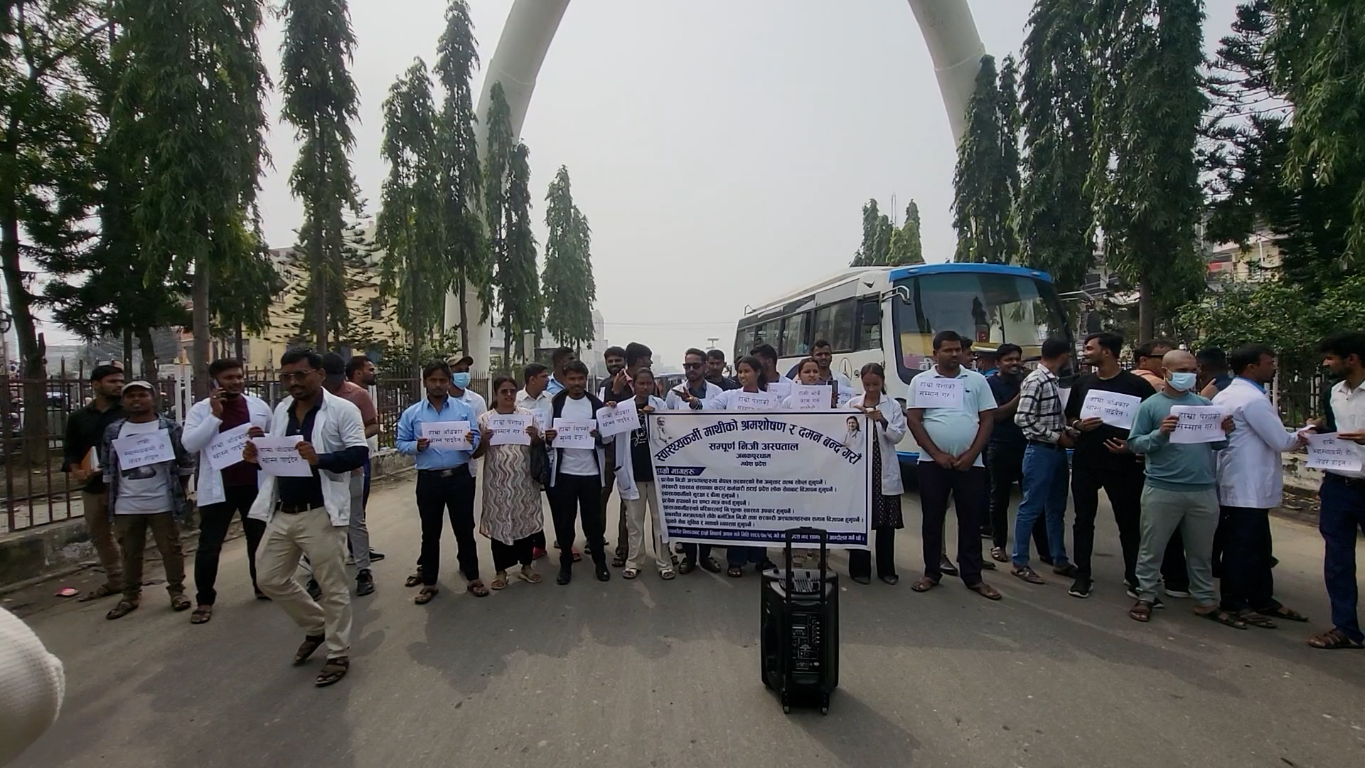 जनकपुर । जनकपुरधामसहित धनुषा जिल्लाभर निजी अस्पतालमा कार्यरत स्वास्थ्यकर्मीहरुले आज पनि जनकपुरधाममा प्रदर्शन गरेका छन् । ८ सुत्रीय मागसहित आन्दोलनका पूर्व घोषित कार्यक्रम अनुसार उनीहरुले आज जनकपुरधामको प्रवेशस्थल रामानन्द चोकमा सडक अवरुद्ध गर्नुका साथै निजी अस्पतालहरु अगाडि नाराबाजी गरेका छन् । उनीहरुले हाम्रो रगत चुस्न पाइँदैन, हामी रोगी हौं सरकार उपचार गर, हाम्रो अधिकार खोस्न पाईंदैन, हाम्रो पेसाको सम्मान गर, हामी भोकै काम गर्न सक्दैनौ, वी वान्ट जस्टिस, १२ हजारले घर चल्दैन लगायतका नारा लगाएका थिए । उनीहरुले नेपाल सरकारको ऐनअनुसार तलब स्केल लागू गर्नुपर्ने, सरकारी स्वास्थ्य संस्थाका करारकर्मीलाई हटाई लोक सेवा आयोगबाट विज्ञापन गर्नुपर्ने, स्वास्थ्यकर्मीको बीमा र सुरक्षाको व्यवस्था गर्नुपर्ने, हप्तामा अधिकतम ४२ घण्टा मात्र कामको सीमा तोक्नुपर्ने माग राखेका छन् । मन्त्रालयबाट पटक–पटक सूचना जारी भए पनि निजी अस्पतालहरूले कार्यान्वयनमा नल्याएकाले स्वास्थ्यकर्मीहरूको मनोबलमा गम्भीर असर परेको र बाध्य भएर आन्दोलनमा ओर्लिनु परेको उनीहरुको भनाई छ ।
