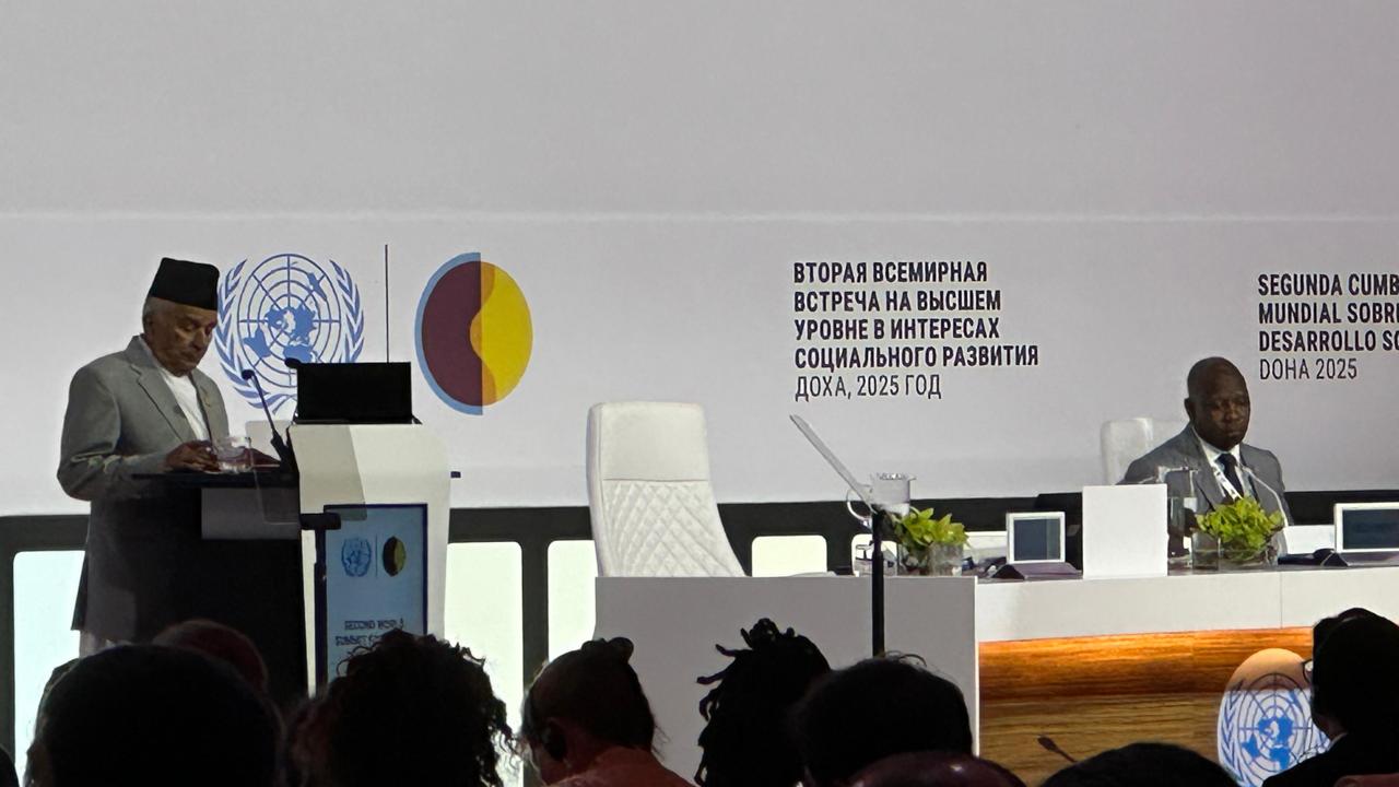 कतार (दोहा ) । राष्ट्रपति रामचन्द्र पौडेलले विकासोन्मुख देशहरूका लागि स्रोतका साथै प्राविधिक ज्ञान तथा सीप आवश्यक रहेको र त्यसका लागि एकता, न्याय र साझा जिम्मेवारीमा आधारित उन्नतस्तरको समर्थन आवश्यक रहेको बताएका छन् । कतारको दोहामा शुरु भएको दोस्रो विश्व सामाजिक विकास शिखर सम्मेलनलाई मङ्गलबार यहाँ सम्बोधन गर्दै उनले भने, “विशेष गरी विकासोन्मुख देशहरूका लागि स्रोतका साथै प्राविधिक ज्ञान र सीप पनि आवश्यक छ, हामीलाई एकता, न्याय र साझा जिम्मेवारीमा आधारित उन्नतस्तरको समर्थन आवश्यक छ, न्यायपूर्ण विश्व व्यापार प्रणाली, विकास सहायताका प्रतिबद्धताहरूको कार्यान्वयन, जलवायु वित्त, प्रविधि हस्तान्तरण र लगानीको पनि आवश्यकता छ ।” उनले गुणस्तरीय शिक्षा, स्वास्थ्य सेवा र सामाजिक सुरक्षामा सबैको पहुँच सुनिश्चित गर्नु आफूहरुको प्राथमिकता भएको बताएका छन् । “हाम्रो विकास प्रयासको केन्द्रबिन्दुमा समावेशी शासन र सीमान्तकृत समुदायहरू जस्तै — महिला, युवा, आदिवासी जनजाति, दलित, अपाङ्गता भएका व्यक्तिलगायतको सशक्तीकरण गर्नु रहेको छ । गुणस्तरीय शिक्षा, स्वास्थ्य सेवा र सामाजिक सुरक्षामा सबैको पहुँच सुनिश्चित गर्नु हाम्रो प्राथमिकता हो”, उनले भने । राष्ट्रपति पौडेलले समावेशिता, न्याय र सामाजिक सुरक्षालाई नेपालले सामाजिक विकासका आधार स्तम्भका रूपमा लिइएको पनि बताए। उनले नेपालको संविधानले कोपेनहेगन घोषणापत्रका प्रमुख सिद्धान्तहरूलाई आत्मसात् गरेको तथा आफूहरुले हरेक नागरिकले समान अधिकार, समान अवसर र सम्मानका साथ जीवनयापन गर्न पाउने समाजको परिकल्पना गरेको उल्लेख गर्दै राजनीतिक संकल्प र सामूहिक प्रयासका कारण नेपालले उल्लेखनीय उपलब्धिहरू हासिल गरेको बताए । सन् १९९५ देखि गरिबी आधा घटेको, दिगो विकासका लक्ष्यहरूको प्रगति विश्वको औसतभन्दा बढी रहेको र ९५ प्रतिशतभन्दा बढी नेपालीले स्वच्छ ऊर्जा प्रयोग गरेको उहाँको भनाई थियो । “शिक्षालगायत सबै क्षेत्रमा लैङ्गिक समानता बढेको छ, मातृ तथा बाल मृत्युदरमा उल्लेखनीय कमी आएको छ, नेपालमा हाल सञ्चालित करिब नब्बे सामाजिक सुरक्षा कार्यक्रमहरूले हाम्रा वृद्धवृद्धा, महिला, बालबालिका र अपाङ्गताभएका व्यक्तिहरूलाई सहयोग पुर्याउँदै आएका छन्, हाम्रो संविधानले महिला, दलित, आदिवासी जनजाति र अन्य सीमान्तकृत समूहहरूको प्रतिनिधित्व सुनिश्चित गरेको छ”, राष्ट्रपति पौडेलले भने । समवोधनका क्रममा राष्ट्रपति पैडेलले विश्वका कतिपय मुलुकमा सुशासनका पक्षमा युवा पुस्ताले ल्याएको उभारजस्तै हाम्रो मुलुकमा पनि गत भदौ २३ र २४ मा जेन्जीका नाममा प्रदर्शन भएको तर आफूहरूले संविधान र लोकतान्त्रिक प्रणाली जोगाउँदै मुलुकलाई सुरक