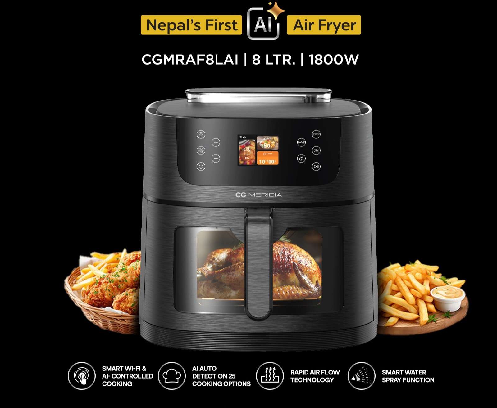 काठमाडौं । नेपालकै अग्रणी र भरोसायोग्य इलेक्ट्रोनिक्स ब्रान्ड सीजीले आफ्नो घरायसी उपकरण श्रेणी अन्तर्गत देशको पहिलो कृत्रिम बुद्धिमत्ता (एआइ) प्रविधियुक्त एयर फ्रायर सार्वजनिक गरेको छ । आधुनिक नेपाली भान्साको आवश्यकतालाई ध्यानमा राख्दै, कम्पनीले बजारमा ल्याएको (सीजी मेरिडिया स्मार्ट एयर फ्रायर) मोडेलले घरेलु पकाइ प्रविधिलाई नयाँ युगमा प्रवेश गराएको सीजीको दाबी छ । १८०० वाटको पावर र ८ लिटर क्षमतायुक्त यो एयर फ्रायर नेपालमै पहिलो पटक एआइ र इन्टरनेट प्रविधिको संयोजनमा तयार गरिएको हो । यसमा जडान गरिएको इन्टरनल क्यामेरा र स्मार्ट सेन्सरहरूले पकाइ प्रक्रिया सुरु हुनुअघि नै खानाको प्रकार र तौल पत्ता लगाउँछन् । प्रणालीले त्यस सूचनाको विश्लेषण गरी तापक्रम र पकाइ समय स्वतः समायोजन गर्छ, जसका कारण हरेक पटक उत्कृष्ट र सटीक परिणाम सुनिश्चित हुन्छ । यस उपकरणलाई सीजी स्मार्ट होम एप मार्फत स्मार्टफोनबाट नै नियन्त्रण गर्न सकिने सुविधा पनि उपलब्ध छ । प्रयोगकर्ताले मोबाइलबाट नै पकाइ मोड, तापक्रम र समय सेट गर्न सक्छन । जसले प्रयोगलाई झन् सहज र आधुनिक बनाएको छ । यस उपकरणमा २५ वटा स्वचालित मेनु सहितको स्मार्ट एआइ कुकिङ प्रणाली, समान रूपमा कुरकुरे र स्वादिष्ट परिणाम दिने पानी र तेल स्प्रे फङसन, ठूलो परिवारका लागि उपयुक्त ८ लिटरको नन स्टिक बास्केट र बहुउपयोगी पकाइ विकल्पहरू जस्तै फ्राइ, ग्रिल, रोस्ट र बेक गर्ने सुविधा समावेश गरिएको छ । यसका अतिरिक्त, ८० डिग्री सेल्सीयस देखि २०० डिग्री सेल्सीयस सम्मको तापक्रम नियन्त्रण, तेल बिना नै कुरकुरे स्वाद दिने प्रविधि र पकाइको अवस्थालाई सहजै नियाल्न सकिने प्रविधि पनि यसमा उपलब्ध छन् । कम्पनीका प्रतिनिधिहरूका अनुसार, सीजीले सदैव प्रविधि, नवीनता र गुणस्तरलाई प्राथमिकता दिँदै आएको छ । बजारको आवश्यकता र उपभोक्ताको सुविधा अनुसार, सीजीले नेपाली उपभोक्तालाई अत्याधुनिक र स्मार्ट कुकिङ अनुभव प्रदान गर्ने विश्वास कम्पनीले व्यक्त गरेको छ । यस उत्पादनले “कुक स्मार्ट, इट हेल्दी” को अवधारणालाई व्यवहारमा उतार्ने दाबी पनि गरिएको छ ।