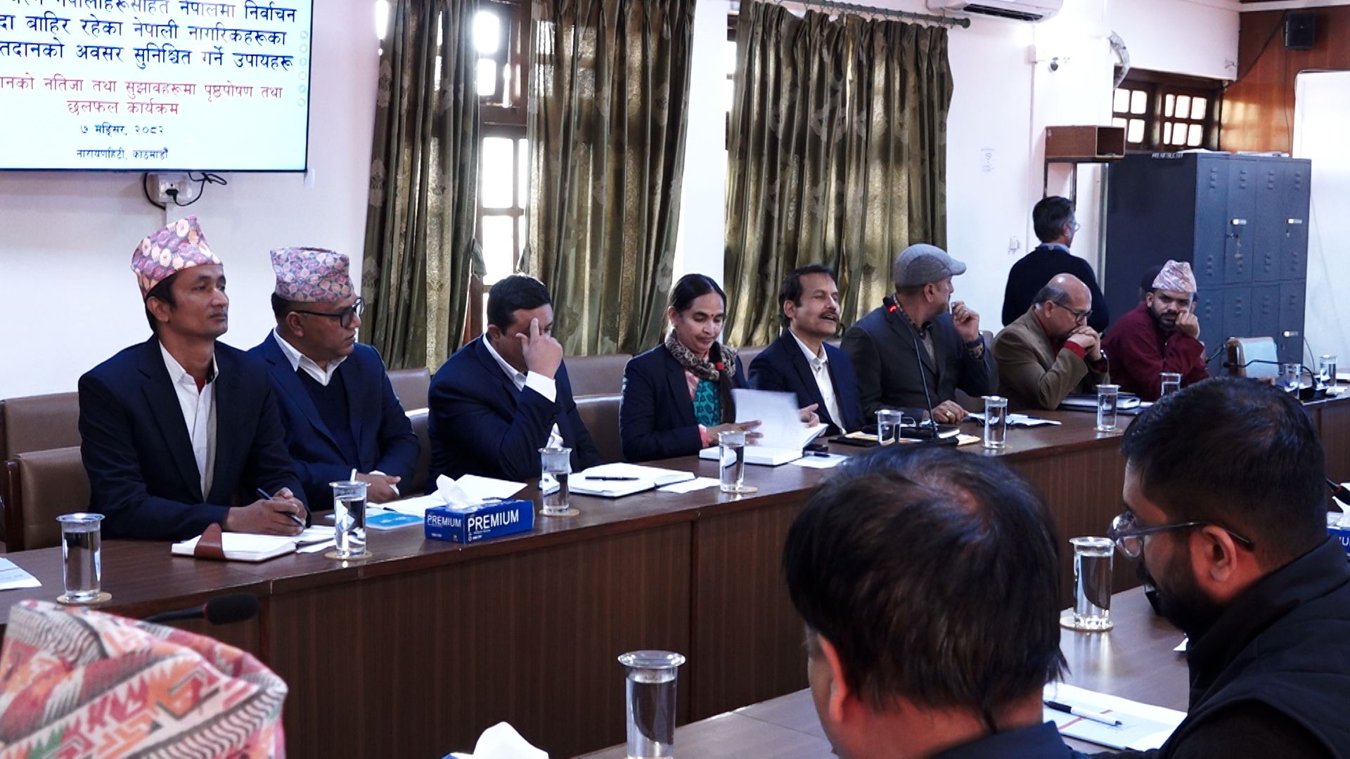 काठमाडौं । नीति अनुसन्धान प्रतिष्ठानले विदेशमा बस्ने नेपालीहरूसहित नेपालका निर्वाचन क्षेत्रभन्दा बाहिर रहेका नेपाली नागरिकहरूका लागि मतदानको अवसर सुनिश्चित गर्ने उपायहरूसहितको अध्ययन प्रतिवेदन सार्वजनिक गरेको छ । आइतबार एक समारोहबीच अध्ययनका नतिजा, निष्कर्ष र सुझावहरूसहितको प्रतिवेदन सार्वजनिक गरेको हो । प्रतिष्ठानले अन्तर्राष्ट्रिय अभ्यासहरूलाई सश्लेषण गर्दै संसारका देशहरूले अवलम्बन गरेका भौतिक उपस्थितिमा, हुलाकमार्फत, प्रतिनिधिद्वारा, डिजिटल अर्थात आई र मिश्रित मतदान विधि ल्याएको उल्लेख गर्दै देशको परिवेश र आवश्यक्ता अनुसार विधिहरू छनोट गर्नुपर्ने औंल्याएको हो । जसमध्ये डिजिटल मतदानको अभ्यास पछिल्लो समय बढ्दै गएको प्रतिष्ठानको निष्कर्ष छ । प्रतिस्ठानका कार्यकारी अध्यक्ष प्राडा लेखनाथ शर्माले पछिल्लो समय विश्वव्यापी रुपमा आइ भोटिङ बढी प्रयोगमा आइरहेको कुरा स्वाभाविक रहेको बताए । ‘मतदानको अधिकारका सबैलाई दिन आवश्यक छ । त्यसका लागि स्रोत, साधन, बुद्धि र विवेक प्रयोग गरी विश्वव्यापी अभ्यासलाई प्राथमिकतामा राख्नुपर्छ । हाम्रो अध्ययनले विश्वमा मतदान केन्द्रमा मतदाता आफैं उपस्थित भएर गरिने प्रत्यक्ष मतदान बढी प्रयोगमा आएको भएपनि पछिल्लो समय आइ भोटिङको प्रयोग बढ्दै गइरहेको छ,’ उनले भने । हाल सरकारले बनाएका नीति, निर्देशिका र कानुन मतदानका लागि वाधक रहेकाले त्यसमा सुधार गर्नुपर्ने बताए । उनले विदेशका सवालमा कूटनीतिक नियोगहरूको अवस्था, ति देशका कानुन र सुरक्षा व्यवस्था हेर्नुपर्ने, हुलाक सेवा प्रभावकारी हुनसक्ने अवस्थालाई पनि हेर्नुपर्ने औंल्याए । उनले मतदानको विधि मिश्रित नै हुनुपर्ने उनको भनाइ छ । आइ भोटिङ भर्खर प्रयोगमा आएकाले प्राथमिकता राखेर अघि बढ्नुपर्ने बताए । ‘आइ भोटिङलाई प्राथमिकता राखेर काम गर्नुपर्छ तर तत्कालका लागि मिश्रित प्रणाली अपनाउँदा ठिक हुन्छ । आइ भोटिङ विश्वसनीय छ र ९९ प्रतिशत सुरक्षित छ र सोही विधि अपनाएर अभ्यास स्थापित भएका देशहरूबाट सिक्नुपर्छ । त्यसका डेटा सेन्टरहरूको क्षमताको व्यवस्थापन गर्नुपर्छ,’ उनले भने । मतदानको अधिकार सबैले पाउनुपर्छ तर अभ्यास कति गर्ने भन्नेबारे यसपालीबाट नै काम सुरु गर्नुपर्ने उनको भनाइ थियो । अध्ययनको प्रारम्भिक निष्कर्षसहितको प्रतिवेदनबारे जानकारी दिंदै प्रतिष्ठानका वरिष्ठ अनुसन्धानकर्ता डा.दीपक कुमार खड्काले सरकारको कार्यादेश अनुसार प्रतिष्ठानले अशोज २१ गते सुरु गरेको अध्ययनका क्रममा सबैखाले विधिहरूमा अवसर र चुनौति रहे पनि धेरै देशहरूले आइ भोटिङमा गएको पाइएको सुनाए । ‘हामीले अभ्यासमा आएका पाँच विधिहरूको गहन अध्ययन गर्यौं । अन्तर्राष्ट्रिय