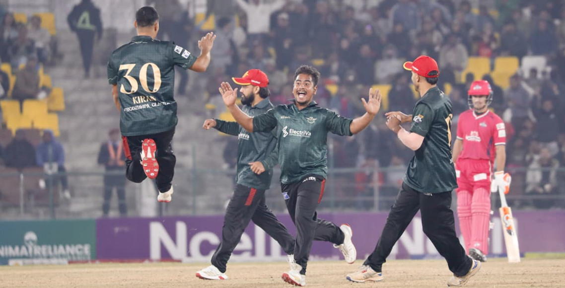 काठमाडौं । पोखरा एभेन्जर्सले नेपाल प्रिमियर लिग (एनपीएल) क्रिकेटमा पहिलो विजय हात पारेको छ । पोखराले बिहीबारको दोस्रो खेलमा च्याम्पियन जनकपुर बोल्ट्सलाई २५ रनले पराजित गर्यो । १ सय ५६ रनको विशाल लक्ष्य लिएर आएको जनकपुर त्रिवि क्रिकेट अन्तर्राष्ट्रिय रंगशाला कीर्तिपुरमा पुरा २० ओभर खेली ९ विकेट गुमाई १ सय ३० रनमात्र बनाउन सक्यो । गत वर्ष पहिलो संस्करणको योग्य विजेता बनेको जनकपुर पहिलो तीनै खेलमा पराजित भएको छ । बाँकी रहेको चारै खेलमा विजय हात पारे पनि जनकपुरलाई त्यो प्लेअफमा पुग्न पर्याप्त नबन्न सक्छ । पोखराले भने तेस्रो खेलमा आएर पहिलो विजय निकालेको हो । इनिङ्सको पहिलो बलमै पाकिस्तानी खेलाडी माज सदाकतले छक्का प्रहार गरे पनि विपिन खत्रीले सोही ओभरमा आसिफ शेखलाई शून्यमा स्टम्पआउट र शुभ कंसाकारलाई ४ रनमा बोल्ड गरी पोखरालाई सनसनीपूर्ण सुरुआत दिलाएका थिए । त्यसपछि भने जनकपुर माथि उठ्न सकेन । विपिनका ओपनिङ जोडी अर्का स्पिनर सुमित बर्माले इनिङ्सको चौथो ओभरमा यान निकोल लफ्टी इटन र सदाकतलाई आउट गरेपछि पोखराले खेल पूर्ण नियन्त्रणमा राखेको थियो । लफ्टी इटन २ र सदाकत २० रनमा आउट भए । सदाकतले १४ बल खेली १ चौका र २ छक्का प्रहार गरे । कप्तान अनिल साहले पुन निराश बनाए । उनले १ रनमात्र जोड्न सके । विपिनले मयन यादवलाई ४ रनमा आउट गरी उत्कृष्ट बलिङ गरे । विपिनले ४ ओभरमा १५ रनमात्र खर्चे । सञ्जय कृष्णमुर्थीले २३ रन बनाए । उनले २० बल खेली २ चौका र १ छक्का प्रहार गरे । रुपेश सिंह १२ बलमा ७ रन बनाई जिमी निसमको सिकार भए । वायन पार्नेलले ५० रन बनाए । उनी अन्तिम ओभरमा ‘रिटायर्ड आउट’ भए । ३६ वर्षे उनले ३८ बल खेली २ चौका र ४ छक्का प्रहार गरे । ललित राजवंशी १० रनमा अविजित रहे । विपिन बाहेक पोखराबाट सुमितले २ तथा कप्तान कुशल भुर्तेल र निसमले १–१ विकेट लिए । यसअघि टस जितेर ब्याटिङ गर्ने निर्णय पोखराले त्रिवि क्रिकेट अन्तर्राष्ट्रिय रंगशाला कीर्तिपुरमा निर्धारित २० ओभर खेली ६ विकेट गुमाई १ सय ५५ रन बनाएको हो । पोखराले अन्तिम ५ ओभरमा ६० रन बनाउदै राम्रो स्कोर बनाउन सफल भएको हो । एडम रोसिङटन र दिनेश खरेलले पहिलो विकेटमा ६१ रन जोडेर पोखरालाई राम्रो सुरुआत दिलाएका थिए । नवौँ ओभरमा कृष्णमुर्थीले रोसिङटनलाई आउट गरी यो साझेदारी तोडेका थिए । त्यसको अर्को बलमा देव्रेहाते स्पिनर कृष्णमुर्थीले पोखराका कप्तान कुशल भुर्तेललाई पहिलो बलमै बोल्ड गरे । रोसिङटनले १७ बल खेली ३ चौका प्रहार गरी २४ रन बनाए । अर्का ओपनर दिनेशले ३८ बल खेली २ चौका र ३ छक्कासहित ३८ रन बनाए । निसम १ रनमै आउट भए । बर्मा र तृतराज दासले पाँचौँ विकेटमा ७२ रनको साझेदारी गरी पोखराको स्थिति सुधारेका थिए । अभिषेक तिवारीको स्थान