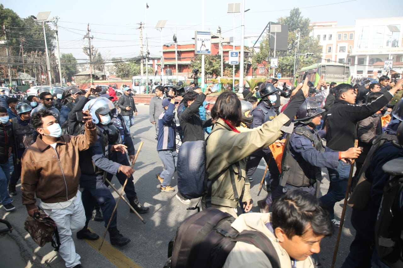 काठमाडौं । अखिल नेपाल राष्ट्रिय स्वतन्त्र विद्यार्थी युनियन(क्रान्तिकारी) ले जेनजीहरुको शान्तिपूर्ण विरोध प्रदर्शनमा प्रहरीद्वारा दमन र धरपकड भएको भन्दै निन्दा र भत्र्सना गरेको छ । सोमबार विज्ञप्ति जारी गर्दै संगठनले माइतीघर मण्डलामा विभिन्न जेनजी समूहको संयुक्त आयोजनामा गरिएको शान्तिपूर्ण विरोध प्रदर्शनमा प्रहरीद्वारा हस्तक्षेप, दमन र धरपकड भएको भन्दै निन्दा र भत्सर्ना गरेको हो । जेनजी आन्दोलनलाई अपहरण गरि बनेको सुशीला कार्की नेतृत्वको सरकार तीन महिना बढी भइसक्दा पनि कुनै सकारात्मक कामहरू गर्न नसकेको समेत संगठनको आरोप छ । विज्ञप्तिमा लेखिएको छ,‘अग्रगामी निकासका लागि आज माइतीघर मण्डलामा विभिन्न जेनजी समूहको संयुक्त आयोजनामा गरिएको शान्तिपूर्ण विरोध प्रदर्शनमा प्रहरीद्वारा गरिएको हस्तक्षेप, दमन र धरपकडको हाम्रो संगठन अखिल (क्रान्तिकारी) कडा निन्दा र घोर भत्सर्ना गर्दछ ।’ आन्दोलनको क्रममा गिरफ्तार सबैलाई यथाशीच राराम्मान रिहाइ गर्न जोडदार माग समेत संगठनले गरेको छ ।