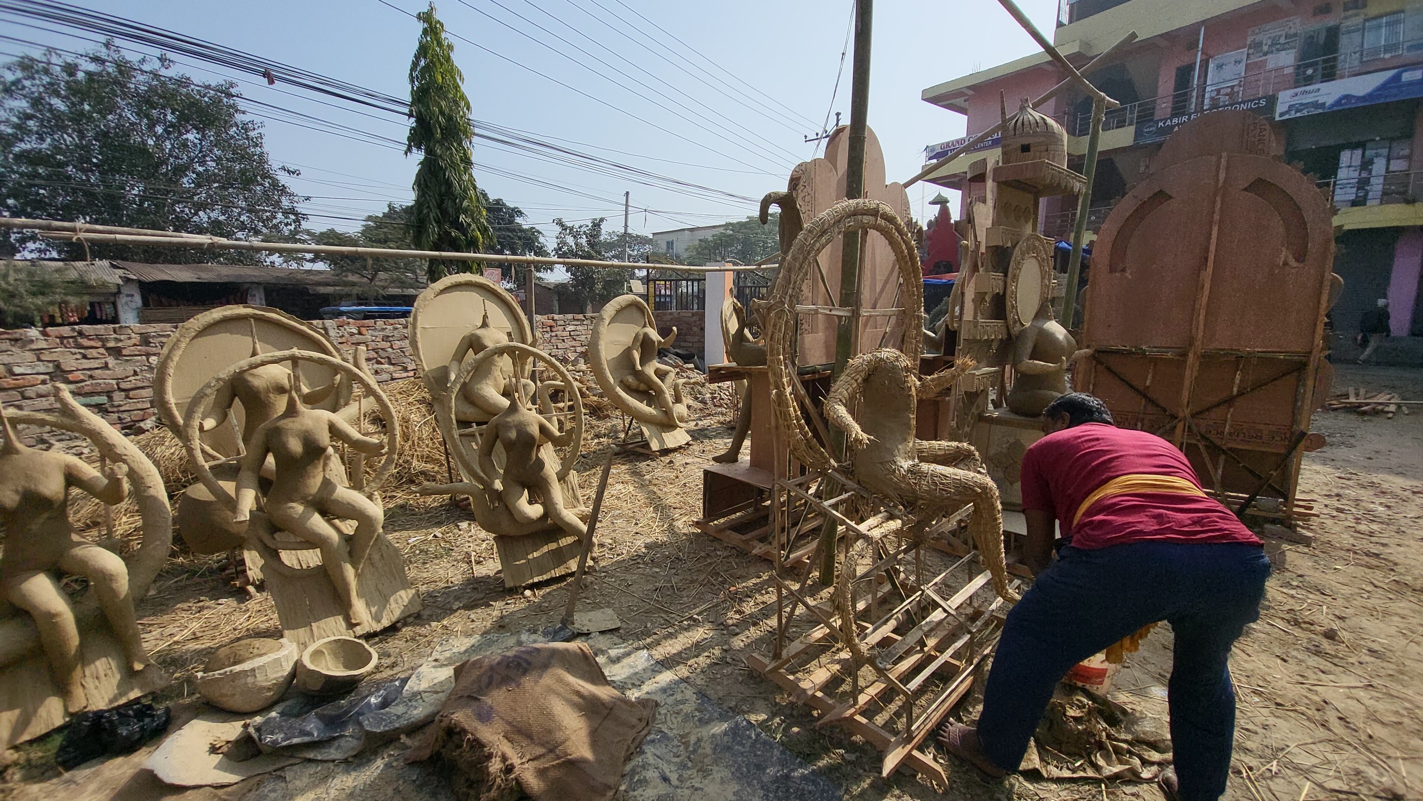 जनकपुर । सरस्वती पूजा आउन १५ दिन मात्र बाँकी रहेको बेला मूर्तिकारहरुलाई मूर्ति बनाउन भ्याईनभ्याई भएको छ । जनकपुरधामसहित धनुषामा धुमधामका साथ मनाइने सरस्वती पूजाको तयारी अहिलेदेखि नै सुरु भएको छ । माता सरस्वतीको मूर्ति बनाउन मूर्तिकारहरु दिन रात लागिपरेको देखिन्छन् । सिजनल काम भएकोले गर्दा वर्षभरि अरु काम गर्ने र चाडपर्व नजिक आउँदा मूर्ति निर्माणमा व्यस्त हुन्छन मूर्तिकारहरु । यसपाली भने मूर्तिकारहरुलाई असहजता भएको देखिएको छ । घाम नलागेका कारण माटो मुछ्नेदेखि लिएर मूर्ति सुकाउन समेत गाह्रो भएको बताउँछन् जनकपुरधामका मूर्तिकार उतीम लाल पण्डित । अत्याधिक चिसो बढेका कारण माटो मुछ्दा हात खुट्टा सुन्निने, काम गर्न अप्ठ्यारो हुने समस्या भइरहेको बताउँछन् उनी । विगतको वर्ष भन्दा बढी मूर्तिको बुकिङ्ग भएकाले यस वर्ष आम्दननीको साथै चुनौती पनि बढेको उनको भनाई छ । उनले घाम नलागेकाले मूर्तिलाई आकार दिएपछि सुक्न नसकेको दुखेसो पोखे । माटो नसुकुन्जेल पेन्ट गर्न नमिल्ने उनले बताए । १५ दिन बाँकी रहँदा नै ४० वटा मूर्तिको अर्डर आएकाले उनले वैकल्पिक तरिका अपनाउने बताए । तातो हावा फ्याल्ने र माटो सुकाउने उपकरण मगाएर मूर्तिलाई सुकाउनुपर्ने देखिएको उनको भनाई छ । तर यस्तो गर्दा थोरै पैसा बच्ने उनी भन्छन् । मूर्तिकारहरुले एक सिजनमा घर खर्चा चलाउने जति कमाउन सक्ने बताउँछन् मूर्तिकार पणिडत । आम्दानी राम्रै भएपनि सिजनल मात्र भएकाले अन्य समयमा अरु काम पनि गर्ने गरेको उनको भनाइ छ । एउटा मूर्तिमा २० प्रतिशत प्रयोग हुने सामानहरुको र बाँकी मेहनत मजदुरी अनुसार तीन दिनदेखि पाँच दिनसम्म लाग्ने र सोही अनुसारको आम्दनी हुने गरेको उनले जानकारी दिए । पहिला सानो मूर्तिहरु बढि विक्री हुने गरेकोमा अहिले नयाँ डिजाइन र ठूलो आकारको मूर्तिहरु बढि विक्री हुने गरेको उनको भनाई छ ।