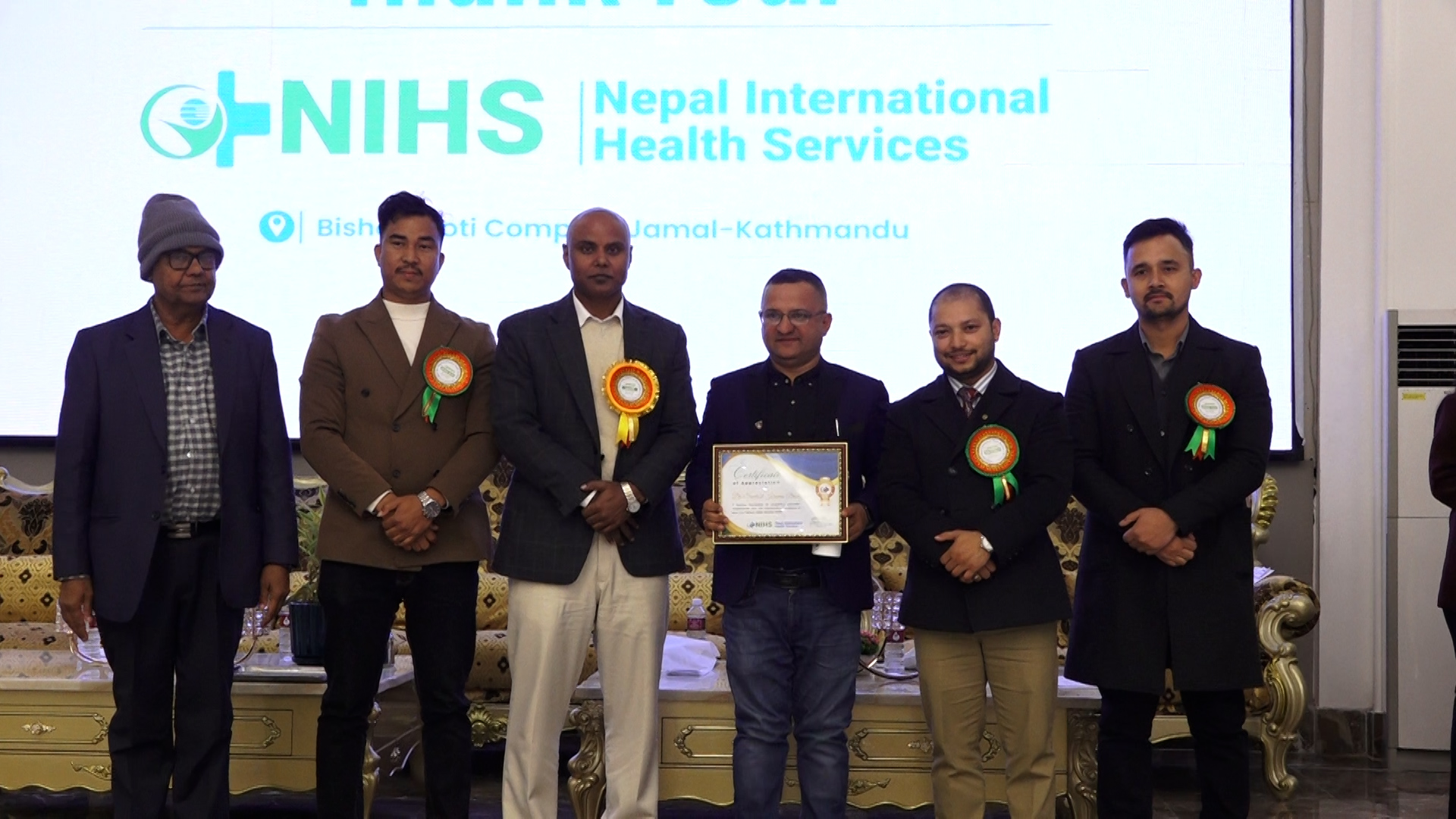 काठमाडौं । नेपाल इन्टरनेशनल हेल्थ सर्भिस (एनआइएचएस) ले आफ्नो चौथो वार्षिकोत्सव भव्यताका साथ मनाएको छ । शुक्रबार एक विशेष समारोहकाबीच एनआइएचएसले चौथो वार्षिकोत्सव मनाएको हो । उक्त वार्षिकोत्सवको अवसरमा बोल्दै नेपाल इन्टरनेशनल हेल्थ सर्भिसका संस्थापक अध्यक्ष रुपनारायण शाहले गुणस्तरीय सेवा सुविधा दिने लक्ष्यका साथ यो संस्थाको स्थापना भएको बताए । उनले आजको समयसम्म आइपुग्दा धेरै बिरामीहरुलाई गुणस्तरीय सेवा प्रदान गरेको भन्दै दीर्घकालीन रोगहरूको व्यवस्थापन सहित व्यक्तिगत हेरचाहको लागि पनि संस्था प्रतिबद्ध रहेको बताए । उनले भने, ‘हाम्रो लक्ष्य भनेको गुणस्तरीय हेरचाह प्रदान गर्नु हो । हामी दीर्घकालीन रोगहरूको व्यवस्थापन सहित व्यक्तिगत हेरचाह योजनाहरू विकास गर्न तपाईंसँग काम गर्नेछौं ।’ उनले एक जनाले सुरु गरेको यो संस्थामा आजको समयमा ४४ जना सेयर होल्डरहरु रहेको उल्लेख गर्दै २ सय भन्दा बढी संस्थाहरुलाई पनि जोडेर अगाडि बढेको जानकारी गराए । अन्य संस्थाभन्दा केही फरक दिनुपर्छ भन्ने योजनाका साथ राम्रो टिम र सेवासहित अगाडि बढेको भन्दै संस्थाले विस्तारै गति लिँदै पनि गएको उनको भनाई छ ।