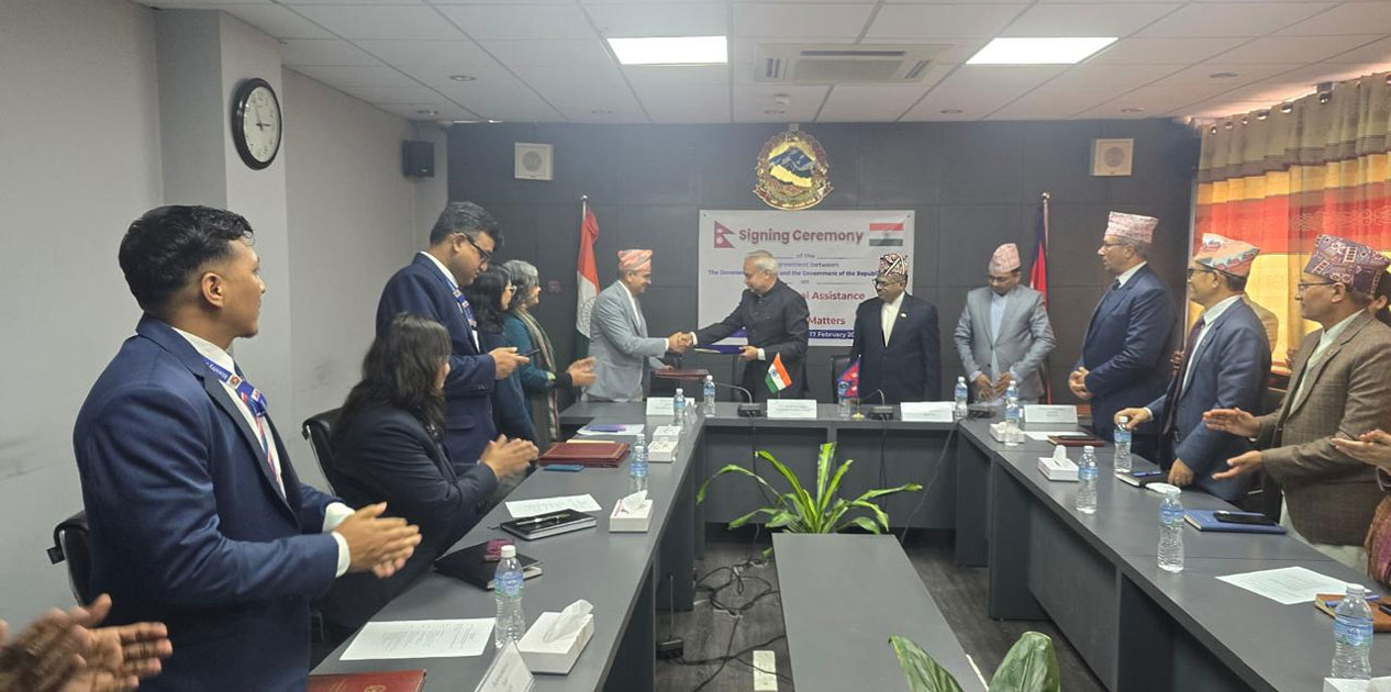 काठमाडौं । नेपाल र भारतबीच फौजदारी विषयमा पारस्परिक कानुनी सहायतासम्बन्धी सम्झौता पत्रमा हस्ताक्षर भएको छ । सम्झौतामा नेपाल सरकारका तर्फबाट कानुन, न्याय तथा संसदीय मामिला मन्त्रालयका सहसचिव विनोदकुमार भट्टराईले र भारत सरकारका तर्फबाट नेपालका लागि महामहिम भारतीय राजदूत नवीन श्रीवास्तवले सम्झौता पत्रमा हस्ताक्षर गरेका हुन् । सरकारको मन्त्रिपरिषद् बैठकले गत असोज ३० गते उक्त सम्झौता गर्ने निर्णय गरेअनुसार कानुन, न्याय तथा संसदीय मामिला मन्त्री अनिलकुमार सिन्हाको उपस्थितिमा सम्झौता पत्रमा हस्ताक्षर भएको मन्त्रालयका प्रवक्ता दलबहादुर अधिकारीले जानकारी दिए । सो सम्झौताले फौजदारी मुद्दाको अनुसन्धान, अभियोजन तथा न्यायिक कारबाहीका क्रममा प्रमाण संकलन तथा आदानप्रदानलगायत विषयमा दुवै मुलुकका सक्षम अधिकारीबीच सहयोग आदानप्रदान गर्न विधिवत् मार्ग प्रशस्त गर्ने मन्त्रालयका प्रवक्ता अधिकारीले बताए । सम्झौताले विधिको शासन सुदृढीकरण गर्न तथा न्याय प्रशासनमा संस्थागत समन्वय अभिवृद्धि गर्न महत्वपूर्ण योगदान पुर्याउने उनको भनाइ छ । उनले सम्झौताको कार्यान्वयनसँगै दुवै देशका केन्द्रीय अधिकारीहरूबीच सहकार्य अझ सबल एवं परिणाममुखी हुने अपेक्षा बताए । प्रवक्ता अधिकारीले सम्झौताले नेपालमा हुने वित्तीय अपराध न्यूनीकरण गर्न तथा अनुसन्धान, अभियोजन र न्याय निरूपणलाई थप प्रभावकारी बनाउन कोशेढुंगा साबित हुने उल्लेख गरे । सो सम्झौताले सम्पत्ति शुद्धीकरण तथा आतंककारी कार्यमा वित्तीय लगानी गर्ने कार्यलाई निवारण गर्नेसम्बन्धी पारस्परिक मूल्यांकनमा थप मद्दत पुर्याउने अपेक्षा गरिएको छ । समारोहमा मन्त्रालयका सचिव पाराश्वर ढुंगाना तथा परराष्ट्र मन्त्रालयका प्रतिनिधिहरूको उपस्थिति थियो ।