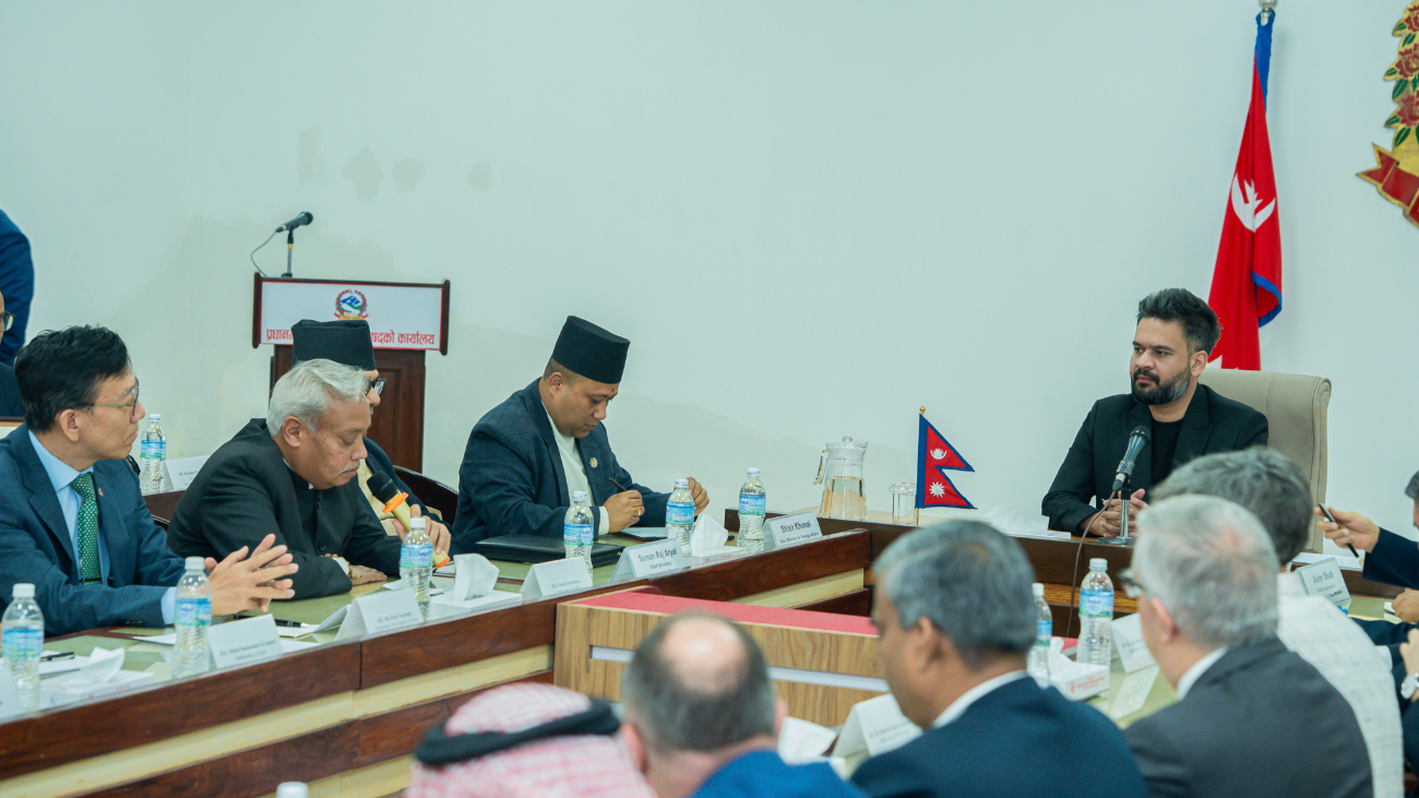 काठमाडौं । विगतका कूटनीतिक अभ्यासलाई तोड्दै प्रधानमन्त्री बालेन्द्र शाह (बालेन) ले बुधबार काठमाडौंस्थित १७ देशका राजदूतहरूलाई ‘सामूहिक शिष्टाचार भेट’ गरेका छन् । विगतमा प्रधानमन्त्रीहरूले प्रत्येक देशका राजदूतहरूलाई छुट्टाछुट्टै भेट्थे । कुनै विशषे अवस्थाका बारेमा जानकारी दिन र सहयोग माग्न परेमा ‘कूटनीतिक ब्रिफिङ’का नाममा राजदूतहरूलाई एकसाथ बोलाई सम्बोधन गर्ने गरिन्थ्यो । तर, यसपटक बालेन्द्र शाहले यसअघि भइरहेको अभ्यासलाई पछ्याएनन् । उनले सुरुमै आफूसँग भेटवार्ताको समय माग्ने सबैलाई राजदूतलाई एकसाथ भेट्ने निर्णय लिए र यसको तारतम्य मिलायो परराष्ट्र मन्त्रालयले । काठमाडौंमा रहेका २८ वटा विदेशी नियोगहरूमध्ये १७ वटा नियोगका प्रमुखहरू बुधबारको सामूहिक शिष्टाचार भेटवार्तामा सहभागी थिए । भेटवार्ता सिंहदरबारस्थित प्रधानमन्त्री तथा मन्त्रिपरिषद्को कार्यालयमा भएको थियो । “प्रधानमन्त्रीसँग भेट गर्नको लागि विभिन्न देशका राजदूतहरूसले पत्र पठाएका थिए । भेटको लागि अनुरोध गर्ने सबैलाई एकैपटक आज बोलाइएको हो । बुधबारको सामूहिक शिष्टाचार भेटवार्तामा नेपालका लागि भारत, पाकिस्तान, दक्षिण कोरिया, बेलायत, कतार, स्विट्जरल्यान्ड, फ्रान्स, इजरायल, जापान, बंगलादेश, जर्मनी, इजिप्ट, श्रीलंका, साउदी अरेबिया, चीन, अमेरिका र संयुक्त राष्ट्रसंघका राजदूत/नियोग प्रमुखहरूको उपस्थिति रहेको थियो । सामूहिक शिष्टाचार भेटवार्ता मध्याह्न १२ बजेतिर सुरु भएको थियो । राजदूतहरू सबै आइसकेपछि प्रधानमन्त्री बालेन्द्र शाह हलमा प्रवेश गरेका थिए । त्यसपछि परराष्ट्र सचिव अमृतबहादुर राईले राजदूतहरूलाई स्वागत गरेका थिए । त्यस क्रममा परराष्ट्र सचिव राईले विदेश राजदूतहरूलाई सरकारको प्राथमिकता, खोजेको सहयोग र सद्भावका विषयमा स्पष्ट पारेका थिए । परराष्ट्र सचिवले स्वागत गरेपछि उपस्थित सबै विदेशी राजदूतहरूलाई एक–एक गरी आफ्नो परिचय दिन र आफ्नो धारणा संक्षेममा राख्न अनुरोध गरिएको थियो । सबै राजदूतहरूले आफ्नो परिचय दिने क्रममा नेपाल र उनीहरूको देशको सम्बन्धबारे प्रकाश पारेका थिए । सबैले नेपाललाई सहयोगको प्राथमिकतामा राखेको जनाएका थिए । सहयोग गर्ने भएर नै आजको भेटवार्तामा सहभागी भएको तर्क राजदूतहरूले गरेका थिए । विदेशी राजदूतहरूले नेपाल र नेपालले लिने आगामी बाटोका सम्बन्धमा निकै चासो र उत्सुकता देखाएका थिए । राजदूतहरूले आफ्नो परिचय दिइसकेपछि परराष्ट्रमन्त्री शिशिर खनालले सरकारका काम कारबाहीका विषयमा राजदूतहरूलाई जानकारी गराएका थिए । “नेपाल सरकार प्रत्यक्ष देखिने गरी काम गर्न खोजेको छ,” परराष्ट्रमन्त्री खनालले भनेका थिए । आफ्नो संक्षिप्त सम्बोधन सकिएप