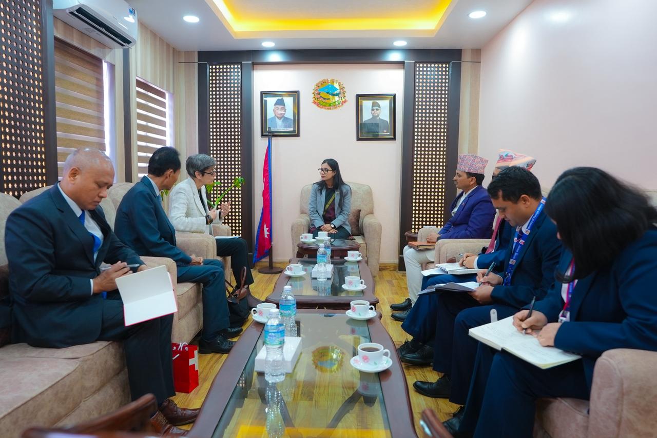 काठमाडौं । कानुन, न्याय तथा संसदीय मामिलामन्त्री सोविता गौतम र नेपालका लागि स्वीट्जरल्यान्डका राजदूत डा.ड्यानियल म्युलीबिच भेटवार्ता भएको छ । आज कानु नमन्त्री गौतम र राजदूत म्युलीबिच भेटवार्ता भएको हो । राजदूत म्युलीले नवनियुक्त कानुन, न्याय तथा संसदीय मामिलामन्त्रीलाई बधाई तथा शुभकामना व्यक्त गरे । भेटवार्ताका क्रममा मन्त्री गौतम र राजदूत म्युलीबीच नेपाल र स्विट्जरल्यान्डबीचको दीर्घकालीन मैत्री सम्बन्ध, सहकार्य, नेपालको शान्ति प्रक्रिया तथा न्यायमा जनताको पहुँच अभिवृद्धि लगायतका विषयमा विचार आदान प्रदान भयो ।
