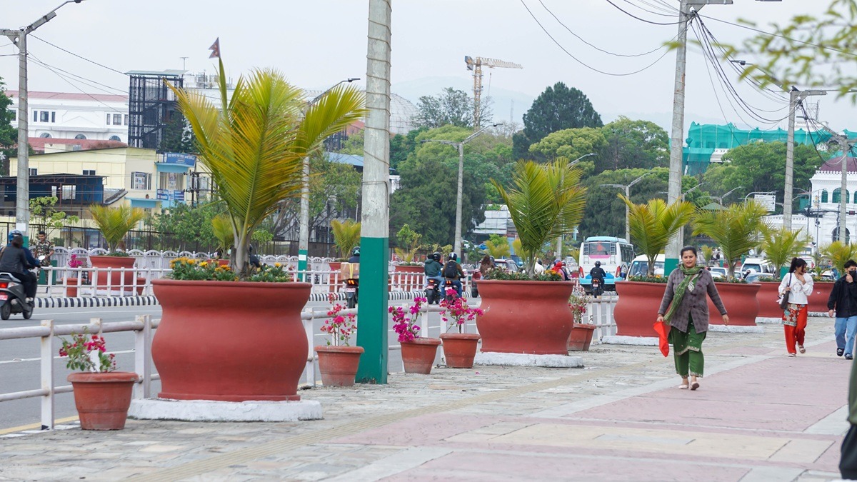 काठमाडौँ । काठमाडौँलाई सुन्दर बनाउन महानगरपालिकाले सडक किनारामा गमला राखेर फूल फुलाउन थालेको छ । पार्क तथा हरियाली प्रवर्धन आयोजनाले गौरव योजना मेरो रहर, सुन्दर र हरित सहर कार्यक्रम अन्तर्गत गमलामा फूल राख्न थालिएको हो । आयोजनाका इञ्जिनियर सरकारदीप श्रेष्ठका अनुसार अहिले सिंह दरबार अगाडिको भागमा वेगमवेली जातका फूल रोपिएका हुन् । यो फूल पहेँलो, रातो, गुलावीलगायत रङमा फुल्छ । फूल फुलाउने कार्यलाई नियमित गराउन गमलाहरु सिमेन्टका राखिएका छन् । किनाराका स्थायी ठुला सिमेन्टका गमलामा विरुवा लगाउने, फूल राप्ने, गोडमेल गर्ने तथा पानी हालेर हुर्काउन वातावरण व्यवस्थापन विभागले काम गरिरहेको छ । यसपछि भित्री सहरी क्षेत्रमा गमला राख्दै लगिने योजना रहेको श्रेष्ठको भनाइ छ ।