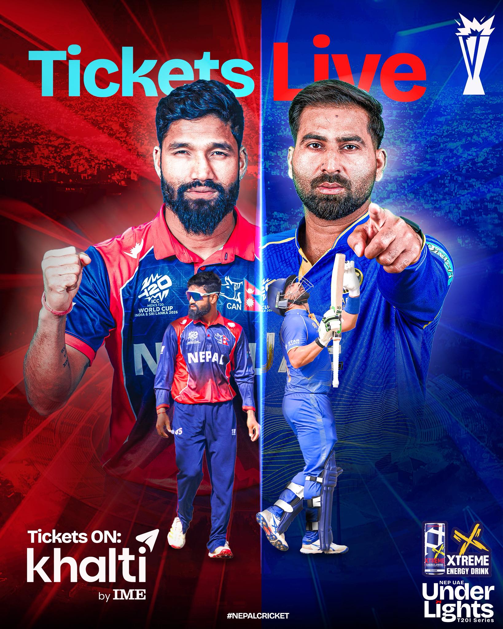 काठमाडौं । नेपाली राष्ट्रिय क्रिकेट टोलीले टी २० आई सिरिजको पहिलो खेलमा आज यूएईविरुद्ध खेल्दैछ । कीर्तिपुरस्थित त्रिवि क्रिकेट मैदानमा यो खेल साँझ ५ बजे सुरु हुनेछ । घरेलु मैदानमा नेपाली टोलीले यूएईविरुद्ध २ खेलको टी २० आई सिरिज खेल्दैछ । यस सिरिजका लागि नेपाल क्रिकेट संघ (क्यान) ले दिपेन्द्र सिंह ऐरीको कप्तानीमा टिम खेलाउँदैछ । जसमा दीपेन्द्र सिंह ऐरी (कप्तान), कुशल भुर्तेल, कुशल मल्ल, सन्दीप जोरा, आरिफ सेख, बसिर अहमद, गुलशन झा, लोकेस बम, सन्दीप लामिछाने, नन्दन यादव, सन्तोष यादव, अर्जुन साउद, हेमन्त धामी, साहब आलम र शेर मल्ल रहेका छन् । त्यस्तै बैकल्पिक खेलाडीमा प्रतिस जीसी, नारायण जोशी र रसिद खान रहेका छन् । सिरिजको दोस्रो खेल भोली हुने छ । नेपालले पहिलो पटक टी–२० र एकदिवसीय क्रिकेटमा अलग अलग कप्तानको अभ्यास गरेको छ । पहिलो पटक रोहित पौडेल, सोमपाल कामी, करण केसी लगायतका खेलाडी टी–२० टिमबाट बाहिर रहेका छन् । यो शृंखला इतिहासमै पहिलो पटक ‘फ्लडलाइट’मा हुँदैछ ।