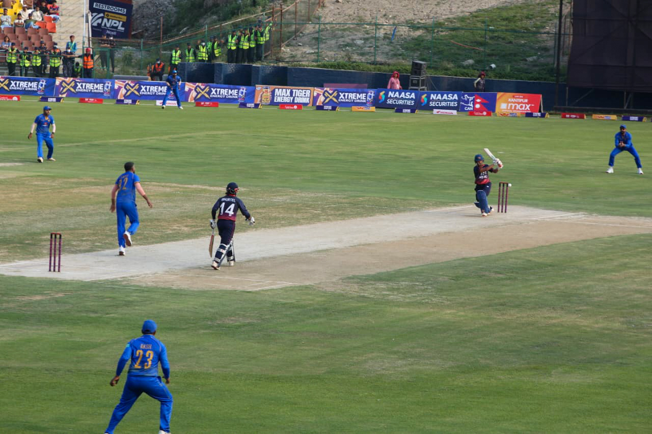 काठमाडौं । युएईविरुद्धको पहिलो टी–२० आई क्रिकेटमा घरेलु टोली नेपाल डीएलएस मेथडमा ६ विकेटले पराजित भएको छ । नेपालले १९औँ ओभरमा १ सय २२ रन बनाएपछि वर्षाले खेल प्रभावित भएपछि १० ओभर घटाइएको थियो । ओभर घटाइएपछि युएईले ७८ रनको नयाँ लक्ष्य पाएको थियो । सोमबार भएको पहिलो खेलमा नेपालले दिएको ७८ रनको लक्ष्य युएईले ८.५ ओभरमा ४ विकेटको क्षतिमा भेटटयो । टी–२० आई को दोस्रो खेल भोलि मंगलबार हुनेछ । नेपालका सन्दीप लामिछानेले तीन विकेट लिए पनि टोलीको हार टार्न सकेनन् । सन्दीपले एकै ओभरमा २ विकेट लिँदै युएईलाई दबाबमा राखेका थिए । सन्दीपले चौथो ओभरको तेस्रो बलमा युएईका ओपनर तथा कप्तान मुहम्मद वसिम ३३ रनमा क्याच आउट गराए। वसिमले उनले १५ बलमा ३ चौका र ३ छक्का सहयोगमा ३३ रन बनाउँदा सन्दीप लामिछानेको बलमा कुशल मल्लको हातबाट क्याच आउट हुन पुगे । सोही ओभरको पाचौँ बलमा अदिव उस्मानीलाई २ रनमा एलबीडब्लु धरापमा पार्दै पेभेलियनको बाटो देखाए । सन्दीपले नै छैटौँ ओभरको चौथो बलमा हरपित सिंहलाई २ रनमा कुशल मल्लको हातबाट क्याच आउट गराए । अलिसान सराफु १८ रन बनाउँदा कुशल मल्लको बलमा गुल्सन झा को हातबाट क्याच आउट नै हुन पुगे । त्यसअघि कीर्तिपुरस्थित त्रिवि क्रिकेट मैदानमा टस जितेर ब्याटिङ गरेको नेपालले १८.५ ओभरमा ८ विकेटको क्षतिमा १ सय २२ रनको योगफल तयार पारेको थियो । १९ औँ ओभरको खेल जारी रहँदा पानी परेपछि खेल रोकिएको थियो । नेपालका लागि कप्तान दीपेन्द्र सिंह ऐरि ३२ र सन्दीप लामिछानेले २ रनमा अविजित रहे । ओपनर कुशल भुर्तेल ९ बलमा १ चौका र १ छक्का सहयोगमा १६ रन बनाउँदा रन आउट भए । अर्का ओपनर अर्जुन साउद १३ रन बनाउँदा जुनैद सिद्दीकीको बलमा बोल्ड आउट हुन पुगे । ६ बलमा १ चौका सहयोगमा ६ रन बनाएका सन्दीप जोरा हैदर अलीको बलमा क्याच आउट भए । २१ बलमा १ चौका मद्धतमा १७ रन बनाएका कुशल मल्ल जुनैद जुबेरको बलमा एलबीडब्लु धरापमा परे । १४ रन बनाएका बसिर अहमद जुहेब जुबेरको बलमा मोहम्मद वसिमको हातबाट क्याच आउट हुन पुगे । गुल्सन झा १ रन बनाउँदा जुनैद सिद्दीकीको बलमा एलबीडब्लु धरापमा परे । नन्दन यादवले ७ बलमा २ छक्का सहयोगमा १३ रन बनाउँदा जुहेब सिद्दीकीको बलमा क्याच आउट भए। शेर मल्ल शुन्य रनमा नै पेभेलियन फर्के ।