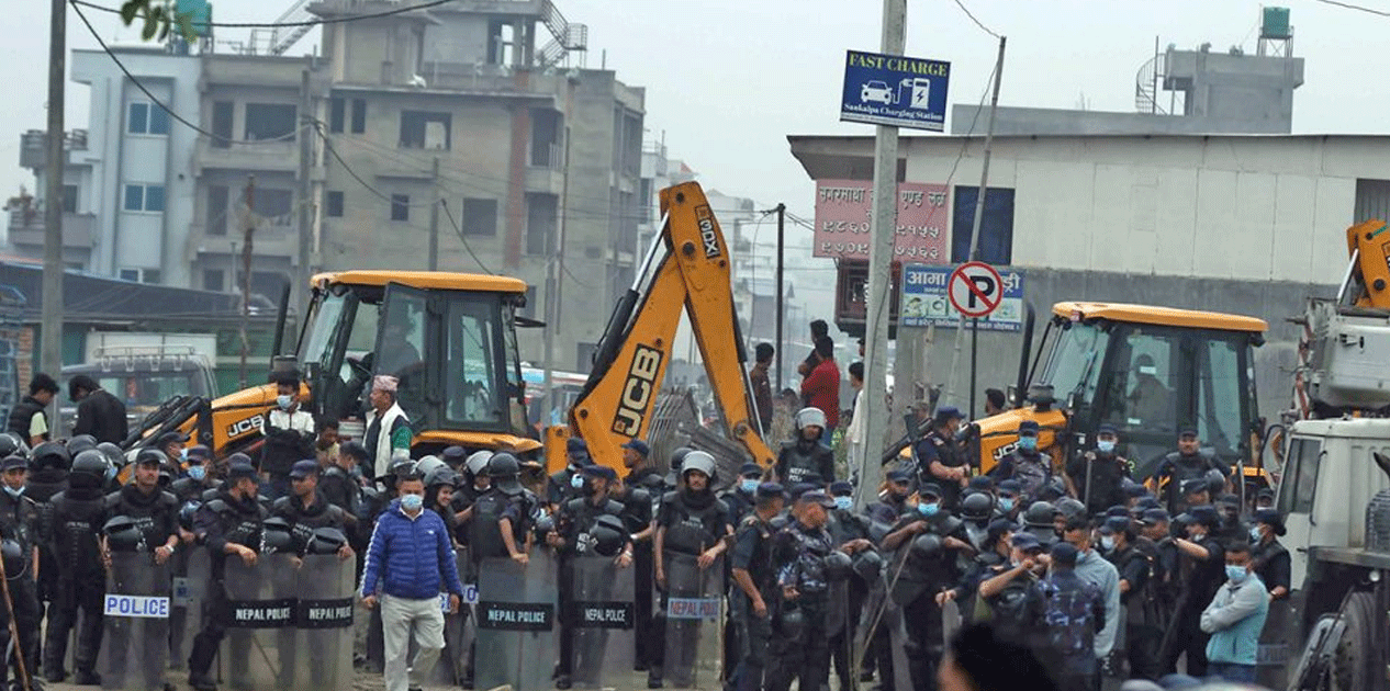 भक्तपुर । मनोहरा खोला किनारस्थित सुकुम्वासी बस्तीमा अनधिकृत रूपमा बनाइएका घरटहरा हटाउन सुरु गरिएको छ । आज बिहानैदेखि बस्तीमा भक्तपुरबाट खटिएका एक हजार ३०० नेपाल प्रहरी र ६०० सशस्त्र प्रहरी परिचालन गरेर संरचना भत्काउन सुरु गरिएको जिल्ला प्रहरी परिसरका प्रमुख एवं प्रहरी उपरीक्षक सूर्यबहादुर खड्काले जानकारी दिए । उनका अनुसार उक्त बस्तीका बासिन्दाले आफैँ आफ्ना घरटहरा भत्काउने भनेपछि बिहान ९स्०० बजेसम्मको समय दिइएको थियो । त्यसपछि भने काठमाडौँ महानगरपालिकाको डोजरसहितको टोली आएपछि घरटहरा भत्काउन सुरु गरिएको हो । प्रहरी उपरीक्षक खड्काले भने, “यहाँका अधिकांश घरटहराबाट सामान सारेर खाली बनाएपछि भत्काउन थालिएको छ ।” यस बस्तीमा बस्तीमा सात सय ७७ घरटहरा छन् । यसअघि शनिबार साँझ पनि यहाँ सात वटा ठूला पक्की घर भत्काइएका थिए । त्यस क्रममा नेपाल प्रहरी र सशस्त्र प्रहरीलाई अवरोध गरिएको थियो । केही सुकुम्वासीले आक्रमण गर्दा २२ सुरक्षाकर्मी घाइते भएका थिए ।