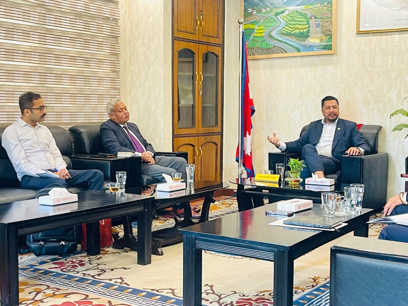 काठमाडौं । ऊर्जा, जलस्रोत तथा सिँचाइमन्त्री विराजभक्त श्रेष्ठसँग नेपालका लागि चीनका राजदूत चाङ माओमिङ र भारतका राजदूत नवीन श्रीवास्तवले शुक्रबार बेग्लाबेग्लै भेट गरेका छन् । चिनियाँ राजदूतसँगको भेटमा नेपाल र चीनबिच आपसी हितमा आधारित व्यावहारिक सहकार्यलाई अझ सुदृढ बनाउने विषयमा विस्तृत छलफल भएको यहाँ स्थित चिनियाँ राजदूतावासले जनाएको छ । विशेष गरी क्षेत्रीय ऊर्जा चुनौतीलाई कसरी प्रभावकारी रूपमा सम्बोधन गर्ने भन्ने विषयमा दुवै पक्षबिच विचार विमर्श भएको थियो । साथै ऊर्जा र जलस्रोत क्षेत्रलाई आपसी सहयोगको महत्त्वपूर्ण आधारका रूपमा अघि बढाउँदै साझा समृद्धि र जनहितका लागि सहकार्यको प्रतिबद्धता व्यक्त भएको छ । त्यसै गरी, भारतका राजदूतसँगको भेटमा ऊर्जा तथा जलस्रोत क्षेत्रमा सहकार्य विस्तार गर्ने विषयमा छलफल भएको छ । छलफलमा नेपाल–भारतबिचको दीर्घकालीन साझेदारीलाई थप सुदृढ गर्दै दिगो विकास र क्षेत्रीय सम्पर्क सञ्जाल विस्तार एवं प्रवद्र्धन गर्ने साझा दृष्टिकोणमा जोड दिइएको ऊर्जा, जलस्रोत तथा सिँचाइ मन्त्रालयले जनाएको छ । उक्त मन्त्रालयका अनुसार आगामी दिनमा निरन्तर संवाद र सहकार्यमार्फत द्विपक्षीय साझेदारीलाई अझ मजबुत बनाउने प्रतिबद्धता व्यक्त भएको थियो ।