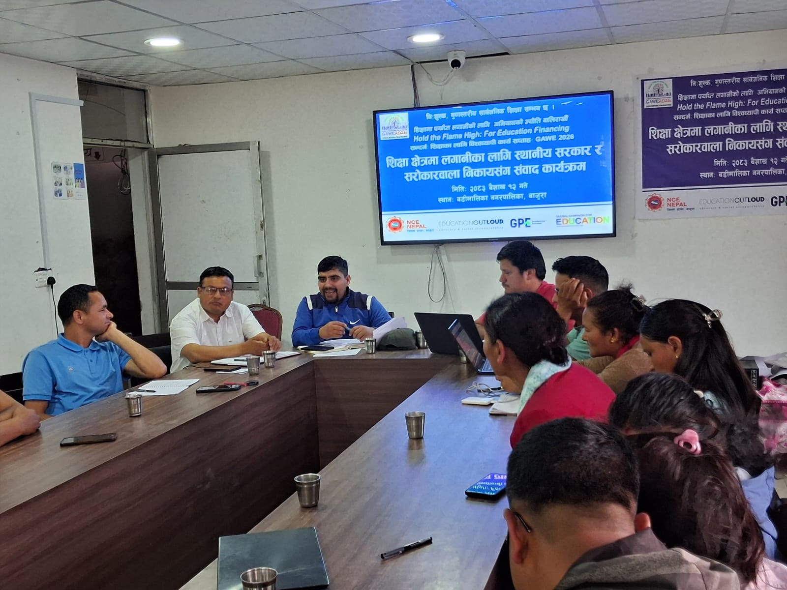 बाजुरा । शिक्षामा क्षेत्रमा लगानीका लागी स्थानीय सरकार र सरोकारवाला निकाय सँग संवाद कार्यक्रम गरिएको छ । शनिबार बाजुराको बडीमालिका नगरपालिकामा उक्त कार्यक्रम सञ्चालन गरिएको हो । शिक्षाका लागि राष्ट्रिय अभियान नेपालको आयोजनामा शिक्षाका लागि विश्वव्यापी कार्य सप्ताह २०२६ लाई लक्षित गर्दै उक्त कार्यक्रमको आयोजना गरिएको एनसीइ नेपाल बाजुराका अध्यक्ष मदनराज जैशीले जानकारी दिए । उनका अनुसार,यस कार्यक्रमले शिक्षा क्षेत्रमा लगानी र शैक्षिक गुणस्तरमा जोड दिन महत्त्वपूर्ण सहयोग पु¥याउने बताए । साथै उनले दिगो विकास लक्ष्यअनुसार,गुणस्तरीय शिक्षा सुनिश्चितका साथै समावेशी र समतामूलक शिक्षाको पहुँच अभिवृद्धि गर्न आवश्यक रहेको जोड दिएका हुन् । एनसीइ नेपालले हरेक वर्ष सबैका लागी निःशुल्क र गुणस्तरीय शिक्षा सुनिश्चित गर्न, विश्वव्यापी कार्य सप्ताह गर्दै आएको छ । संवाद कार्यक्रममा बडी मालिकाको समग्र शैक्षिक स्थिति, पालिकाले शिक्षा क्षेत्रको सुधारमा थालेका योजना, भावी रणनीति, उपलब्धि, कमीकमजोरीका साथै सुधार गरिनुपर्ने मुख्य विषयवस्तुको प्रस्तुतीकरण गरिएको थियो । समग्र पालिकाको शैक्षिक गुणस्तर सुधारका लागी नगरपालिकाले विभिन्न रणनीति अपनाएर अघि बढेको कार्यक्रममा प्रमुख अतिथि नगर प्रमुख अमर खड्काले बताए।उनका अनुसार, नगरपालिकाको शिक्षा क्षेत्र सुधारका लागी पालिकाले १० बर्षे शिक्षा योजना निर्माण कार्य अघि सारेको जानकारी दिए । साथै,नगरपालिकाले पालिकाभर विद्यालय बाहिर रहेका विद्यार्थीको तथ्याङ्क सङ्कलन, विद्यालयमा दरबन्दी अनुसारका शिक्षक व्यवस्थापन,विद्यालय समायोजन तथा तह मिलान,सिकाई उपलब्धिका साथै विभिन्न अतिरिक्त क्रियाकलाप सञ्चालन, विद्यालयको नियमित अनुगमन जस्ता कार्यमा जोड दिइने कार्य योजना तय गरिएको उल्लेख गरे । पालिकाले आगामी वर्षदेखि अझै शिक्षा क्षेत्र सुधार गर्न,विद्यालय सुधार योजना, प्रविधिमा आधारित अध्यापन, विद्यालयमा ई—हाजिरी प्रणाली लागू गर्ने जनाएको छ । त्यस्तै नगरपालिकाले सत्यवादी मावि र चोया कोट माविमा सञ्चालित पढ्दै कमाउँदै कार्यक्रम सबै विद्यालयमा विस्तार गर्ने योजना बनाएको नगरप्रमुख खड्काले बताए । कार्यक्रममा वक्ताहरूले शिक्षा प्रणालीमा अझै पनि पूर्वाधार अभाव, शिक्षक तालिमको कमी, विद्यार्थीहरूमा सिर्जन शीलताको अभाव, दरबन्दी अनुसारका शिक्षक अभावका साथै प्रविधिमा सीमित पहुँच जस्ता चुनौती रहेको औँल्याउँदै यस्ता खाले चुनौतीको समस्या समाधान गरी शिक्षा प्रणालीलाई गुणस्तरीय र प्रभावकारी बनाउन आवश्यक रहेको जोड दिएका थिए । प्रत्येक पालिकाले आफ्नो पालिकाको शैक्षिक स्थिति गुणस्तरीय र भरपर्दो बनाई समग्